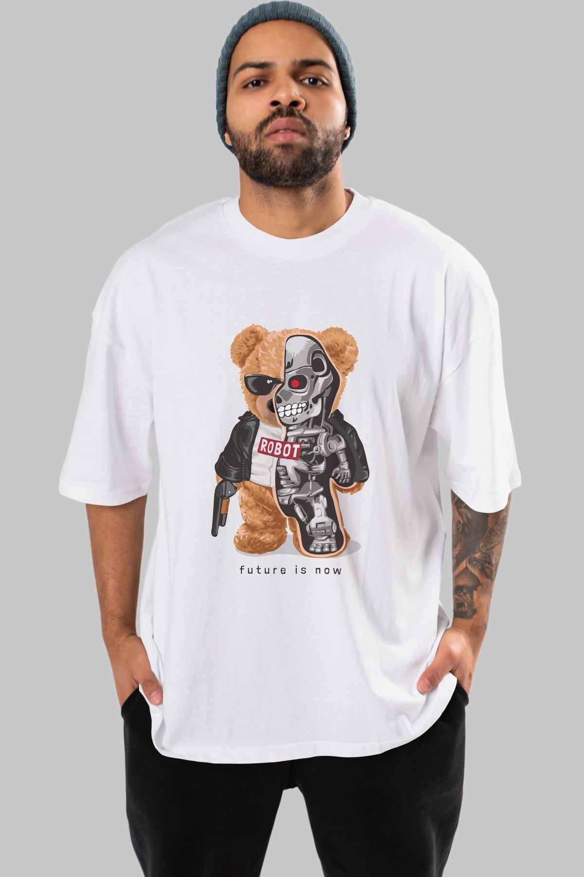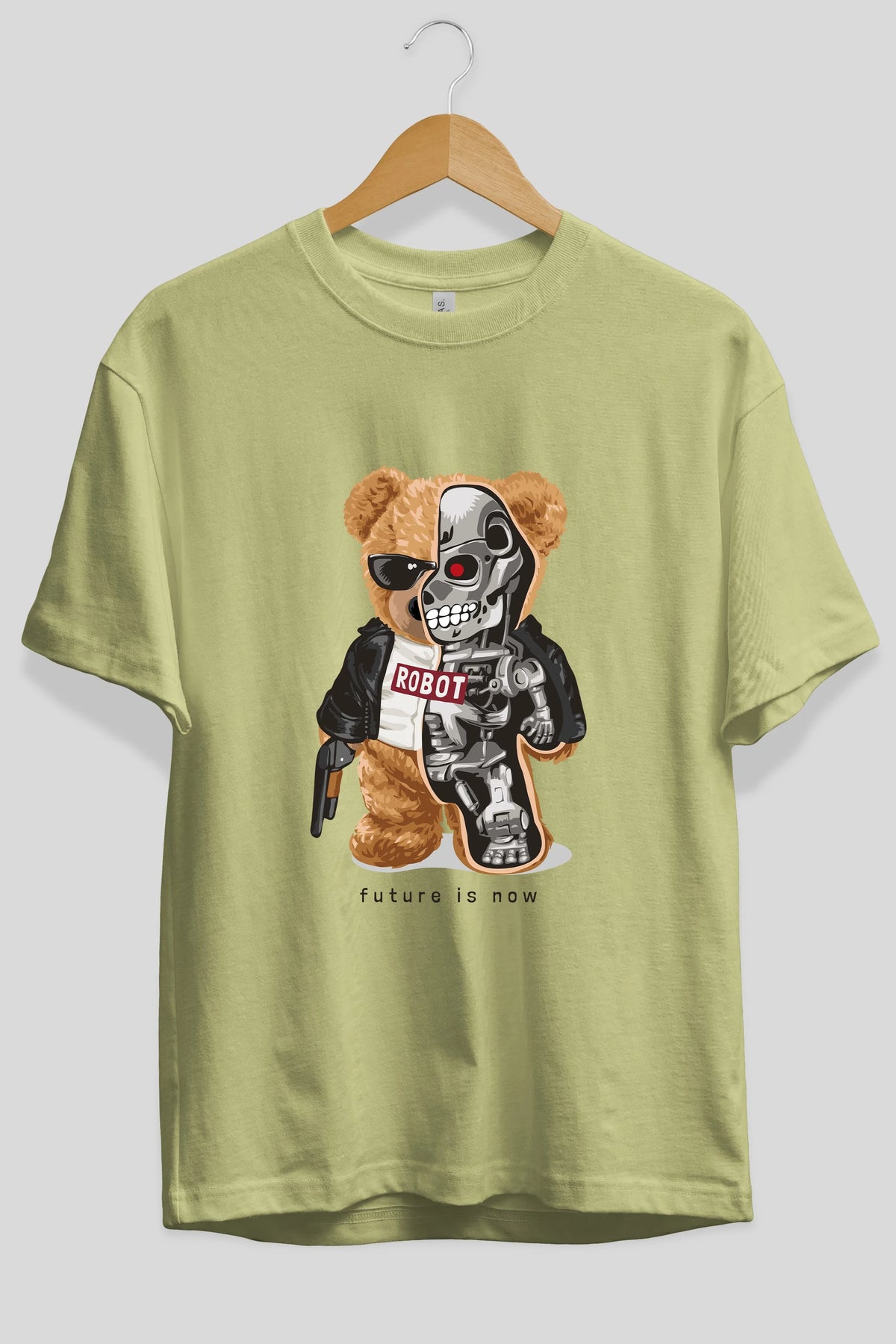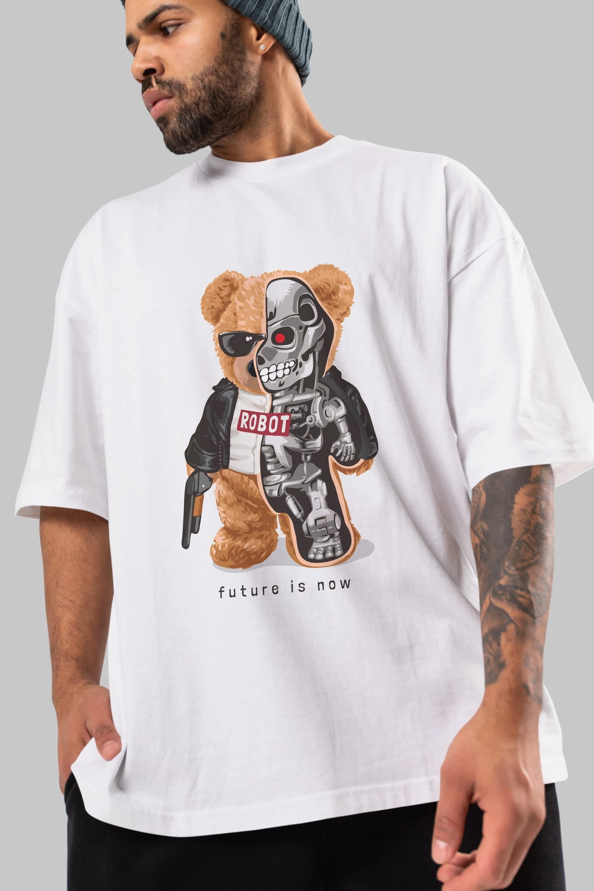 Teddy Bear Robot Ön Baskılı Oversize t-shirt Erkek Kadın Unisex %100 Pamuk
