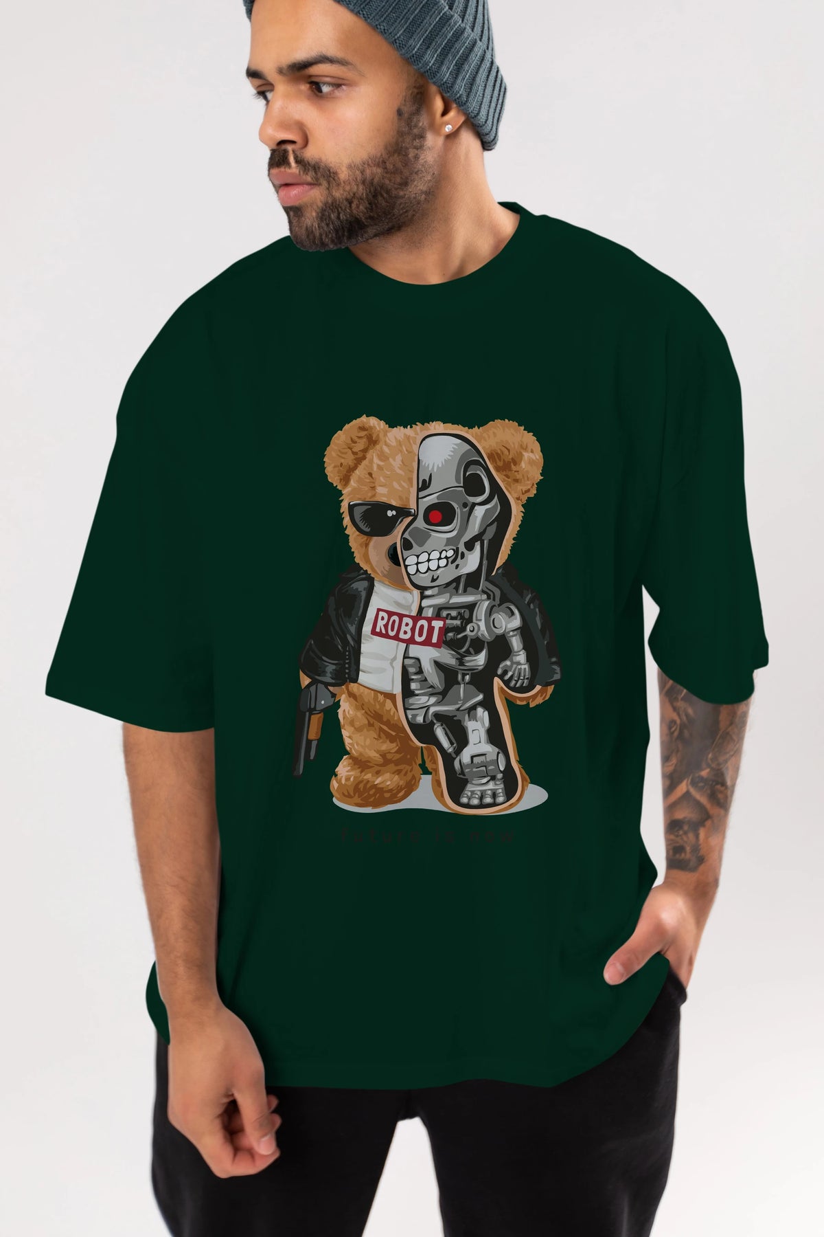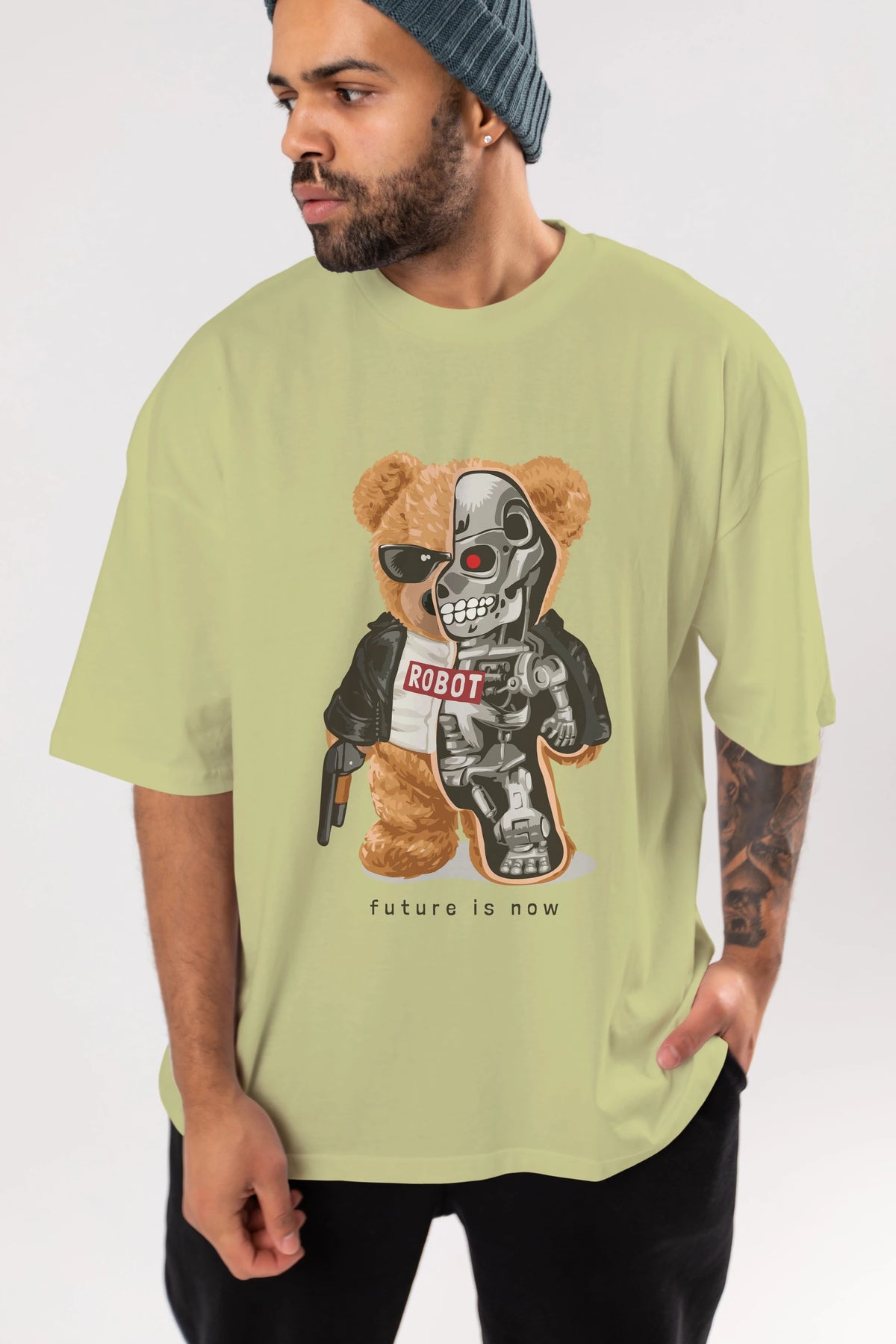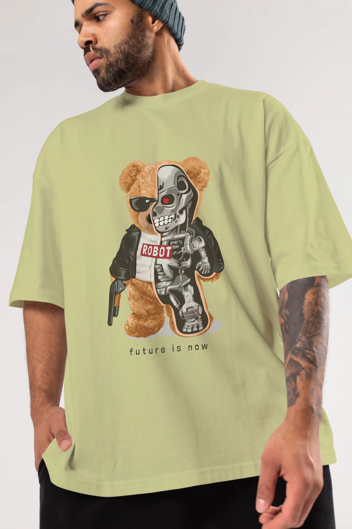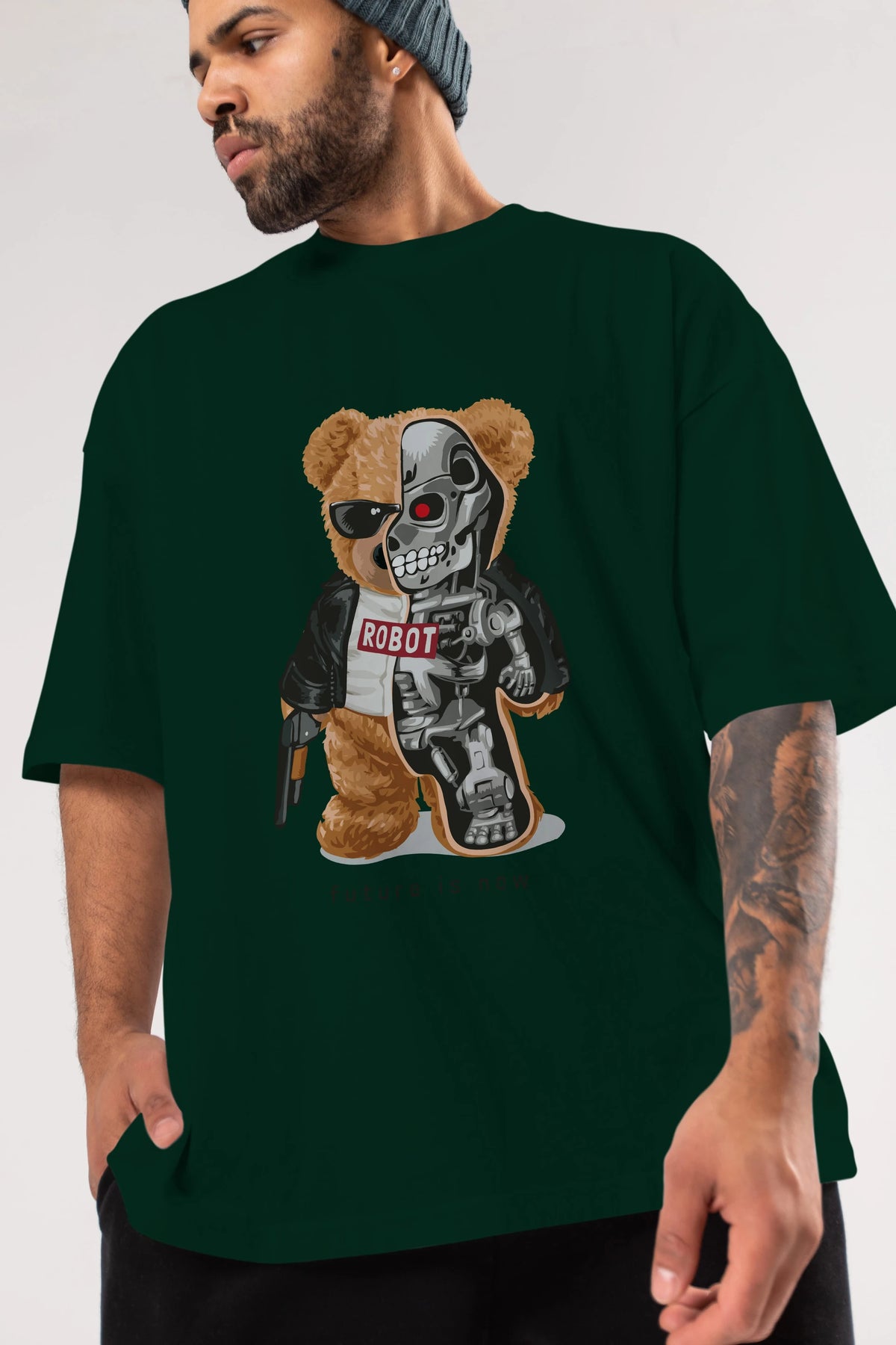 Teddy Bear Robot Ön Baskılı Oversize t-shirt Erkek Kadın Unisex %100 Pamuk