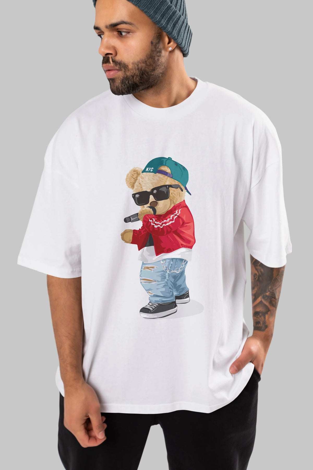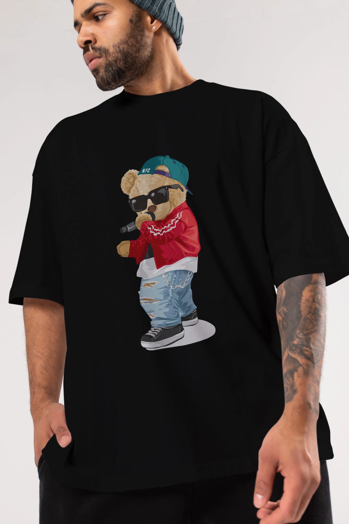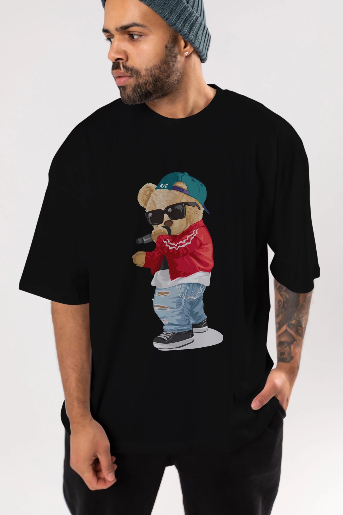 Teddy Bear Şarkıcı Ön Baskılı Oversize t-shirt Erkek Kadın Unisex %100 Pamuk
