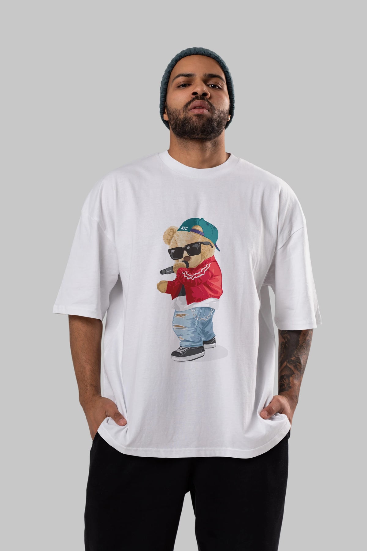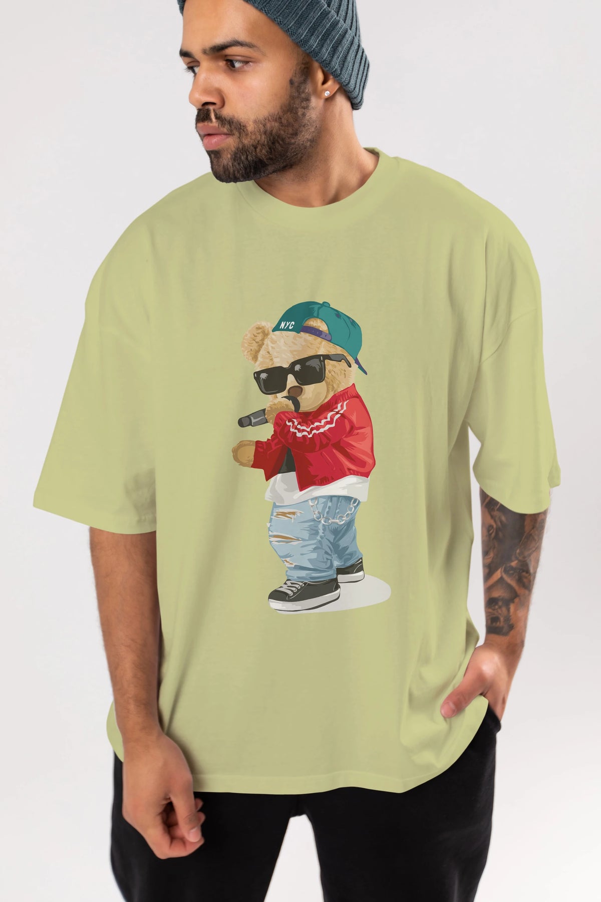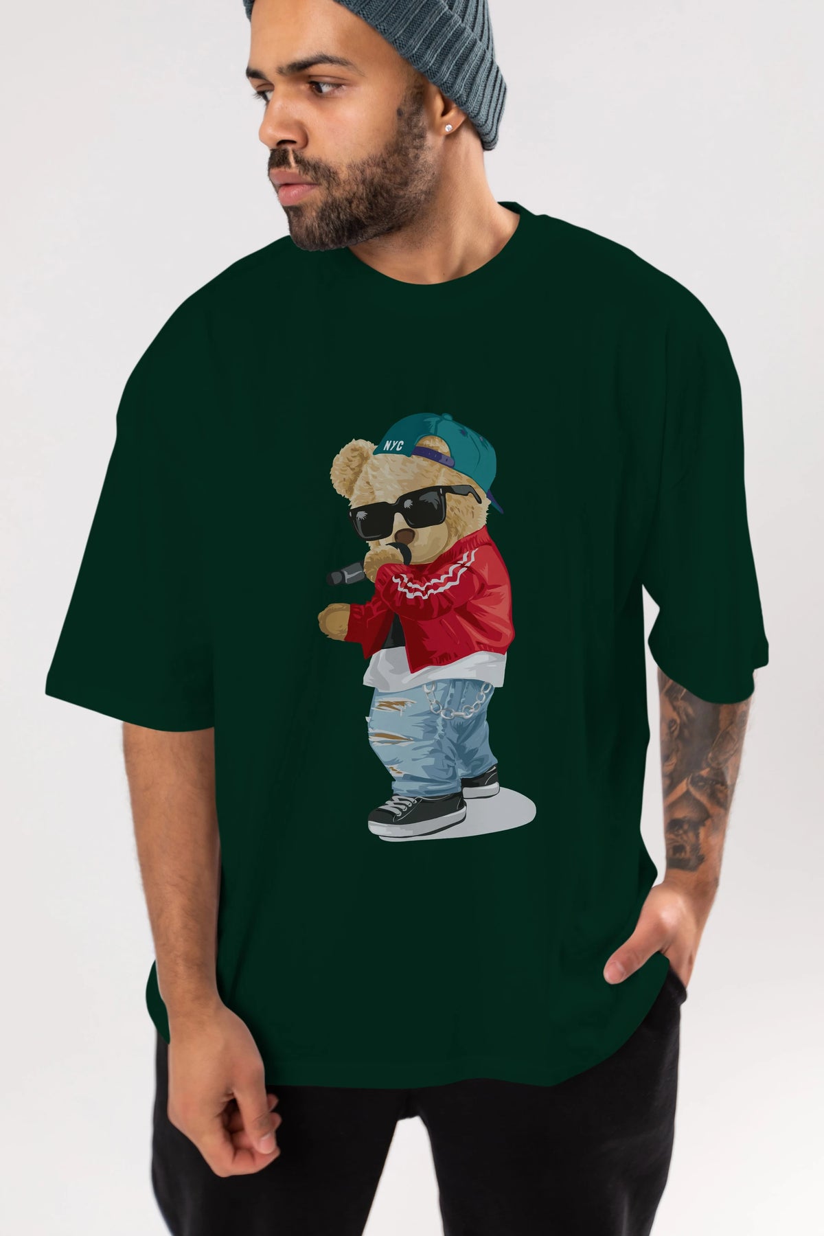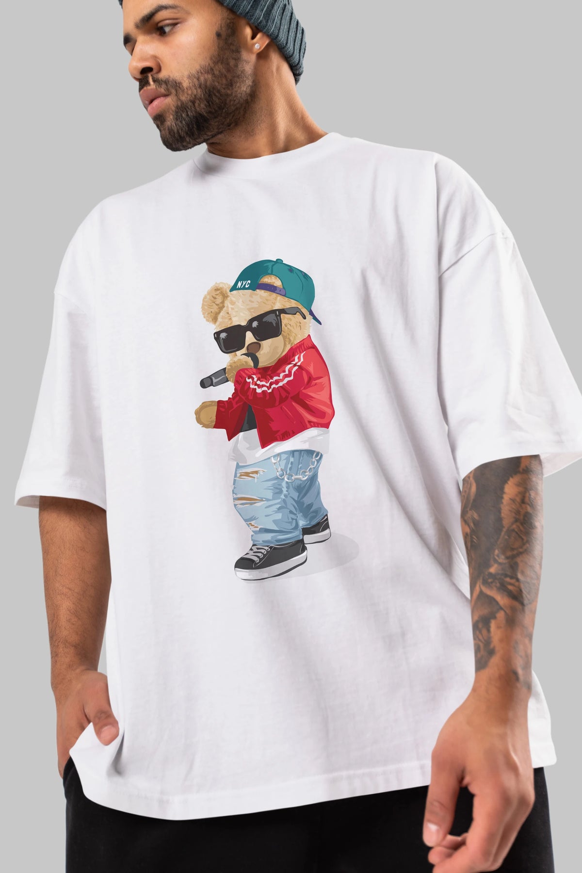 Teddy Bear Şarkıcı Ön Baskılı Oversize t-shirt Erkek Kadın Unisex %100 Pamuk