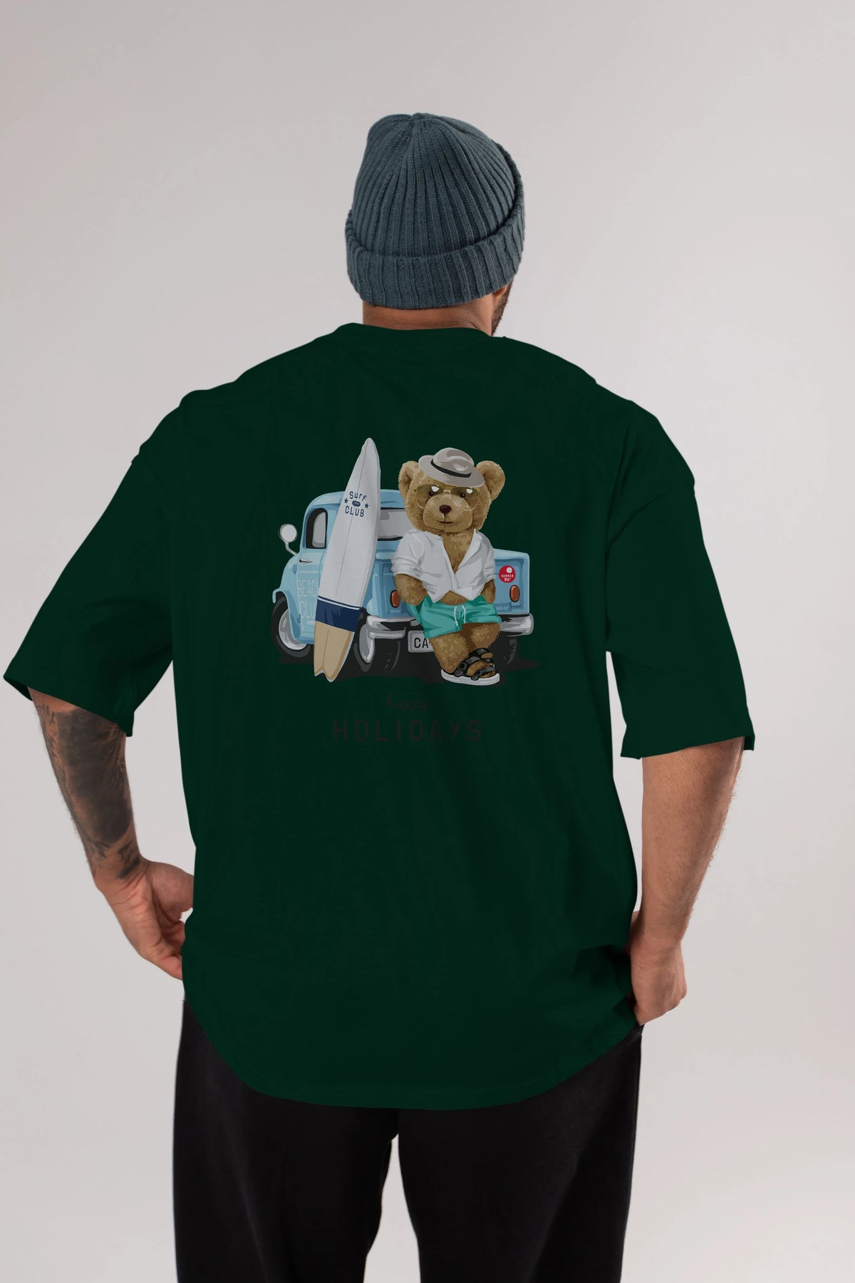 Teddy Bear Surf Club Arka Baskılı Oversize t-shirt Erkek Kadın Unisex %100 Pamuk