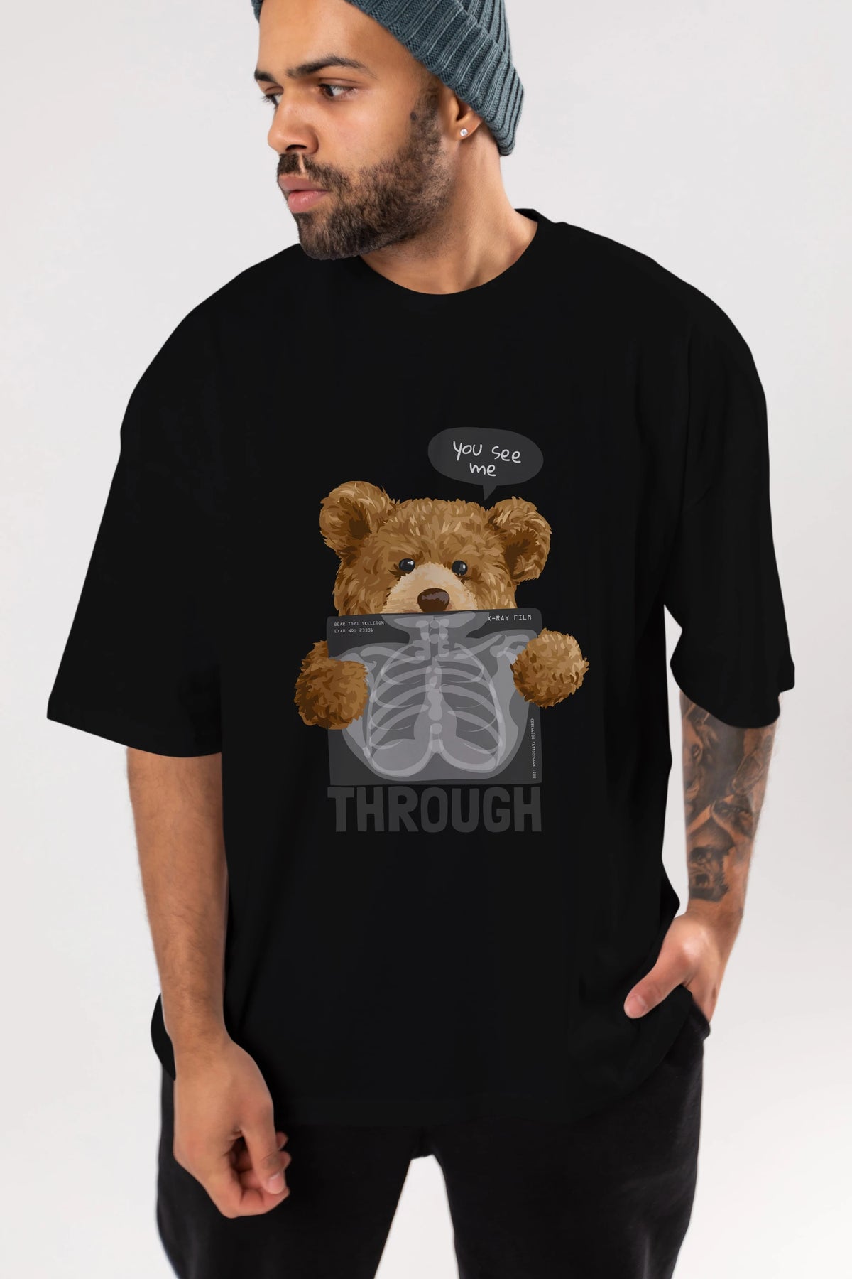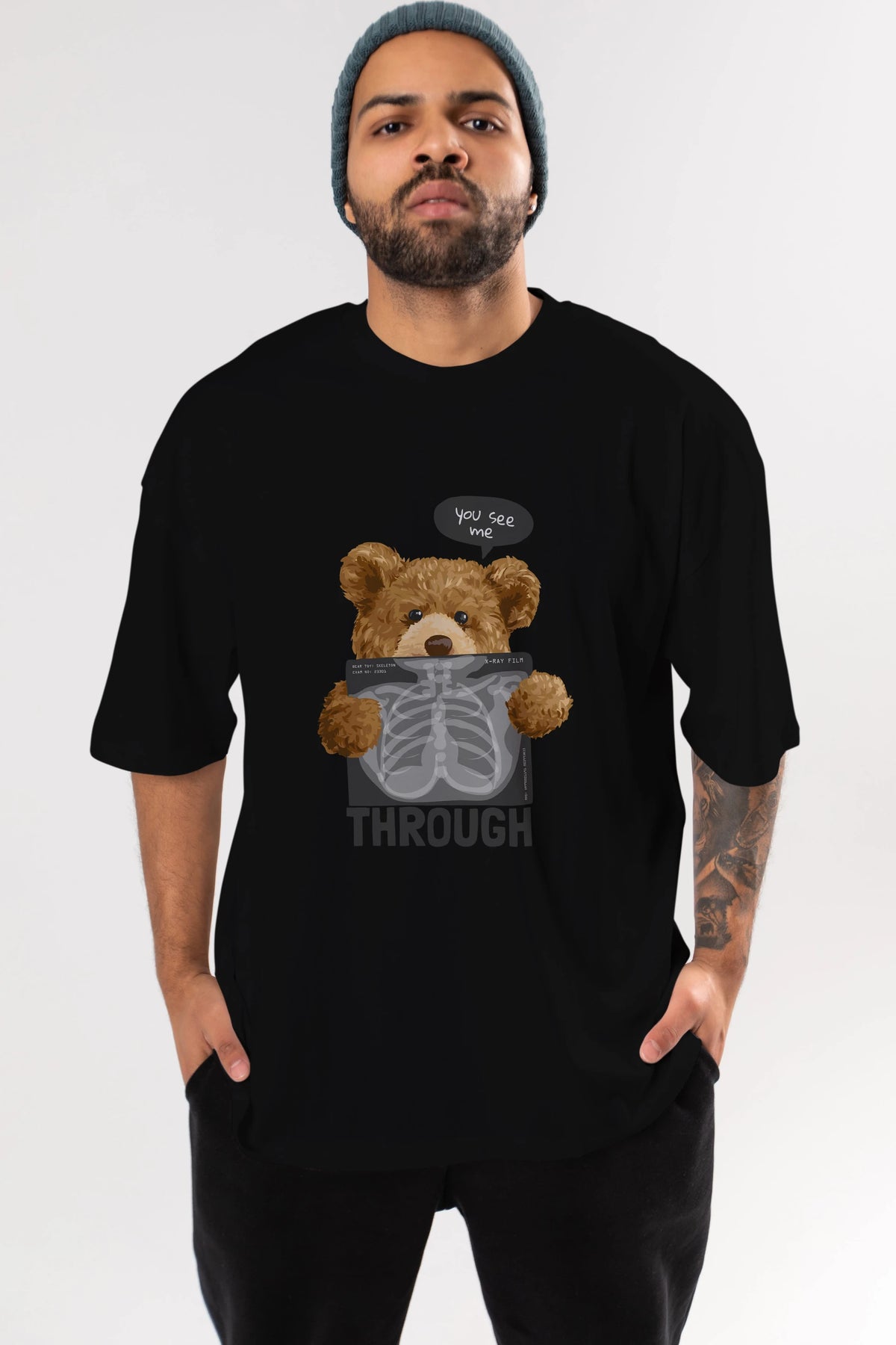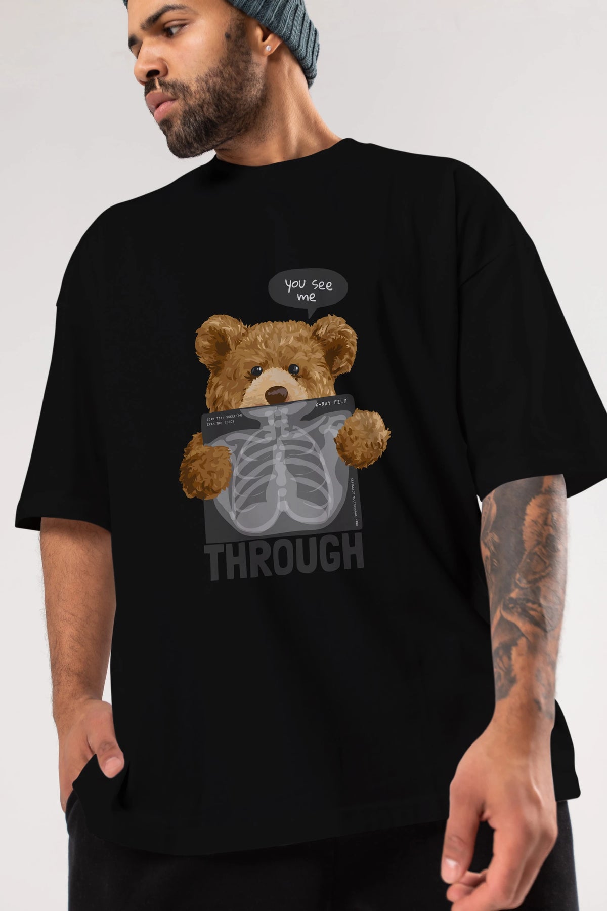 Teddy Bear Trough Ön Baskılı Oversize t-shirt Erkek Kadın Unisex %100 Pamuk
