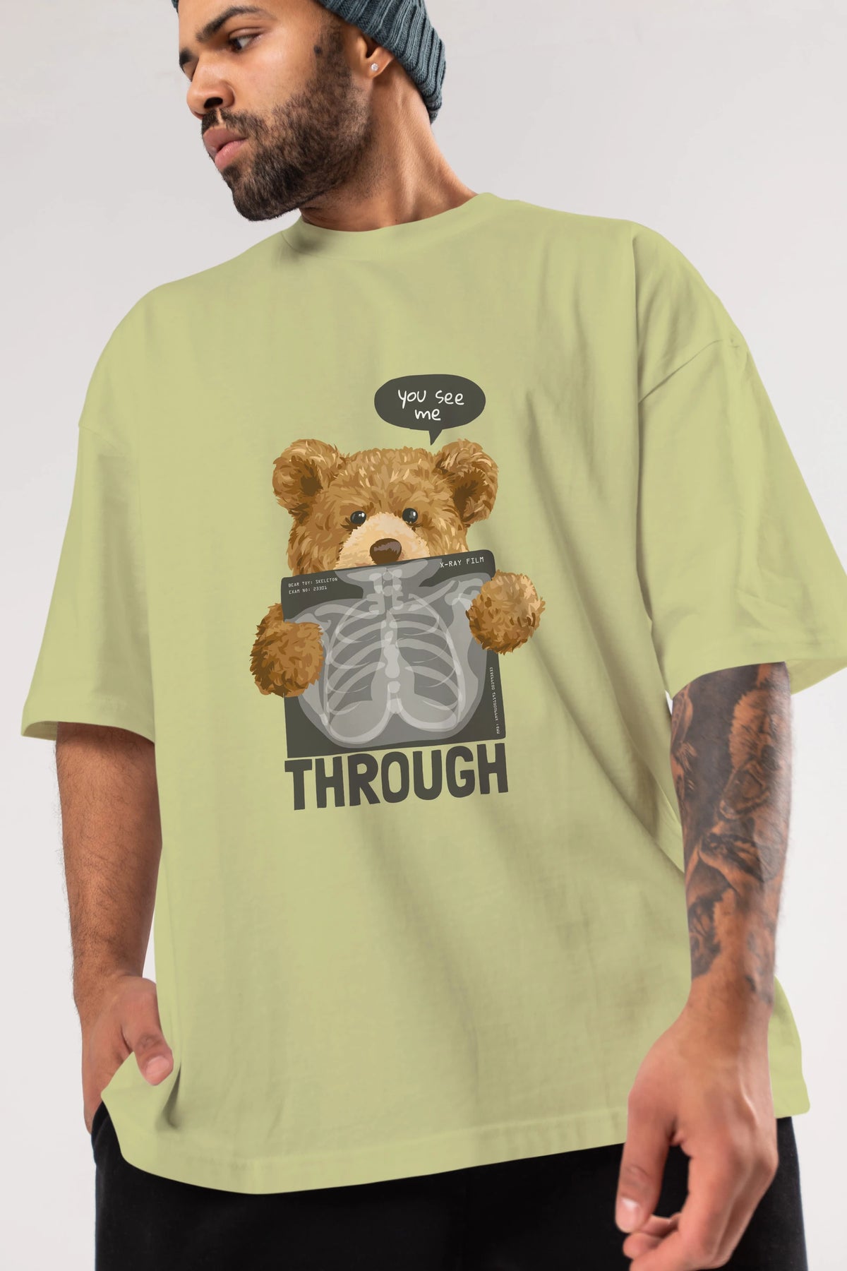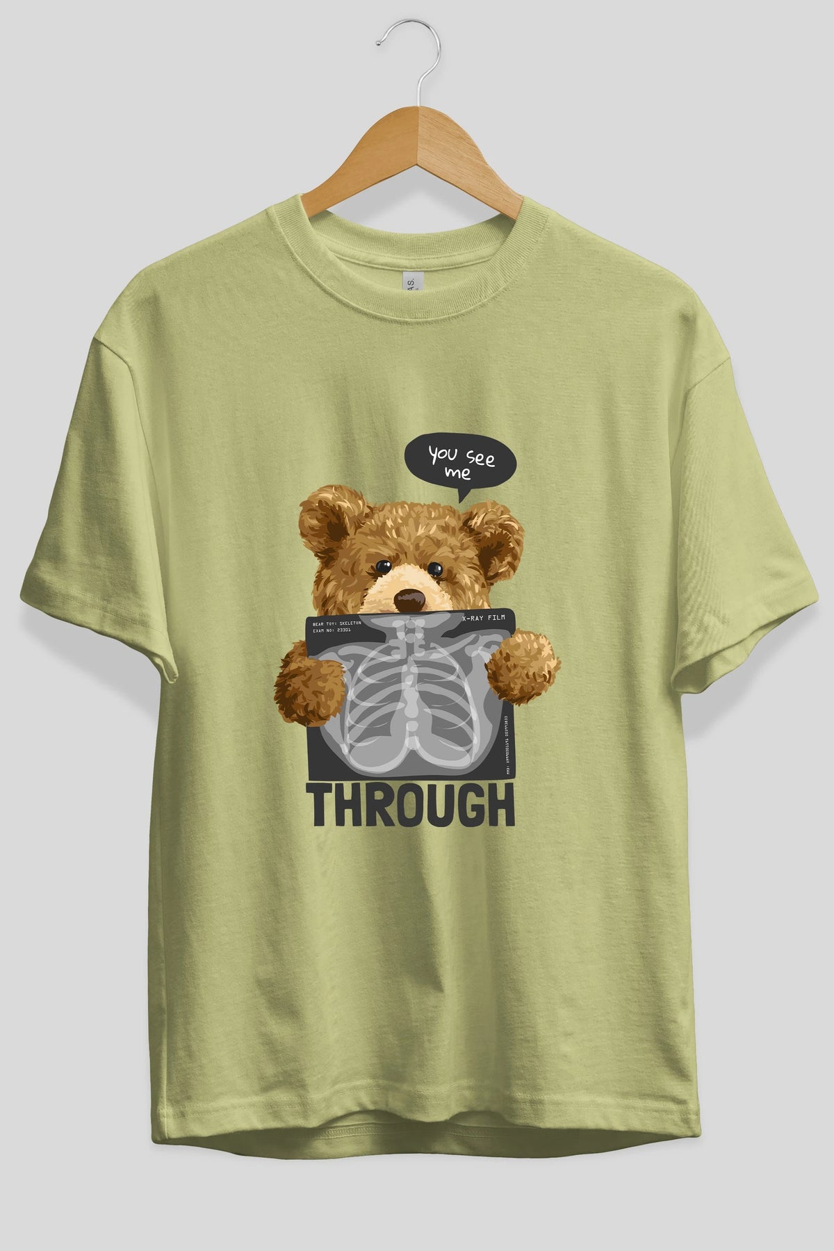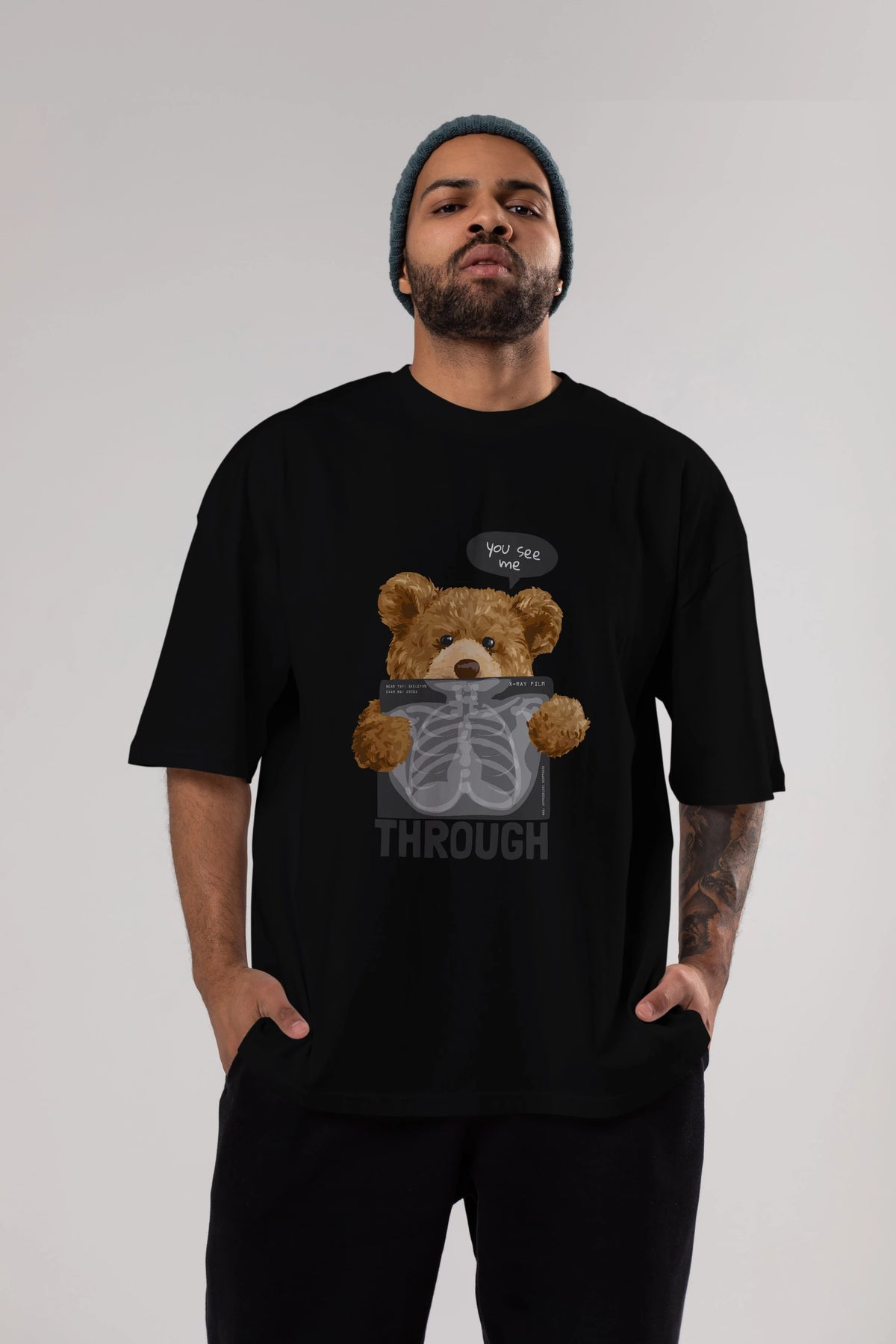 Teddy Bear Trough Ön Baskılı Oversize t-shirt Erkek Kadın Unisex %100 Pamuk