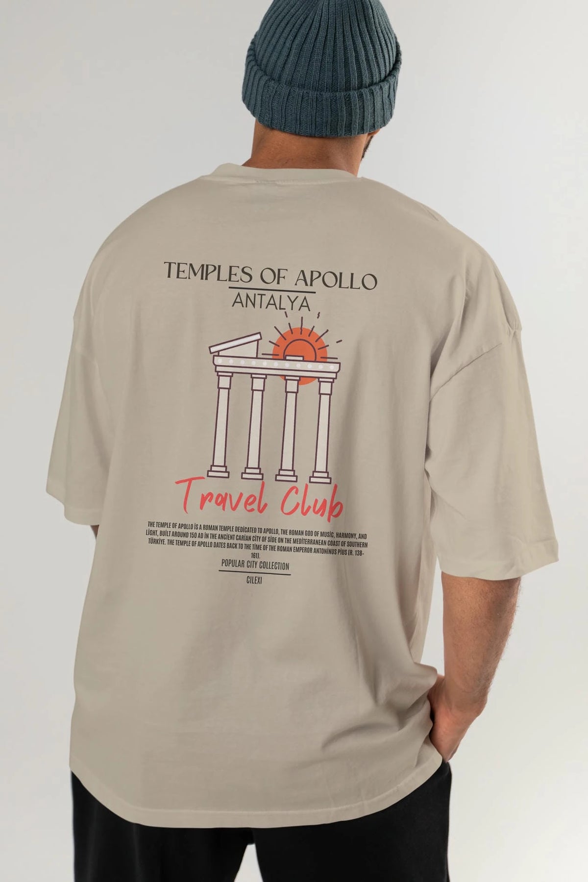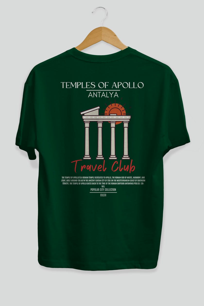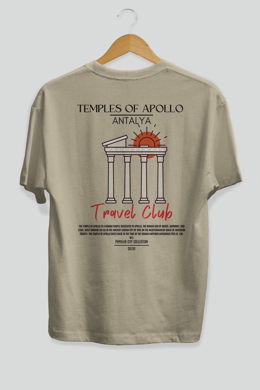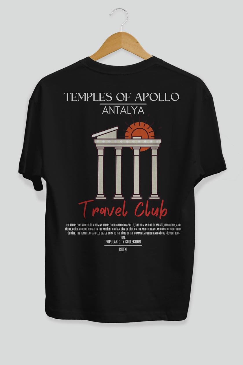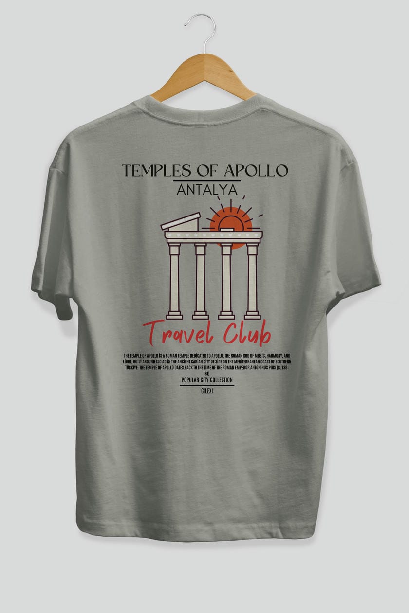 Temples Of Apollo Antalya Arka Baskılı Oversize t-shirt Erkek Kadın Pamuk Bisiklet Yaka tişort