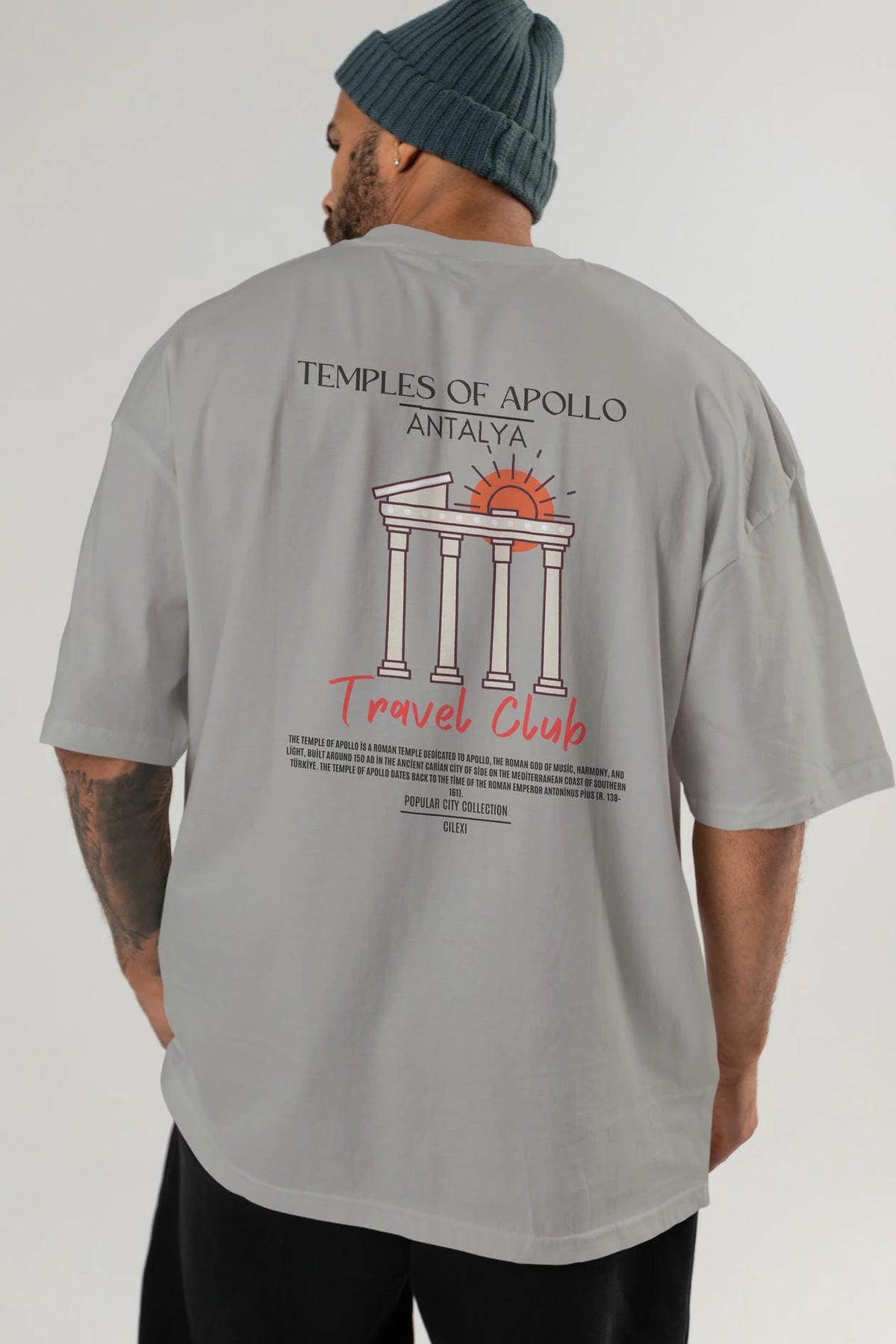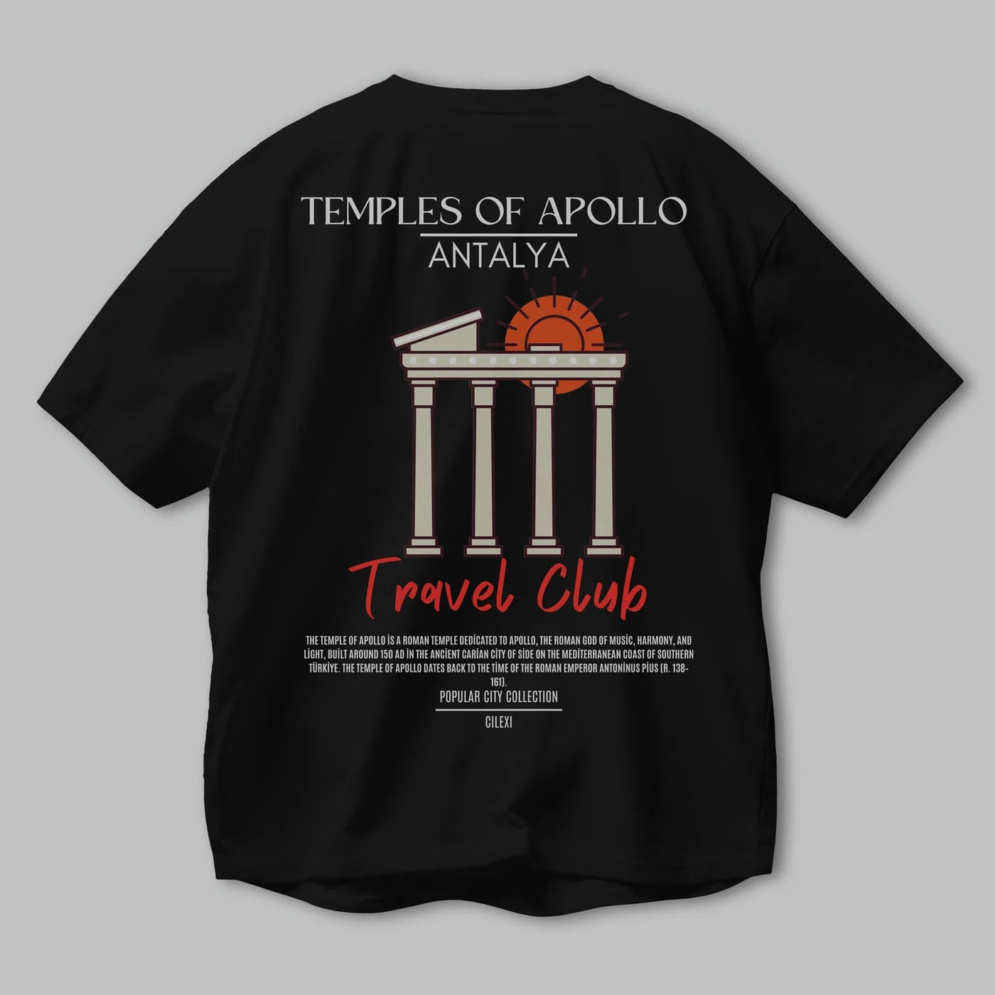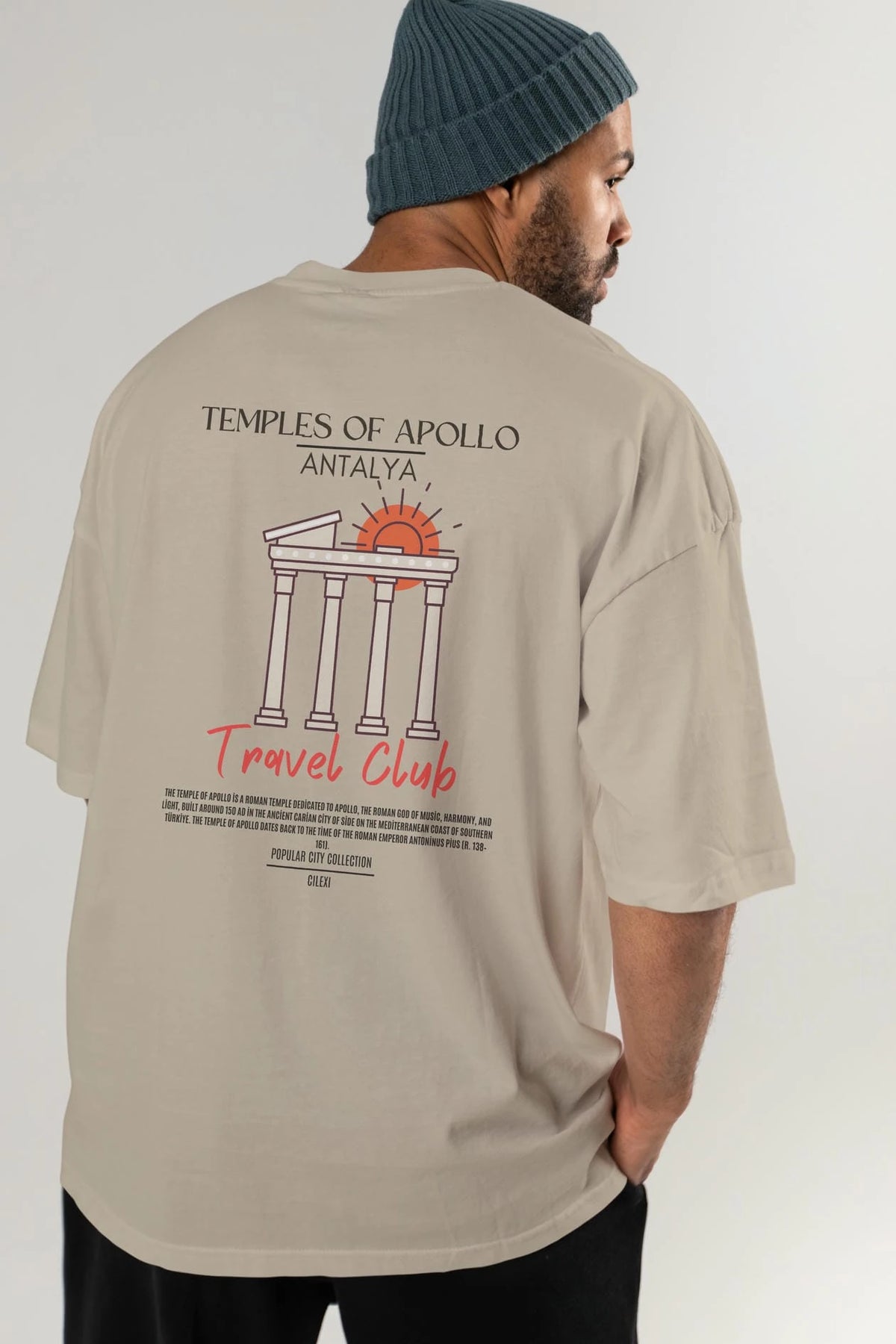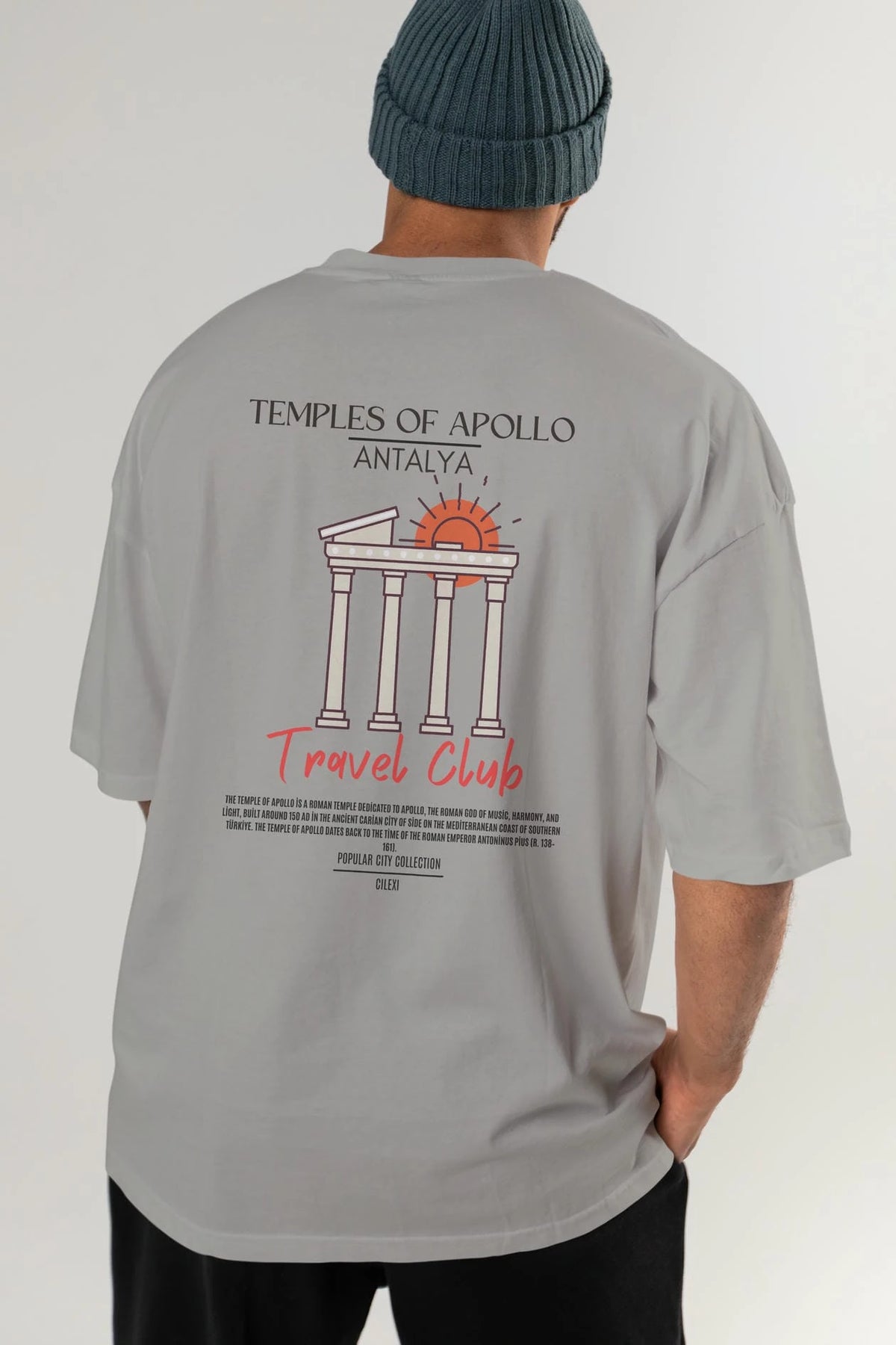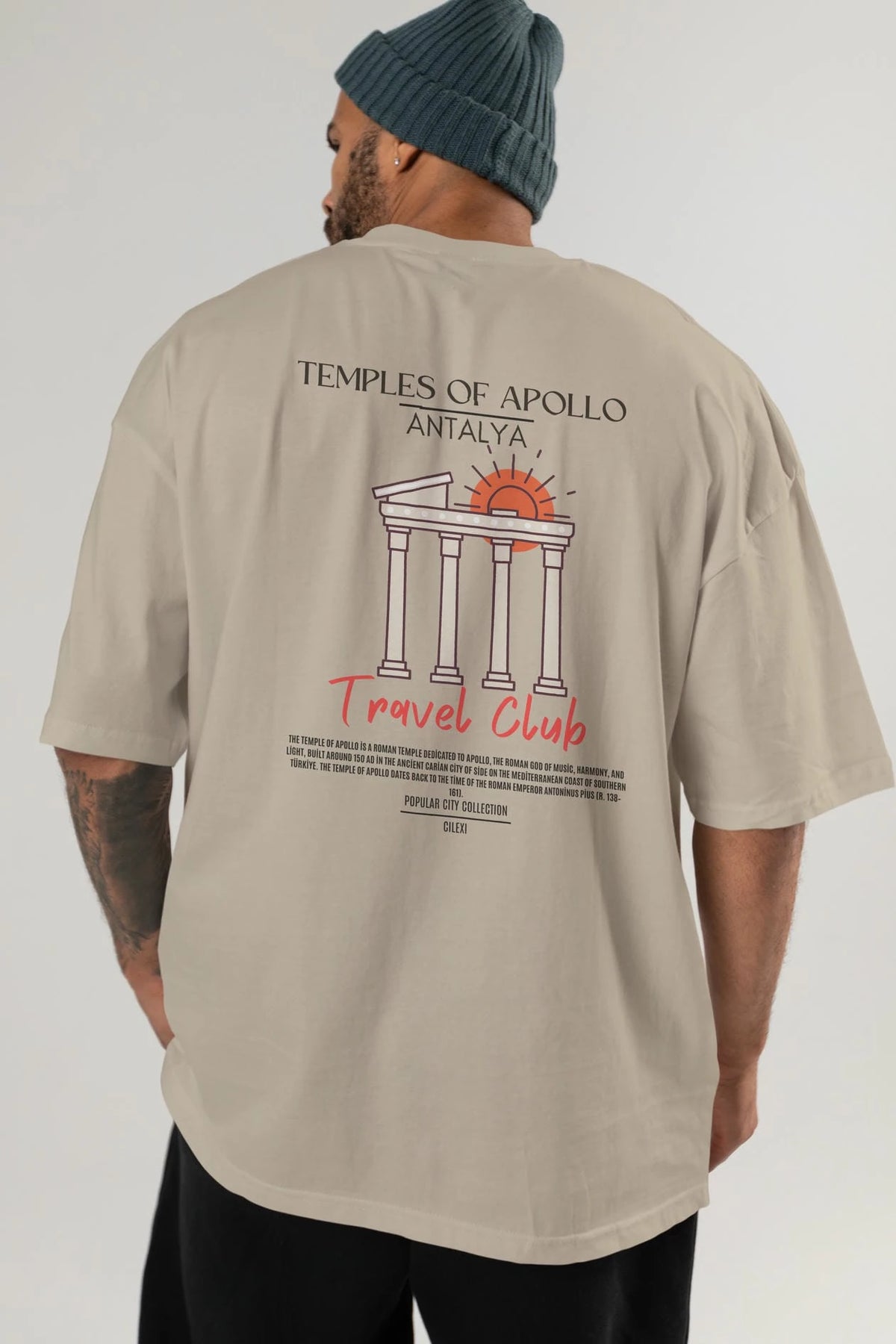 Temples Of Apollo Antalya Arka Baskılı Oversize t-shirt Erkek Kadın Pamuk Bisiklet Yaka tişort