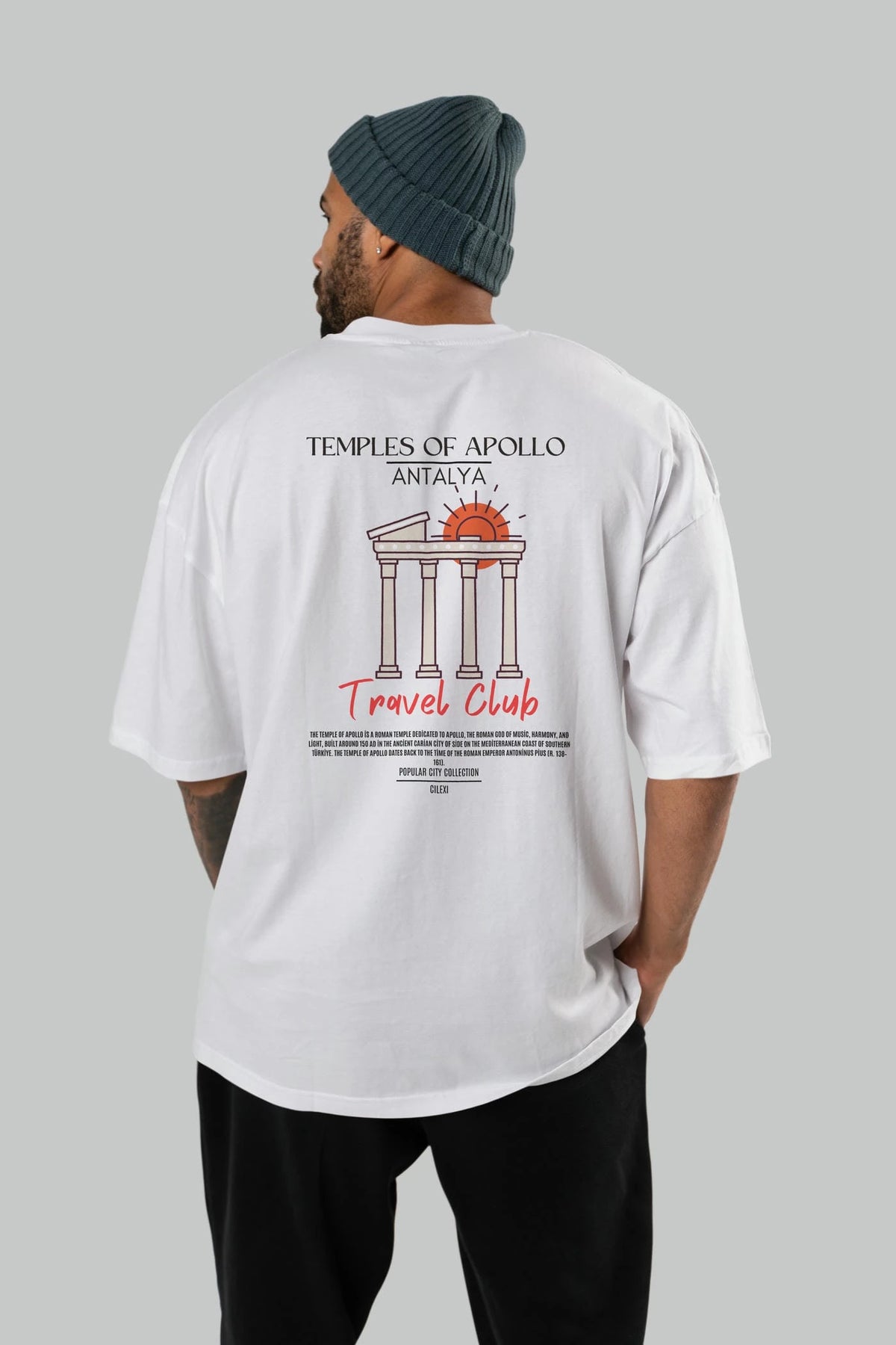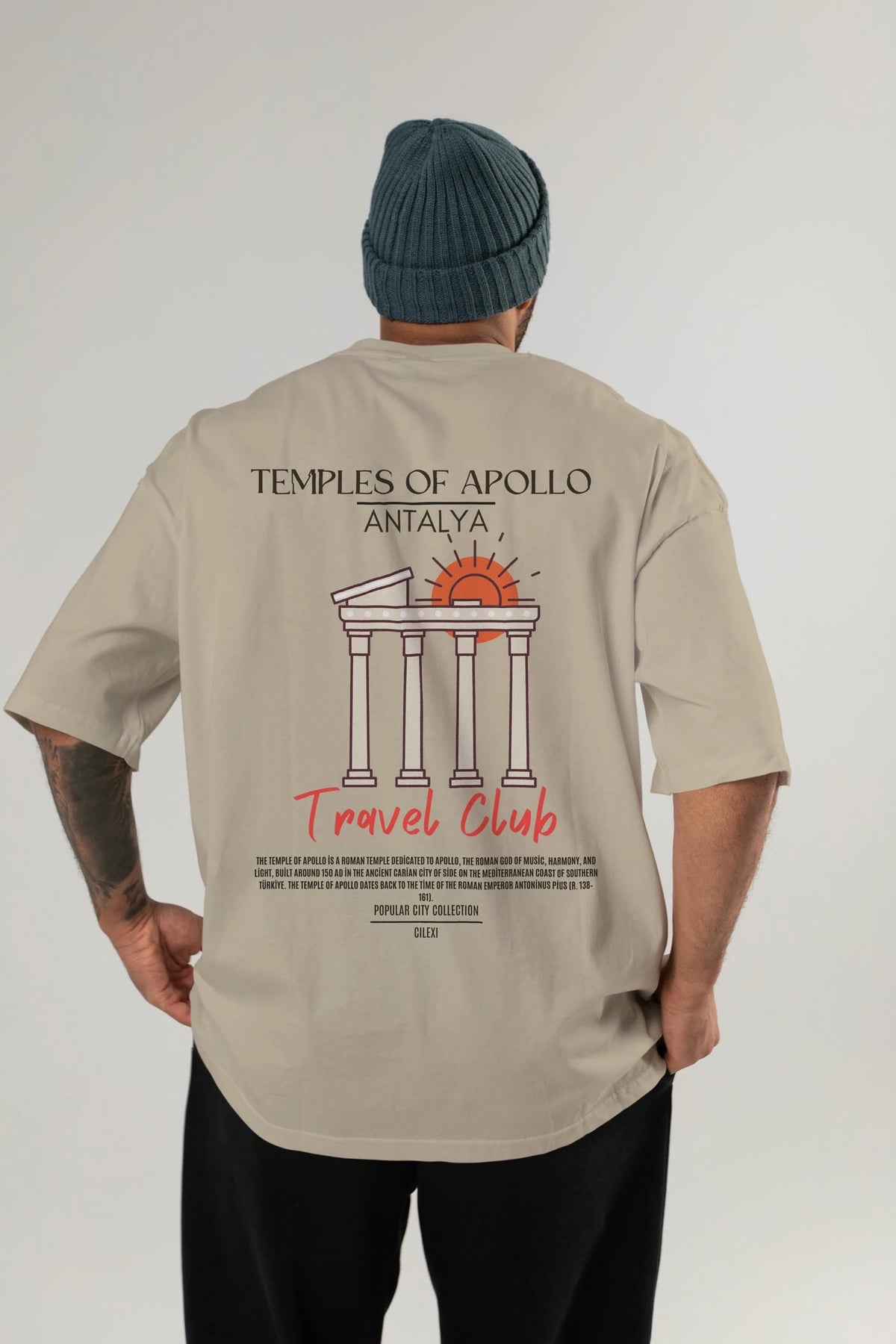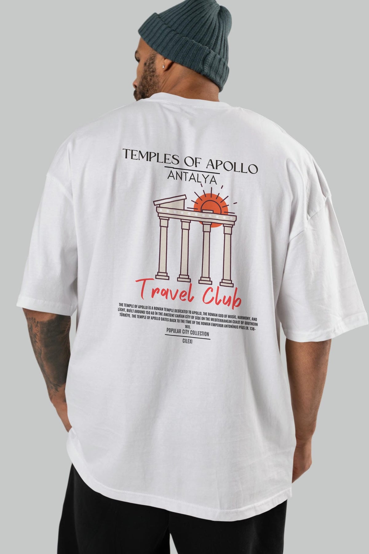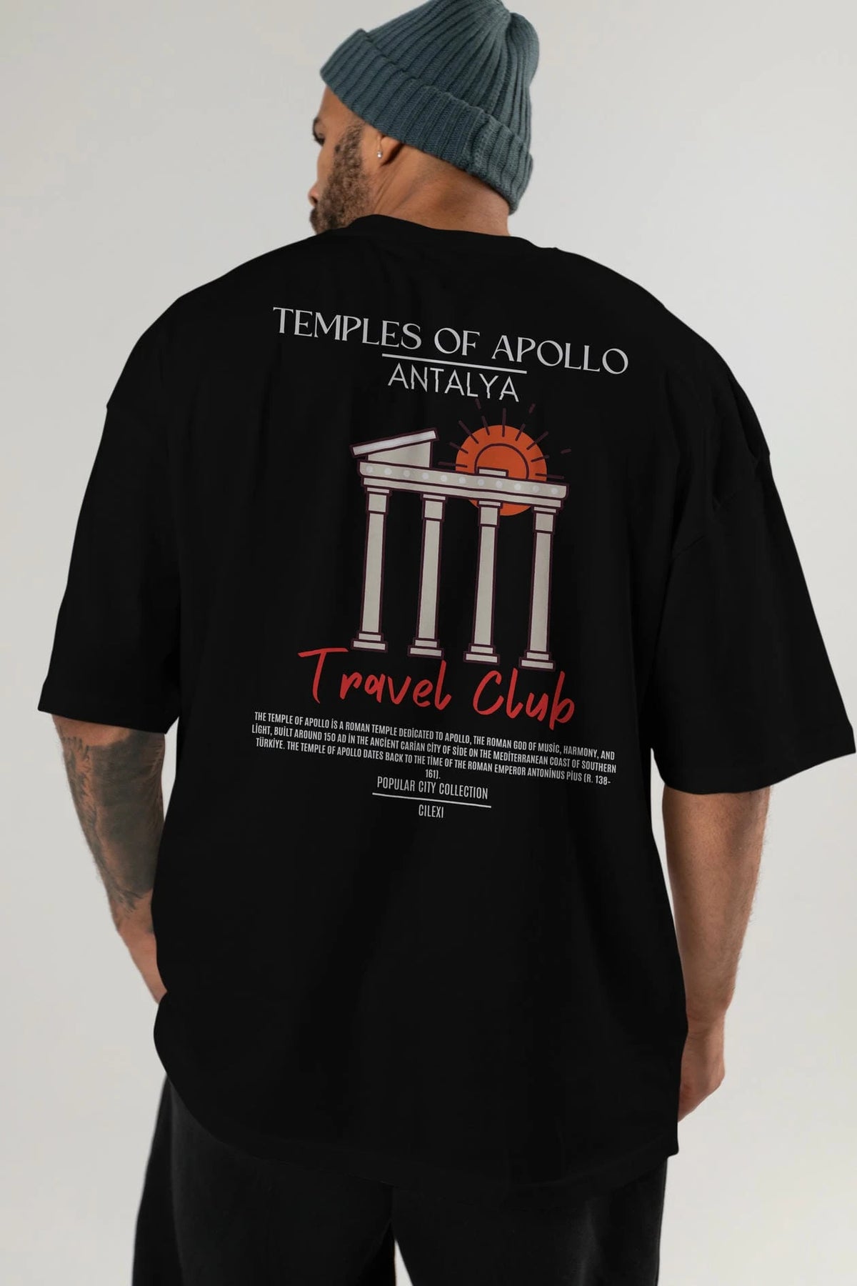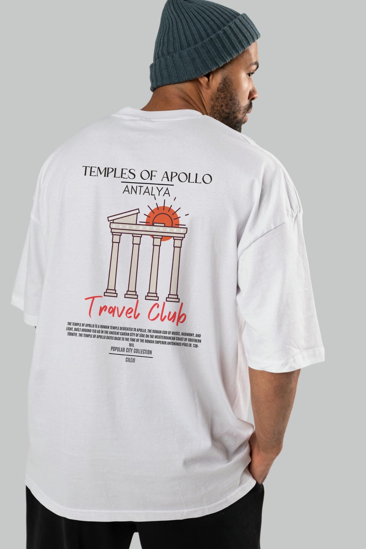 Temples Of Apollo Antalya Arka Baskılı Oversize t-shirt Erkek Kadın Pamuk Bisiklet Yaka tişort