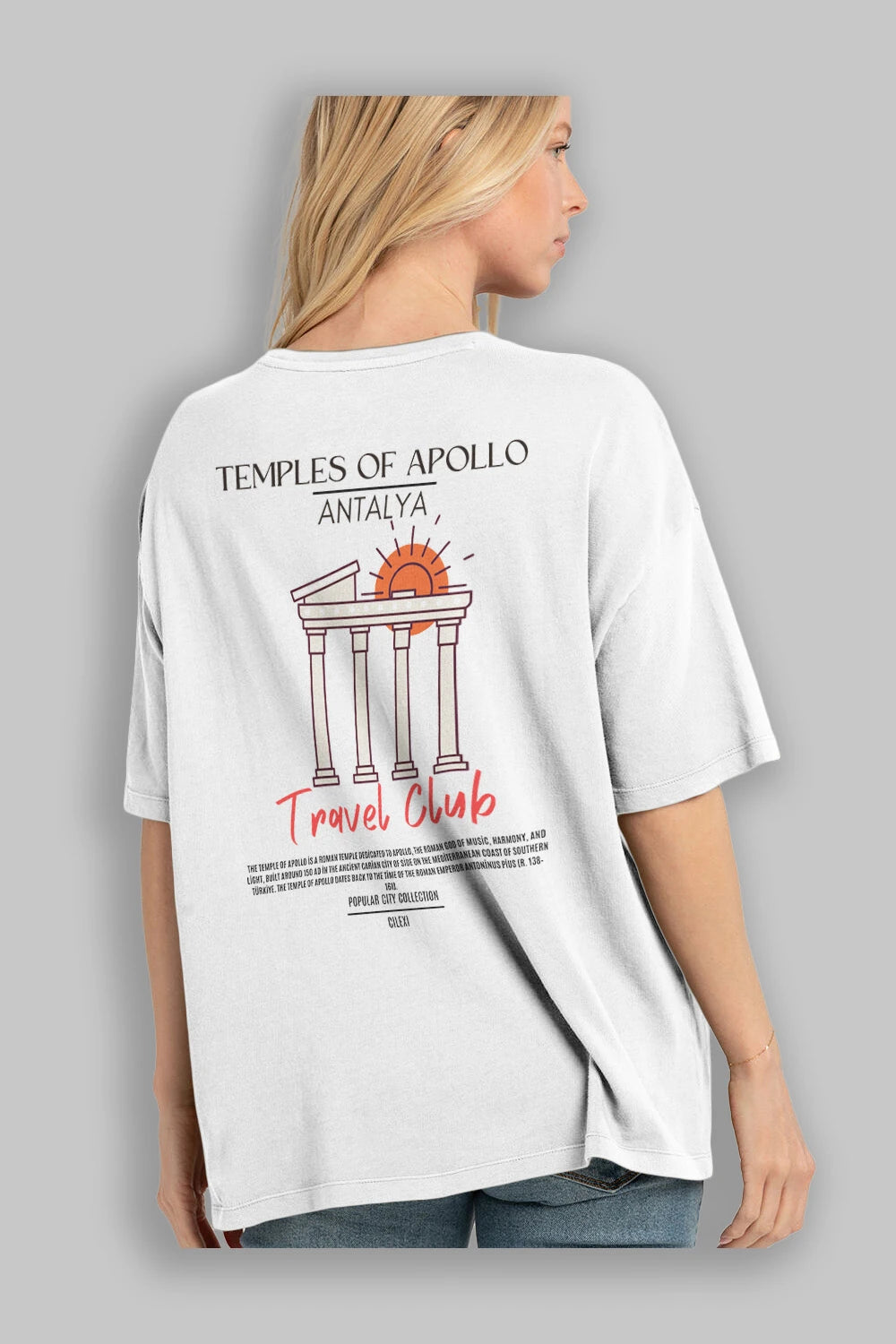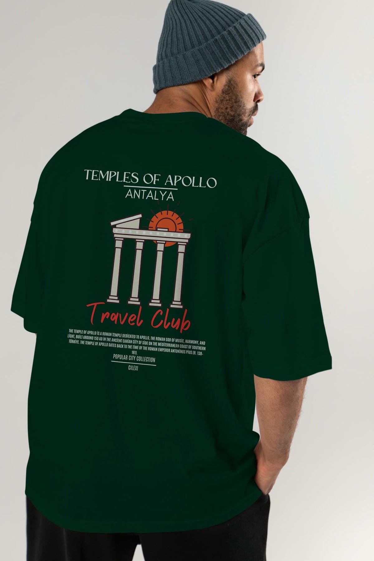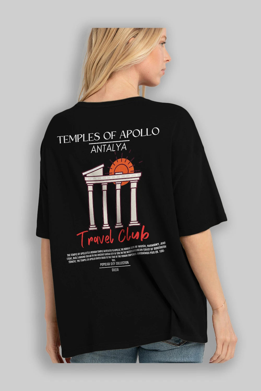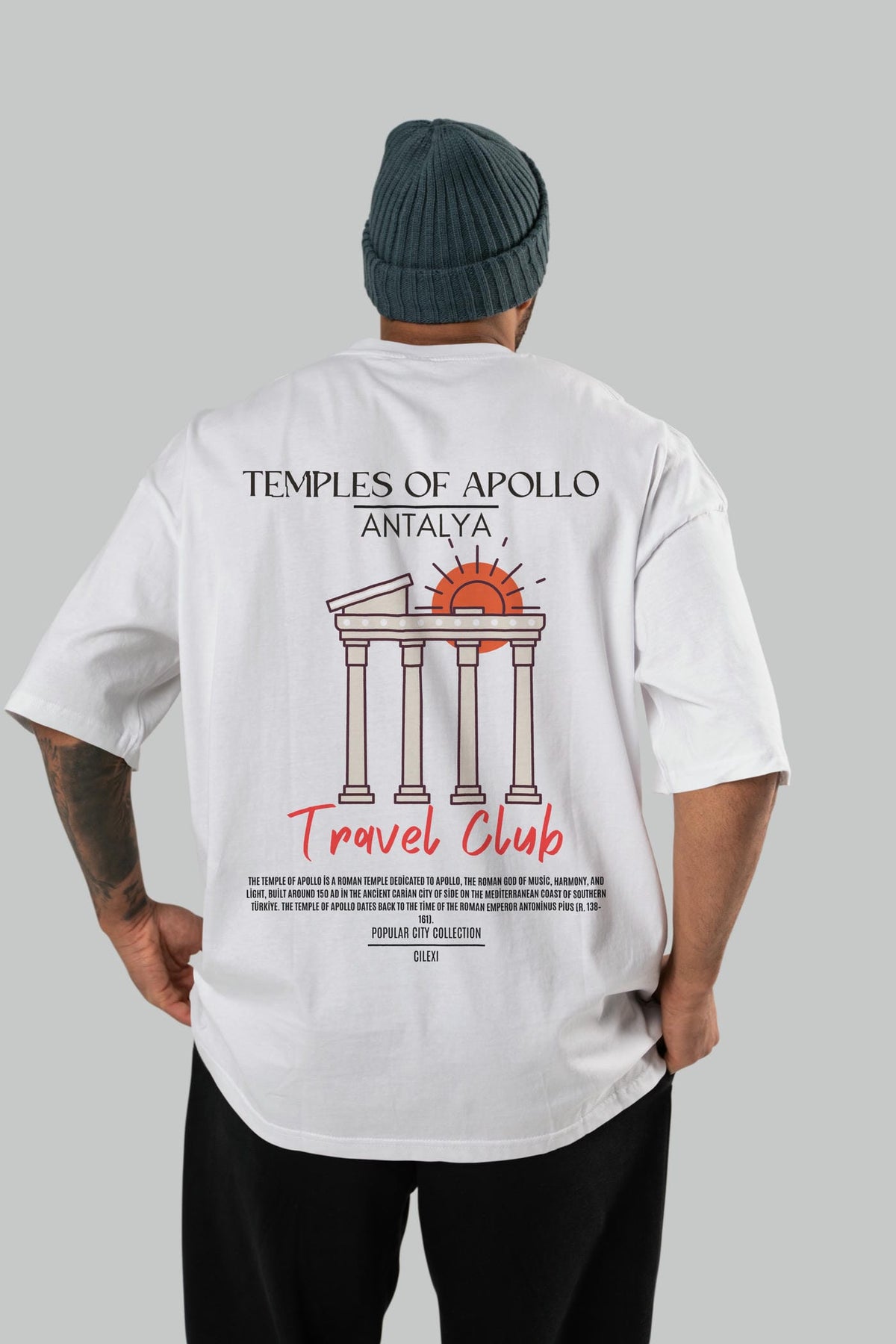 Temples Of Apollo Antalya Arka Baskılı Oversize t-shirt Erkek Kadın Pamuk Bisiklet Yaka tişort