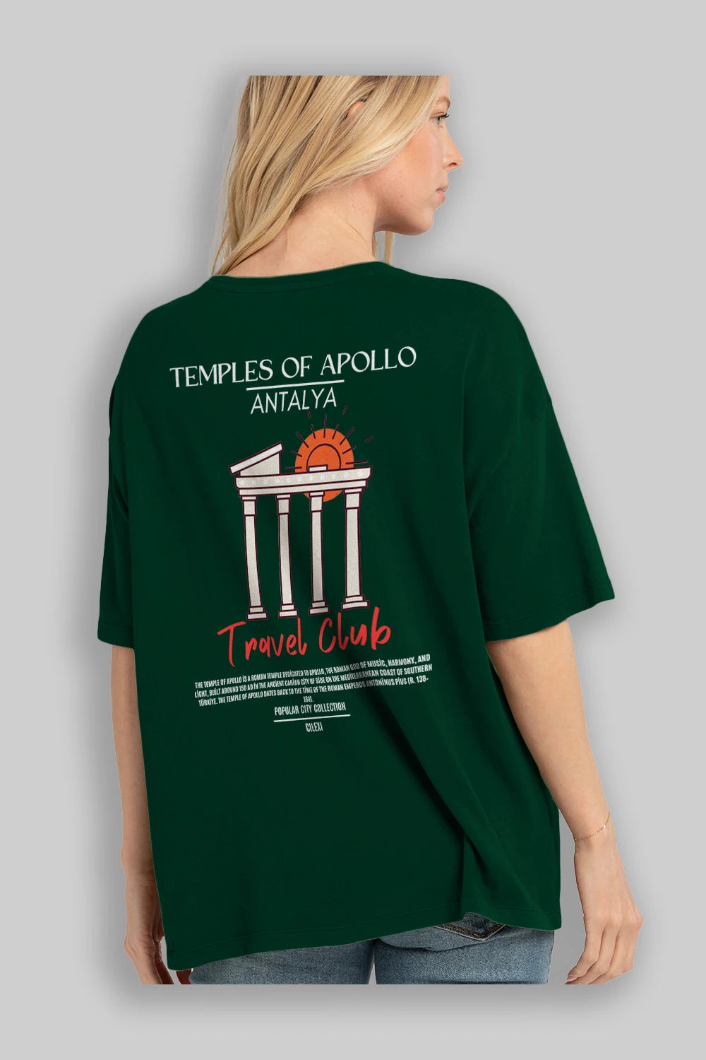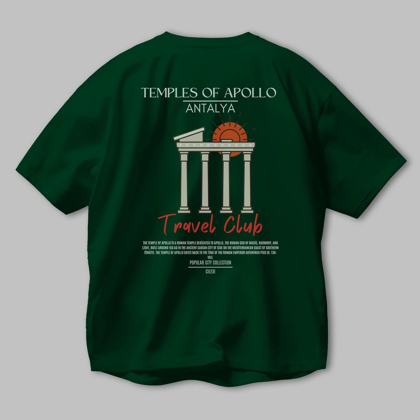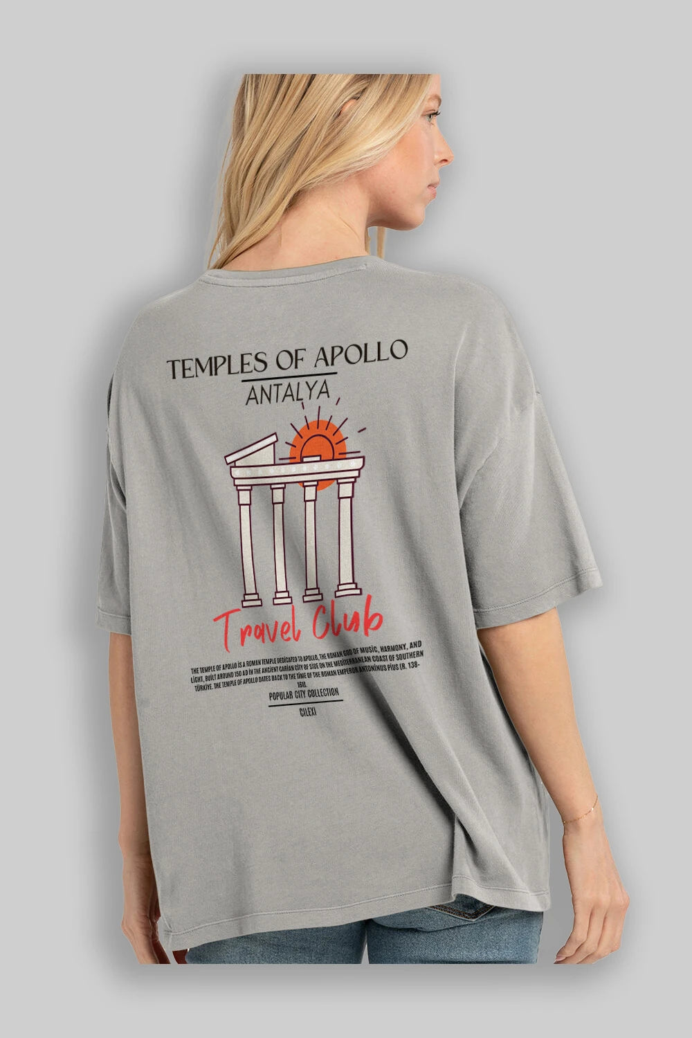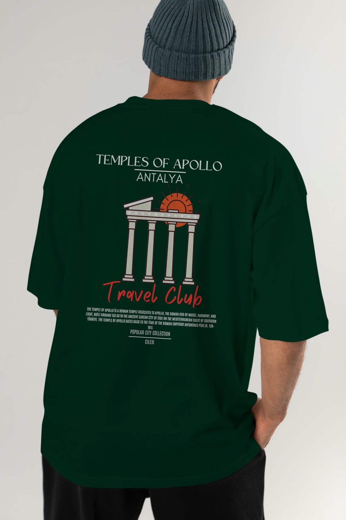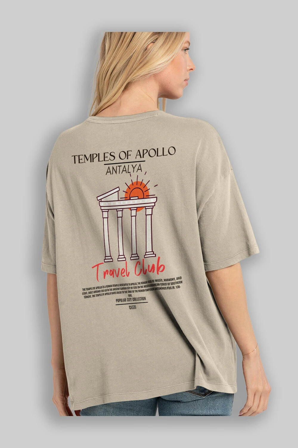 Temples Of Apollo Antalya Arka Baskılı Oversize t-shirt Erkek Kadın Pamuk Bisiklet Yaka tişort