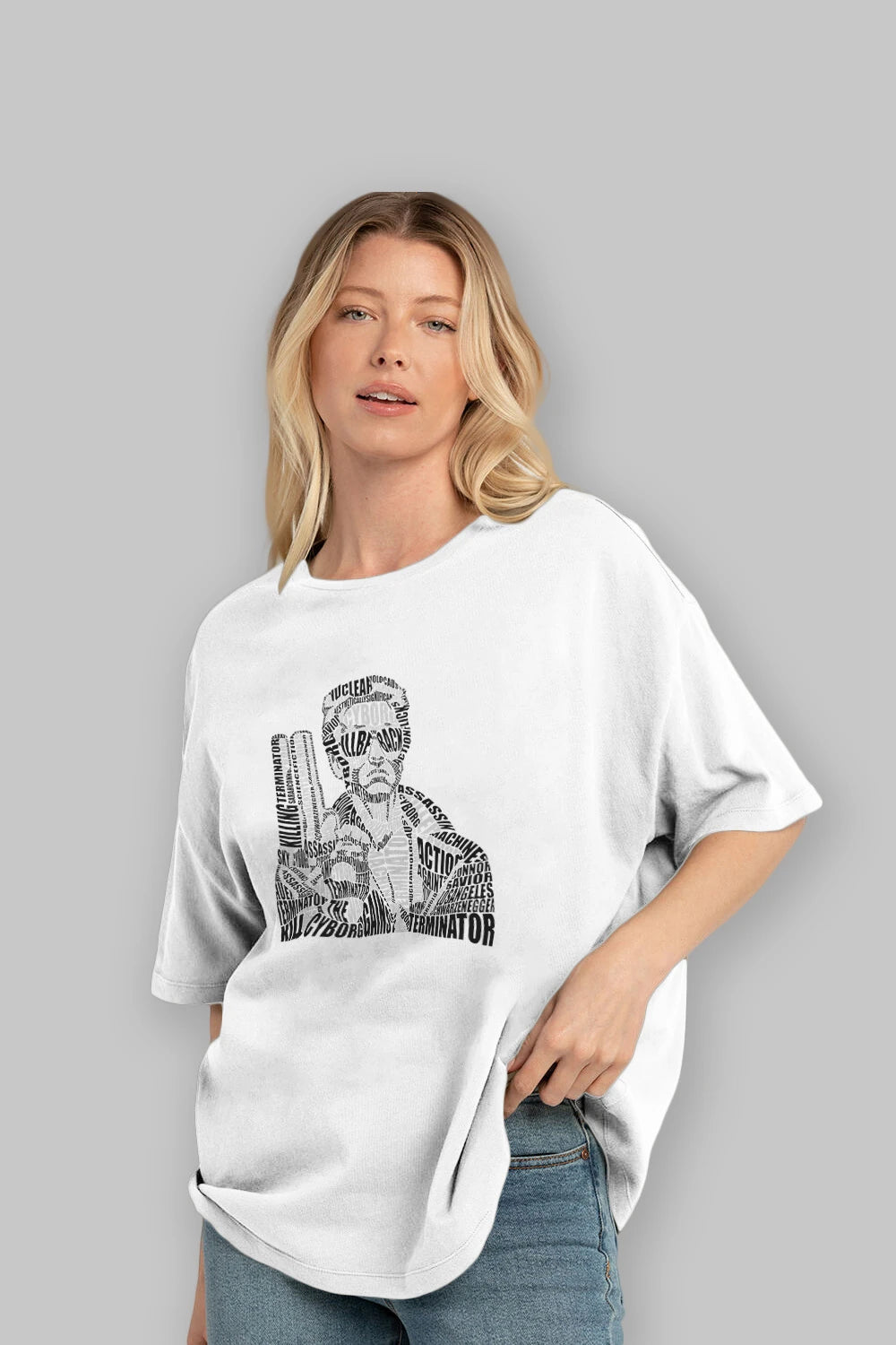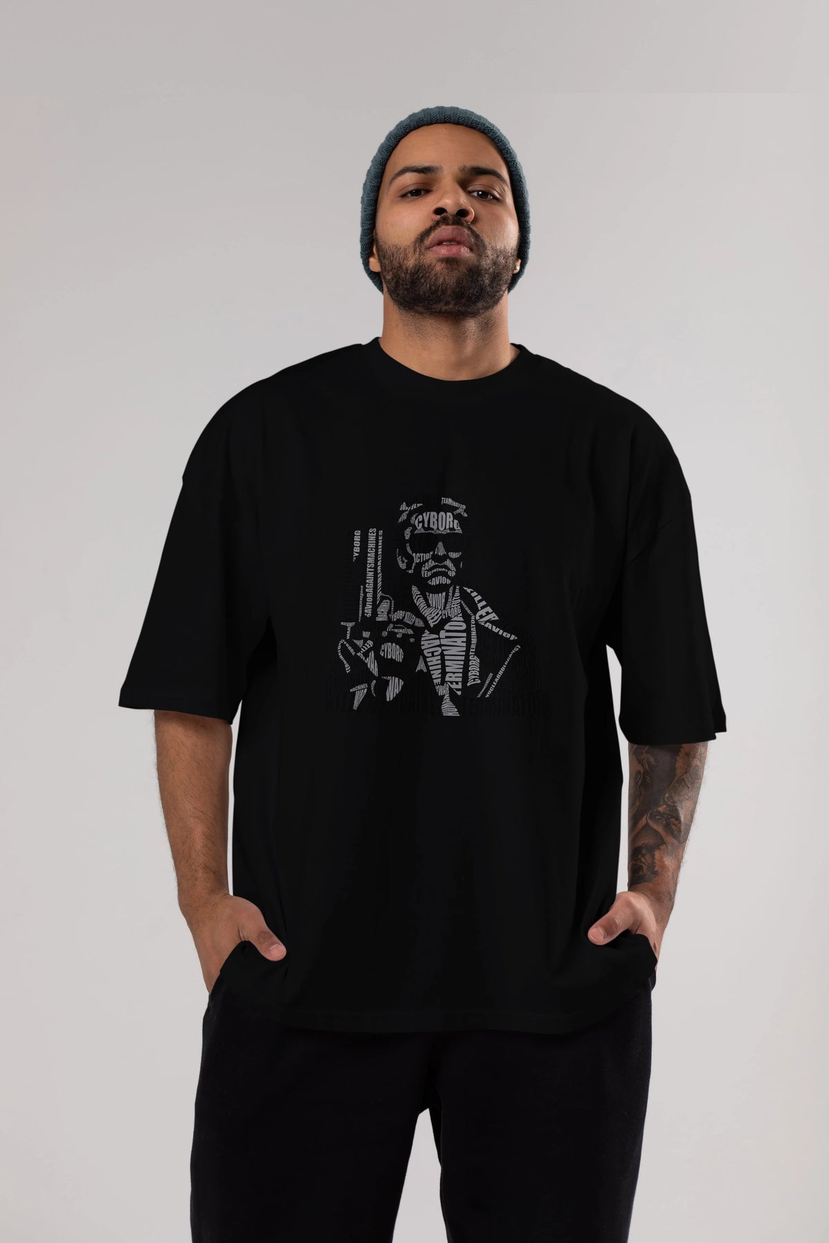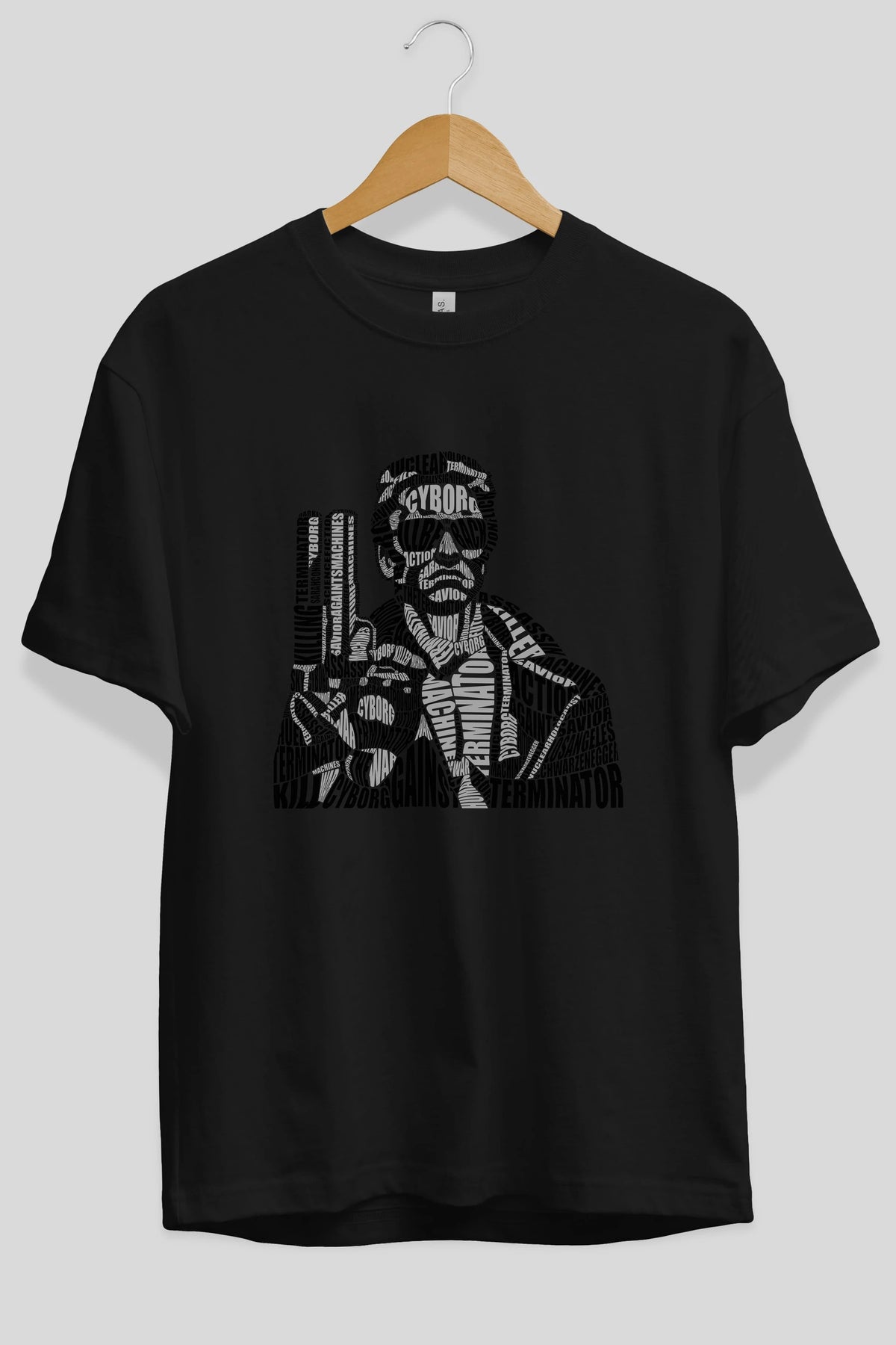 Terminator Calligram Ön Baskılı Oversize t-shirt %100 pamuk Erkek Kadın Unisex
