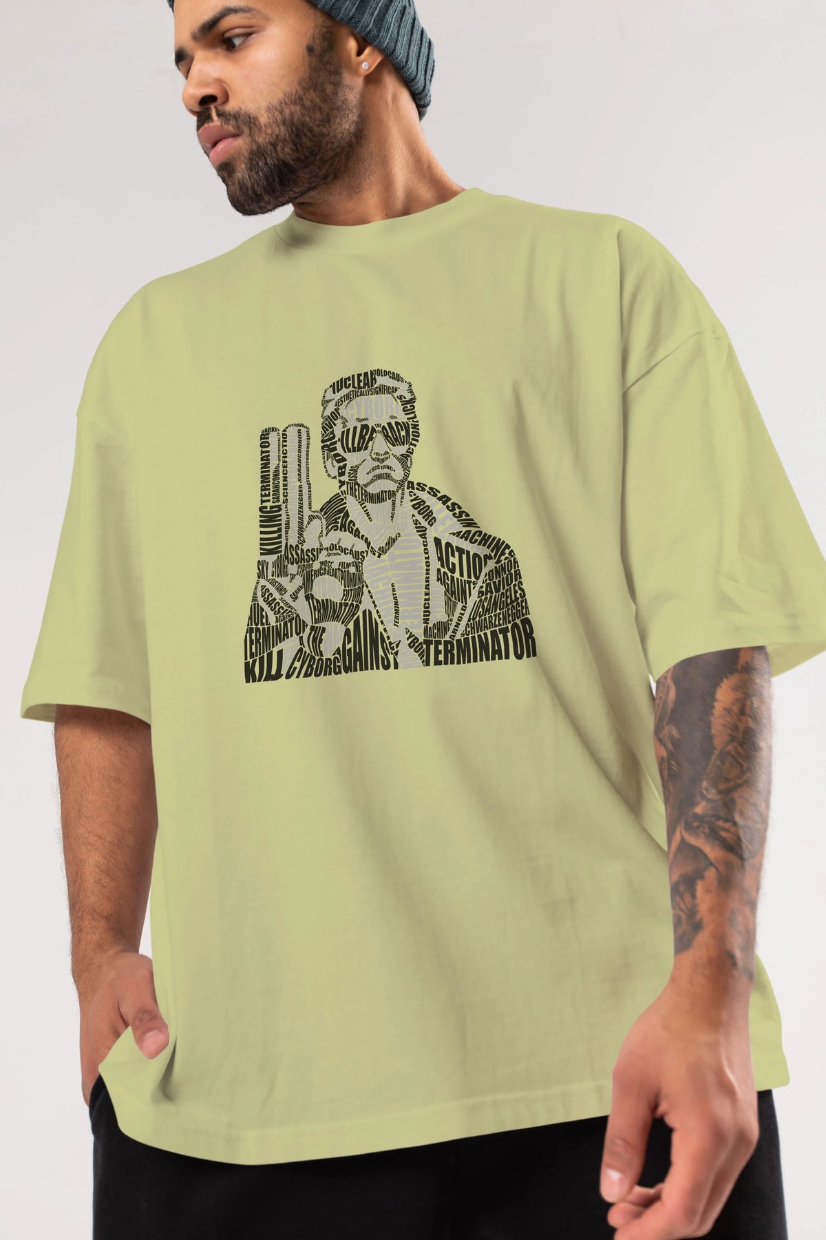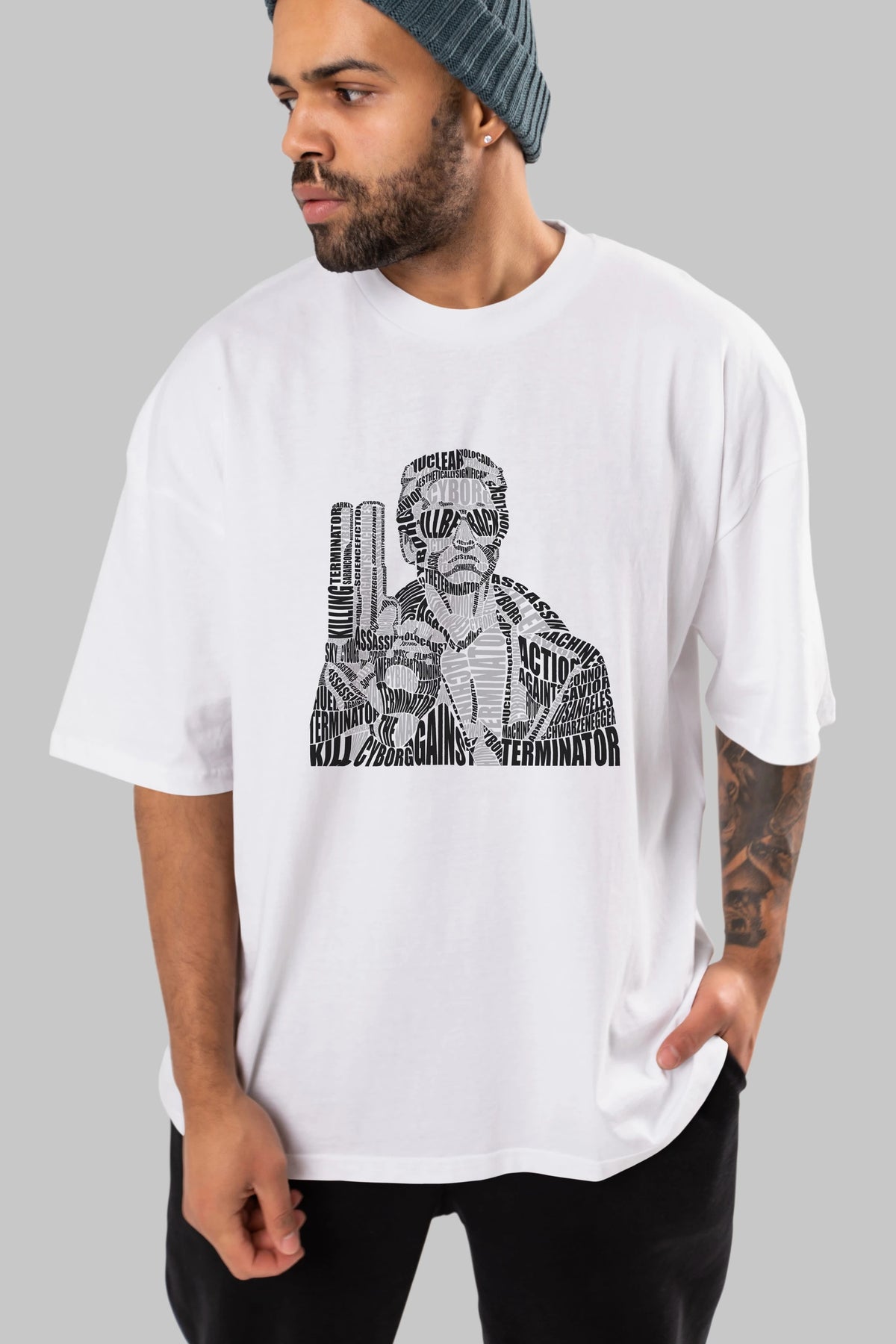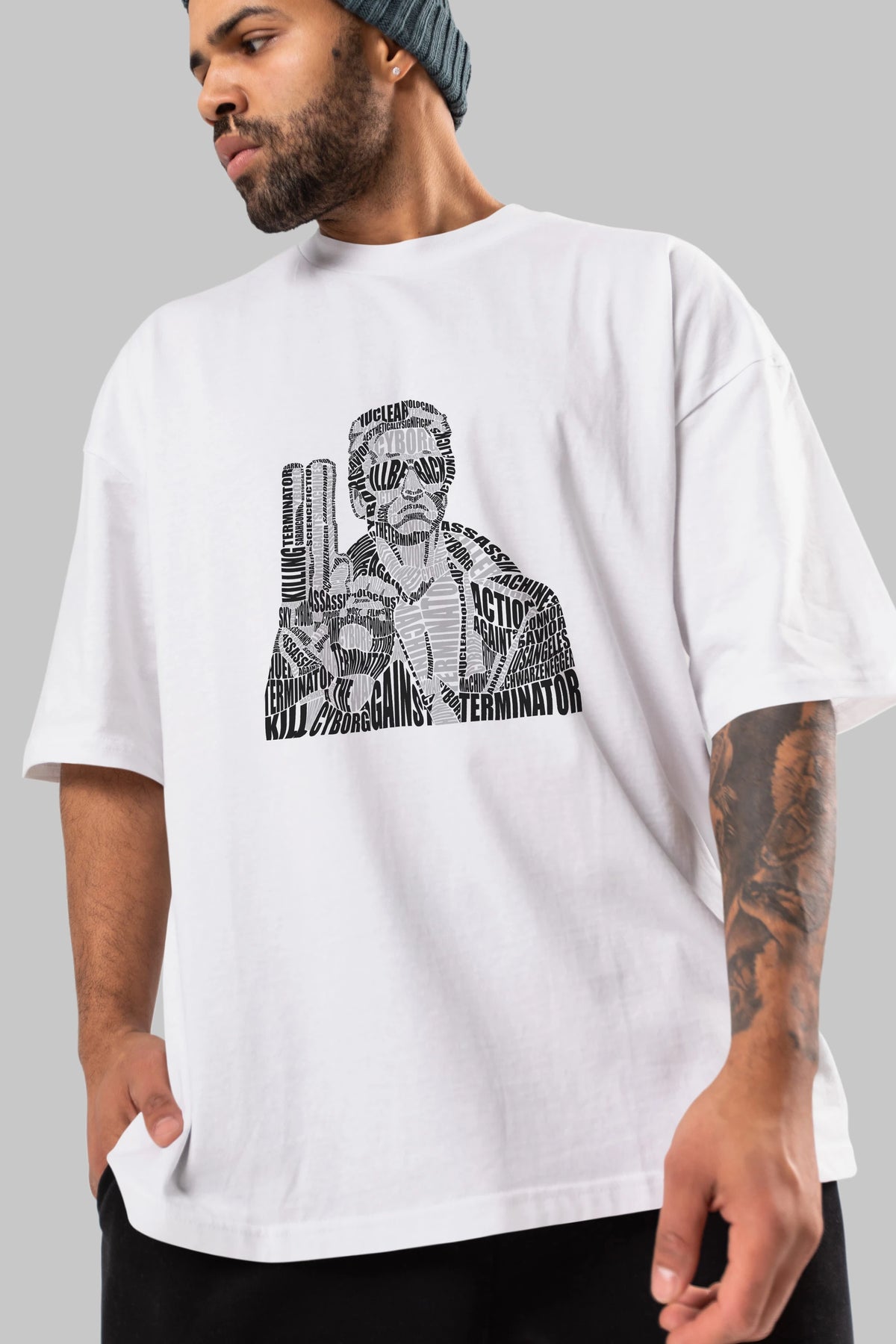 Terminator Calligram Ön Baskılı Oversize t-shirt %100 pamuk Erkek Kadın Unisex