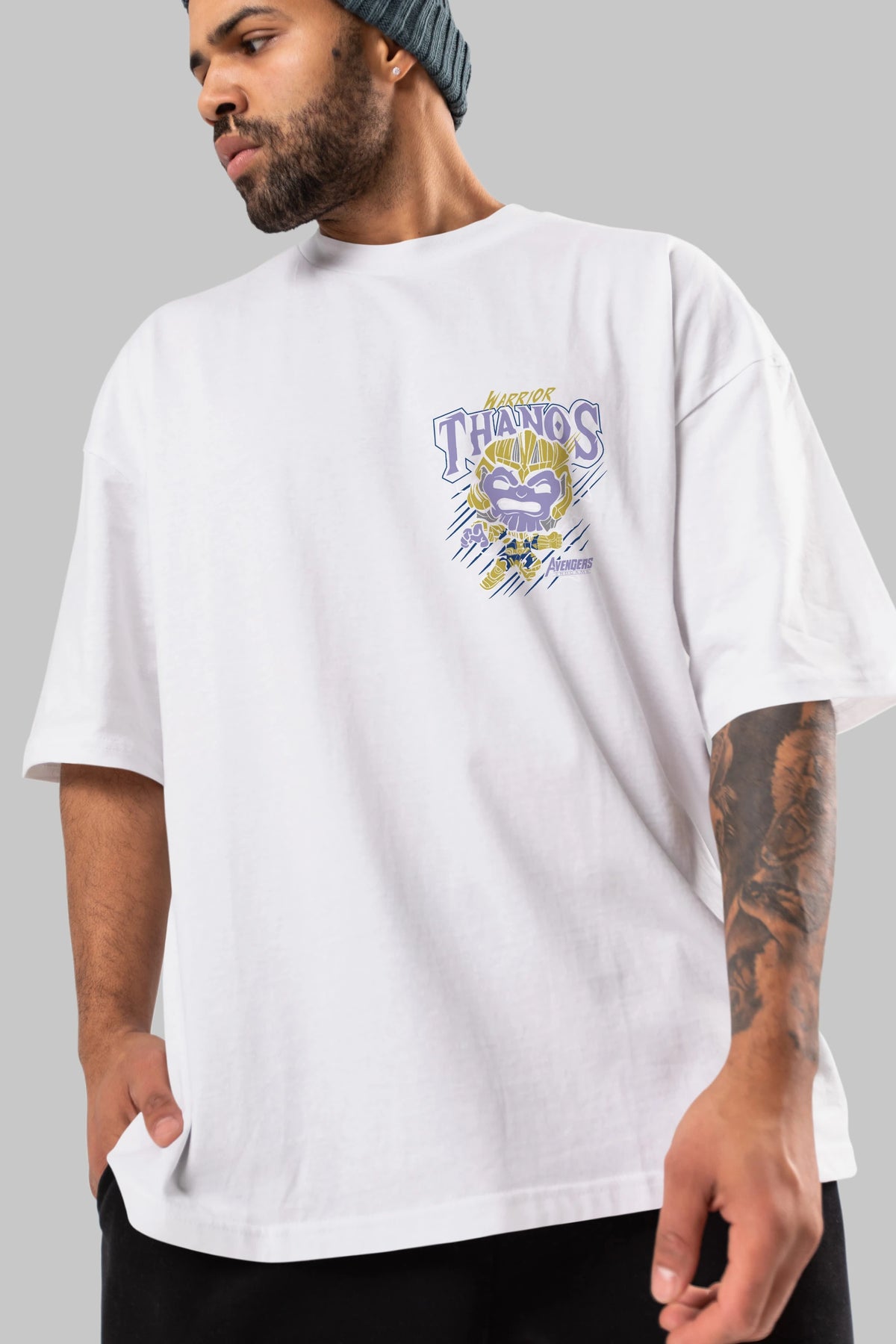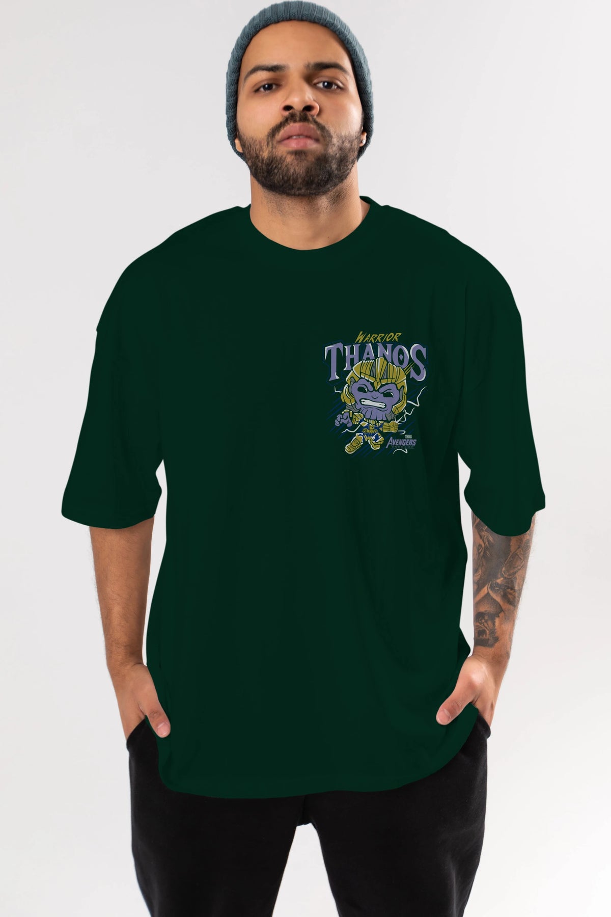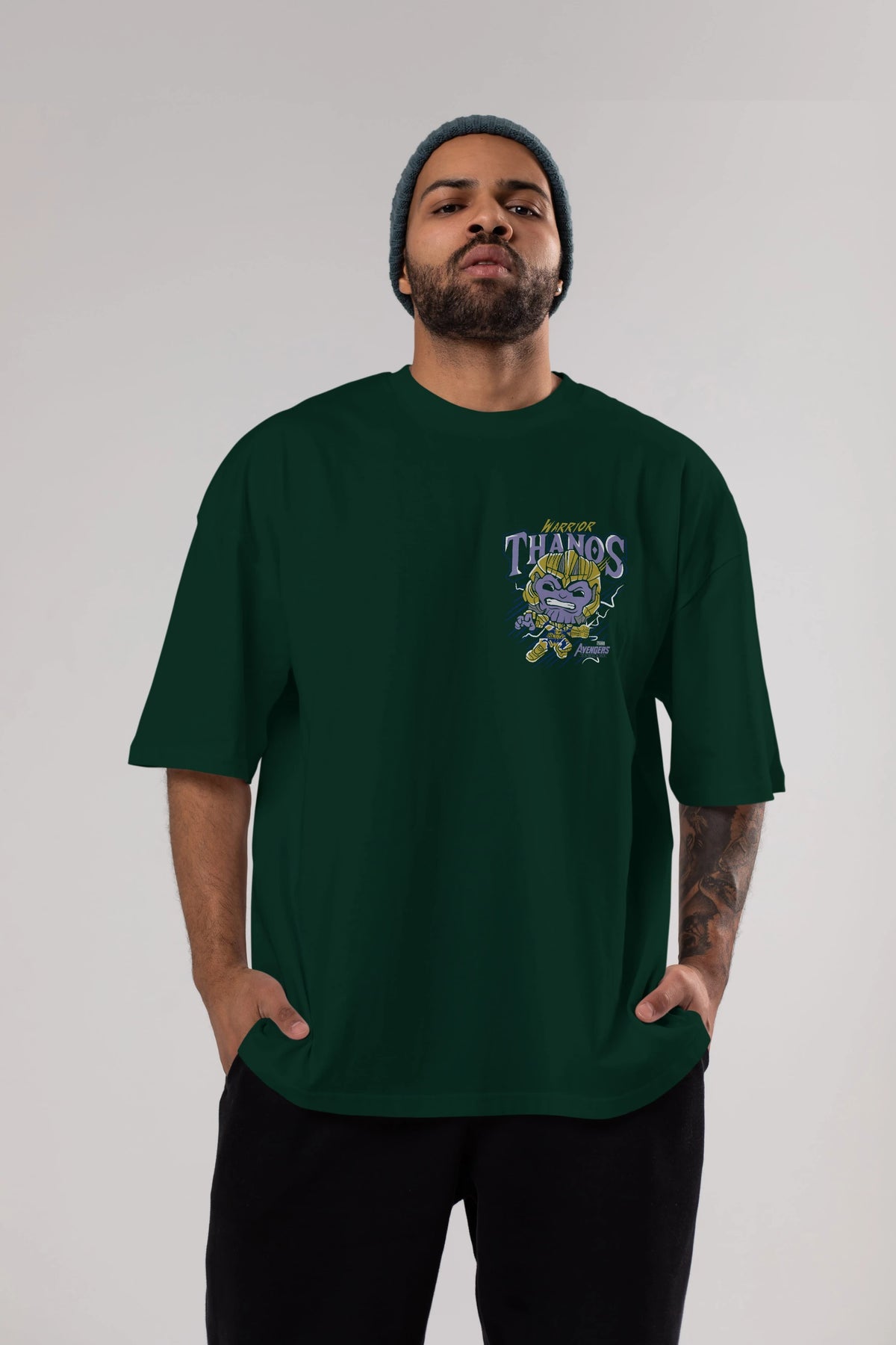 Thanos (2) Ön Sol Baskılı Oversize t-shirt Erkek Kadın Unisex %100 Pamuk Bisiklet Yaka tişort