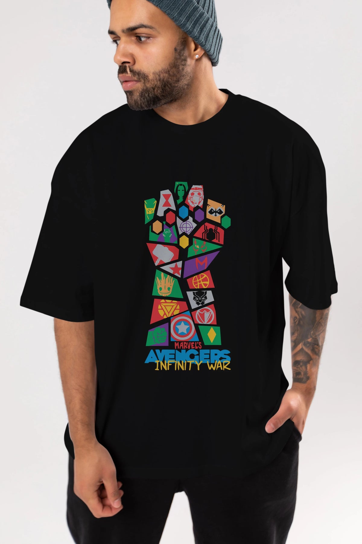 The Avengers Ön Baskılı Oversize t-shirt Erkek Kadın Unisex %100 Pamuk Bisiklet Yaka tişort