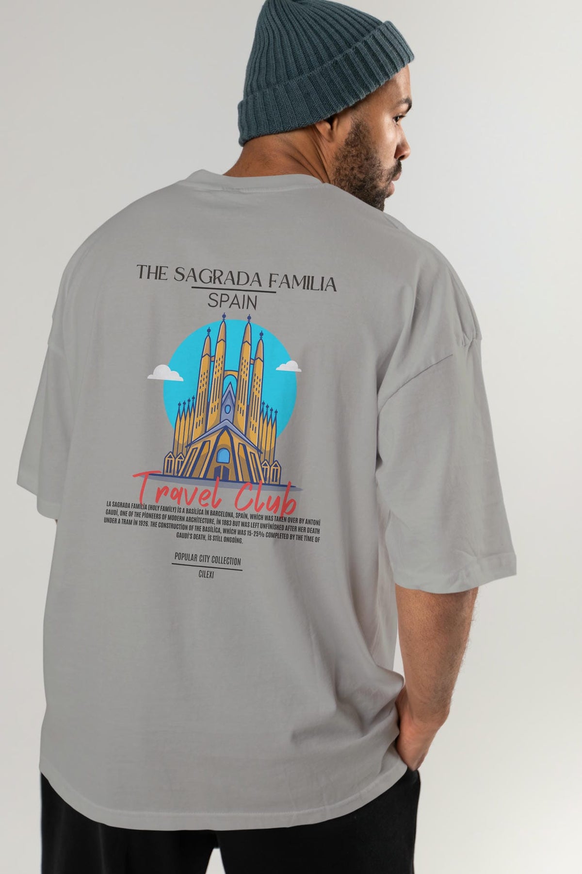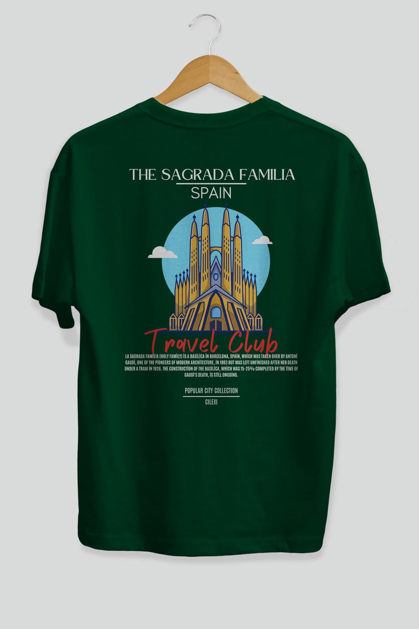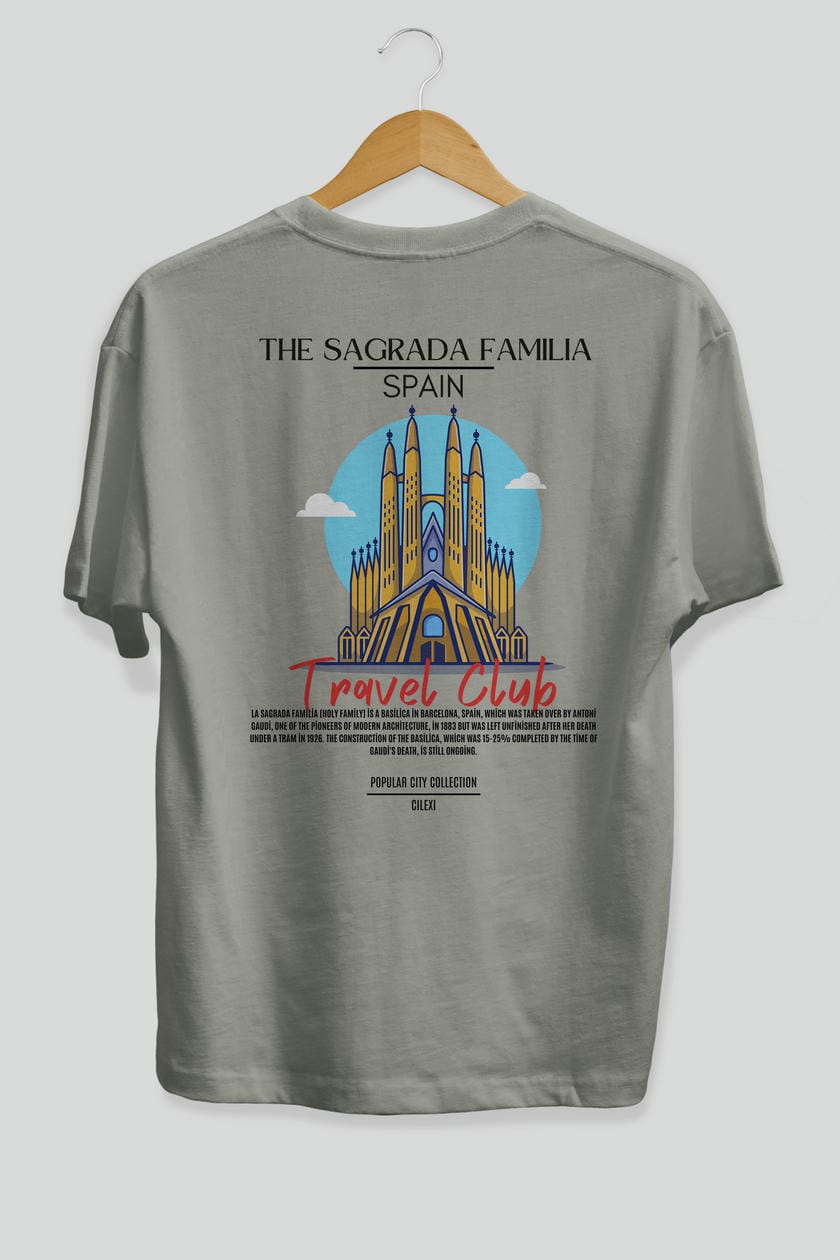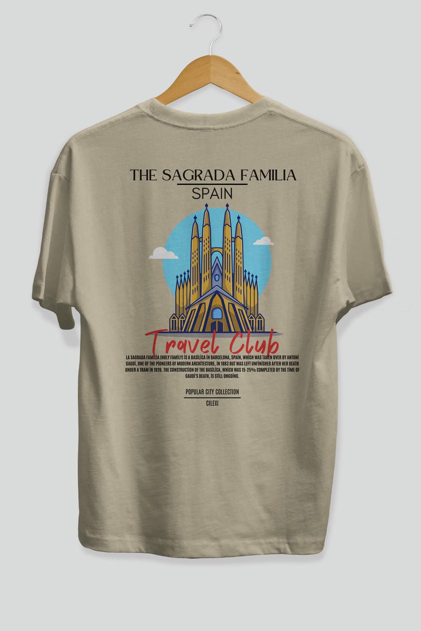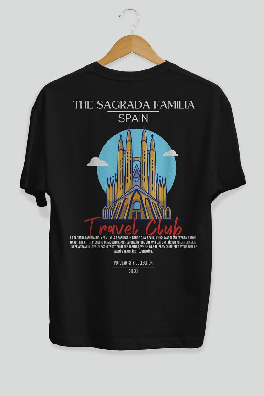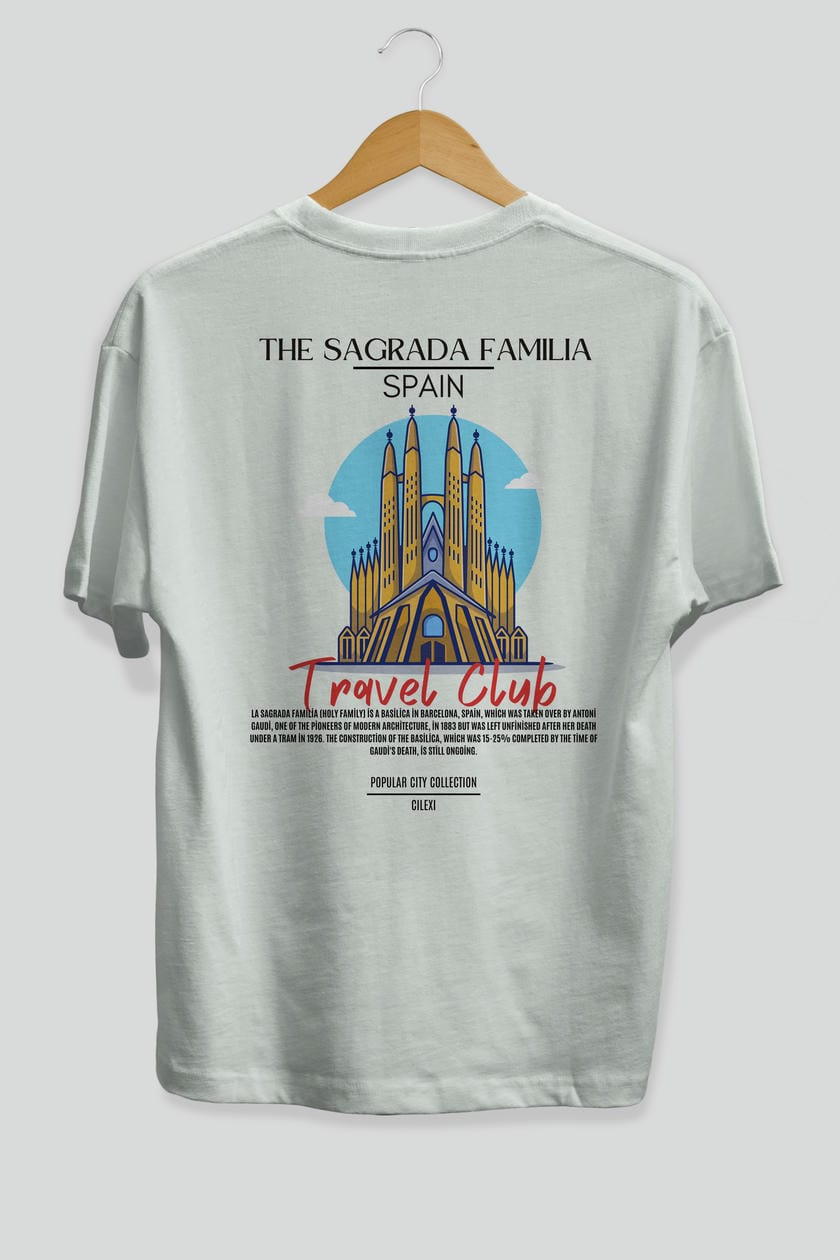 The Sagrada Familia Spain Arka Baskılı Oversize t-shirt Erkek Kadın Pamuk Bisiklet Yaka tişort