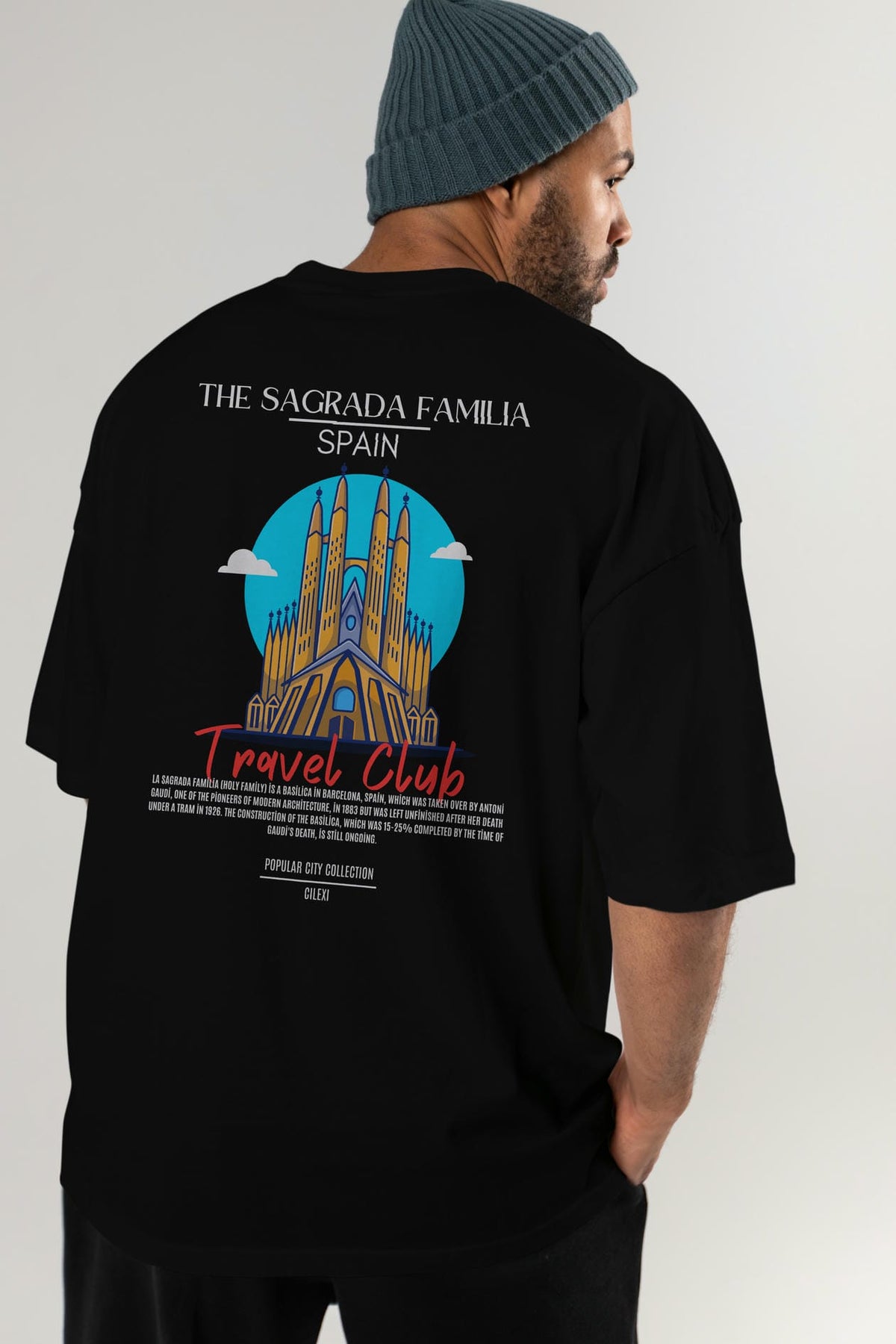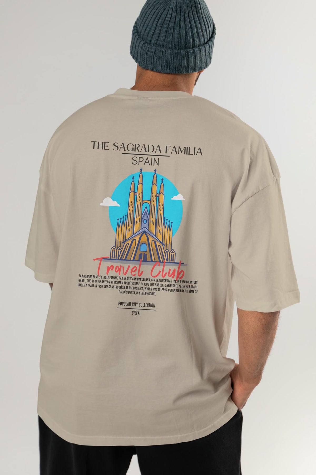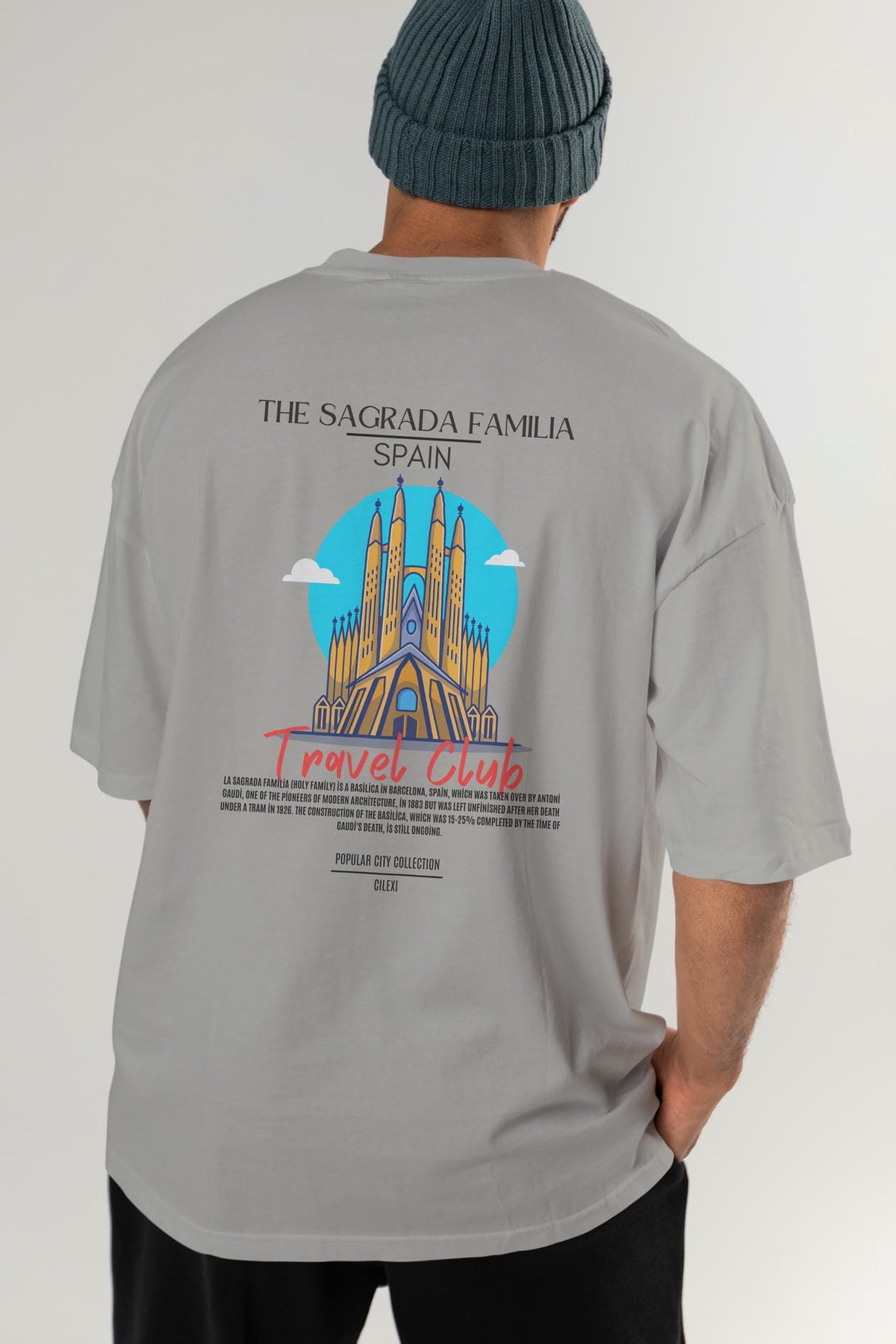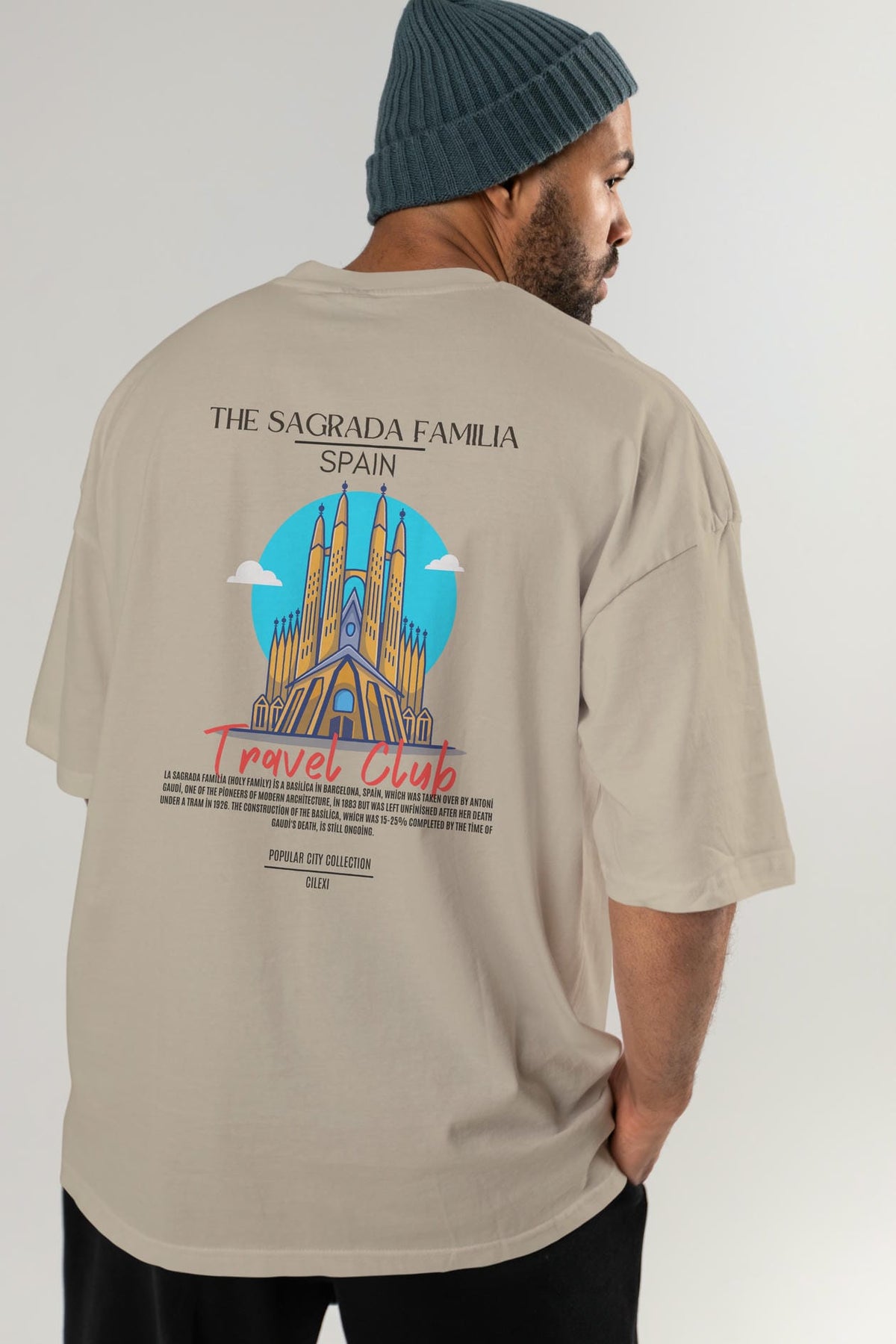 The Sagrada Familia Spain Arka Baskılı Oversize t-shirt Erkek Kadın Pamuk Bisiklet Yaka tişort