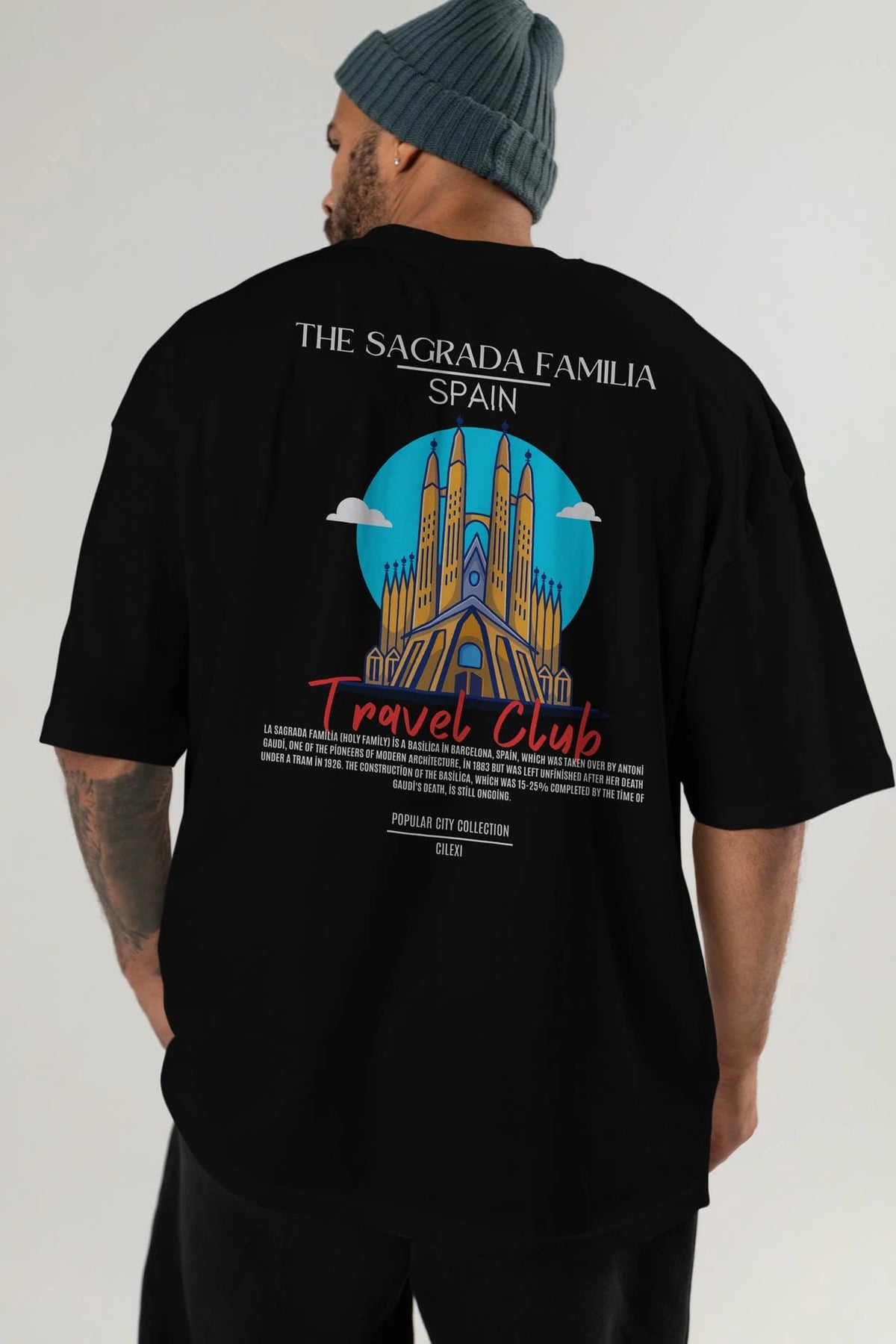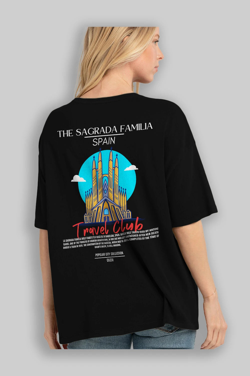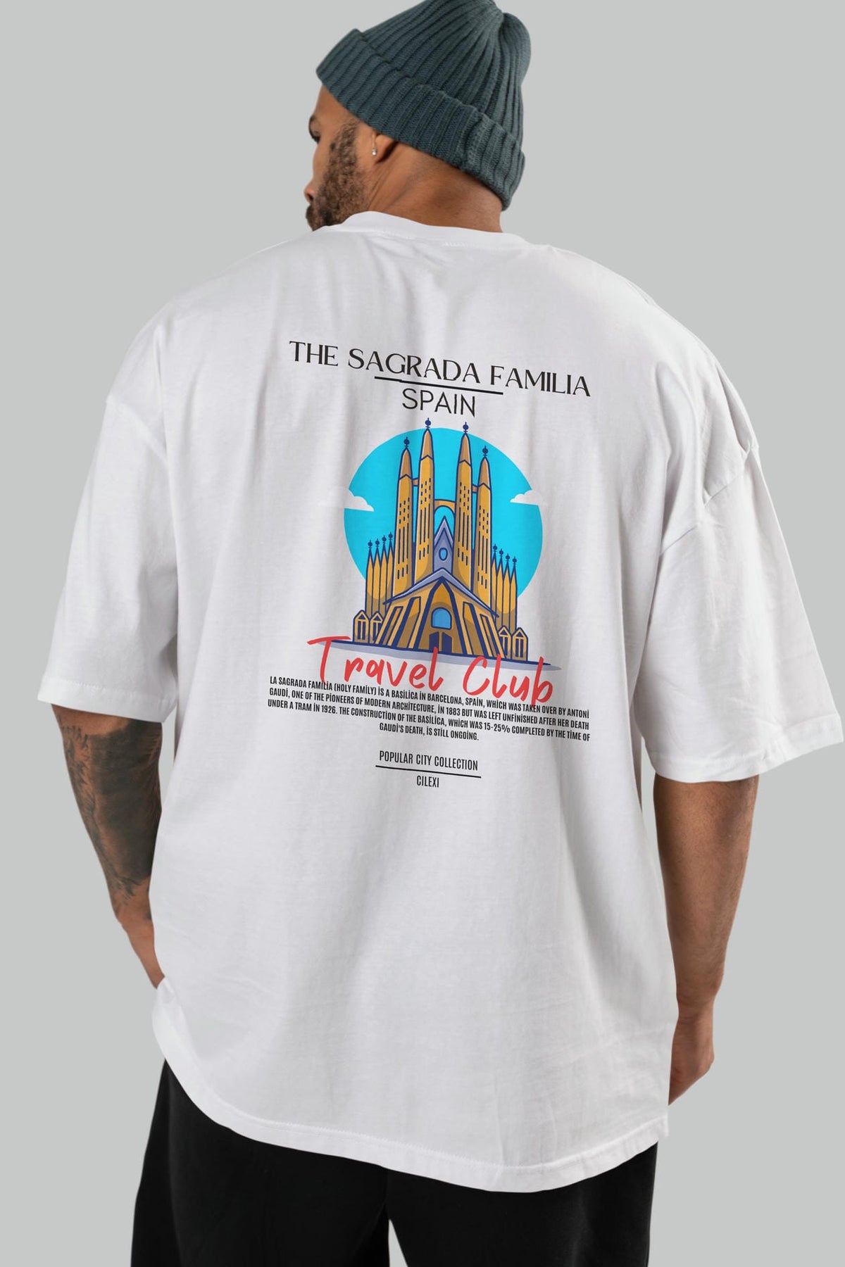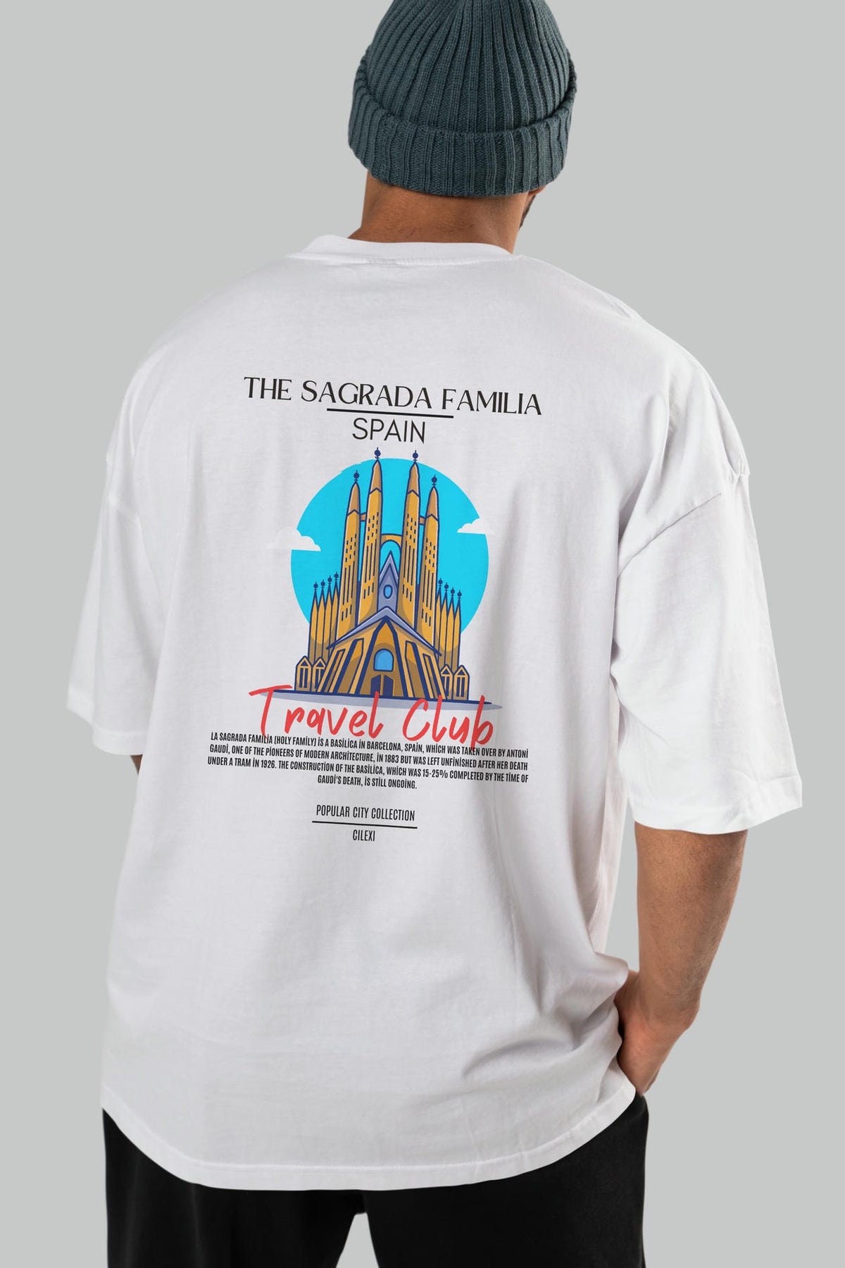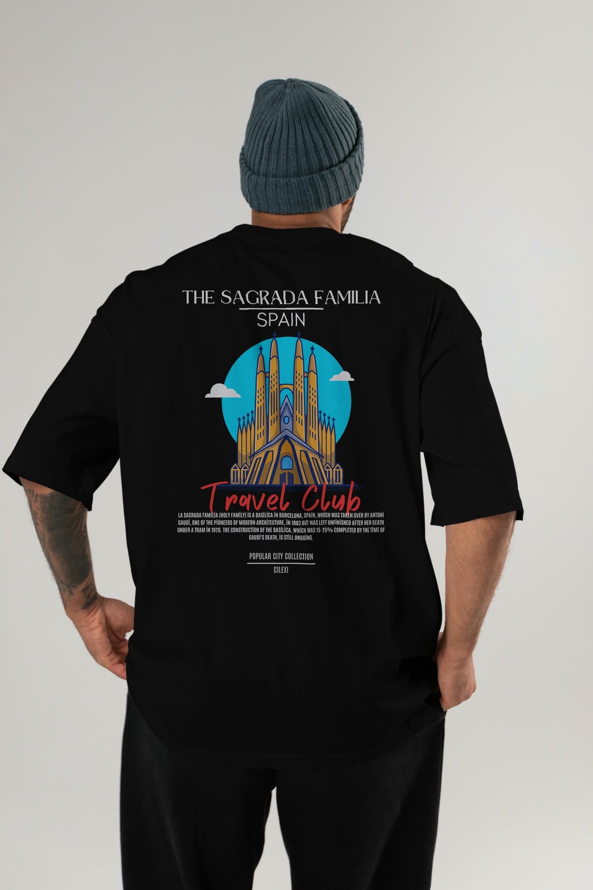 The Sagrada Familia Spain Arka Baskılı Oversize t-shirt Erkek Kadın Pamuk Bisiklet Yaka tişort
