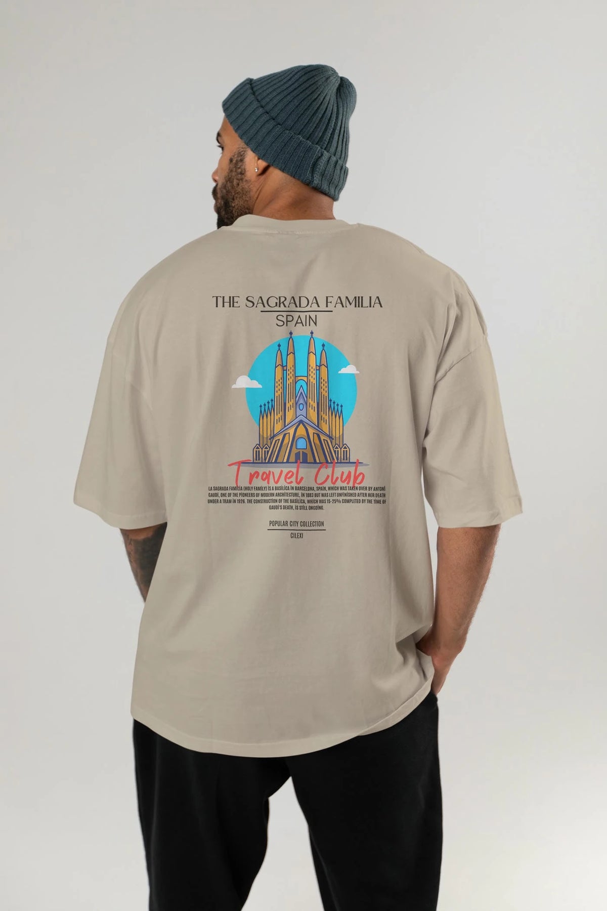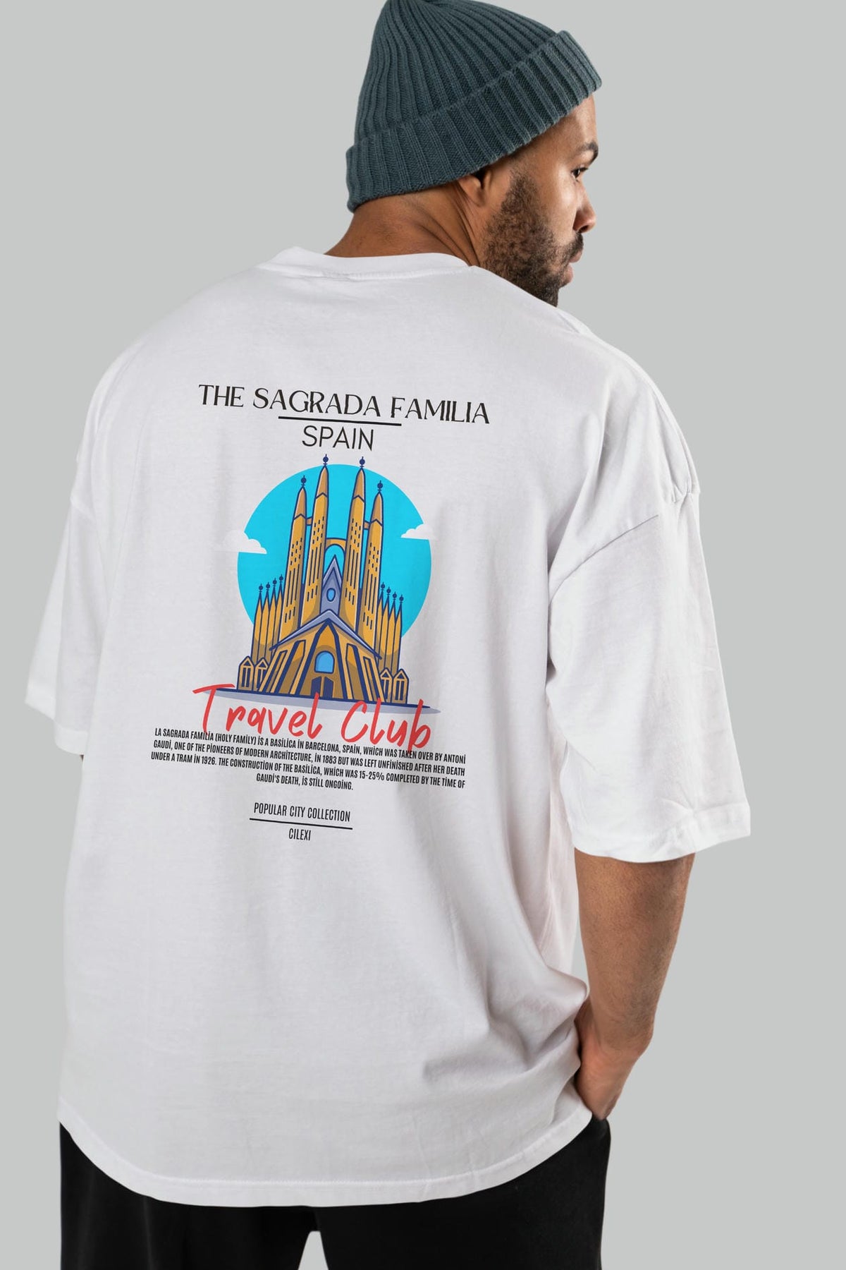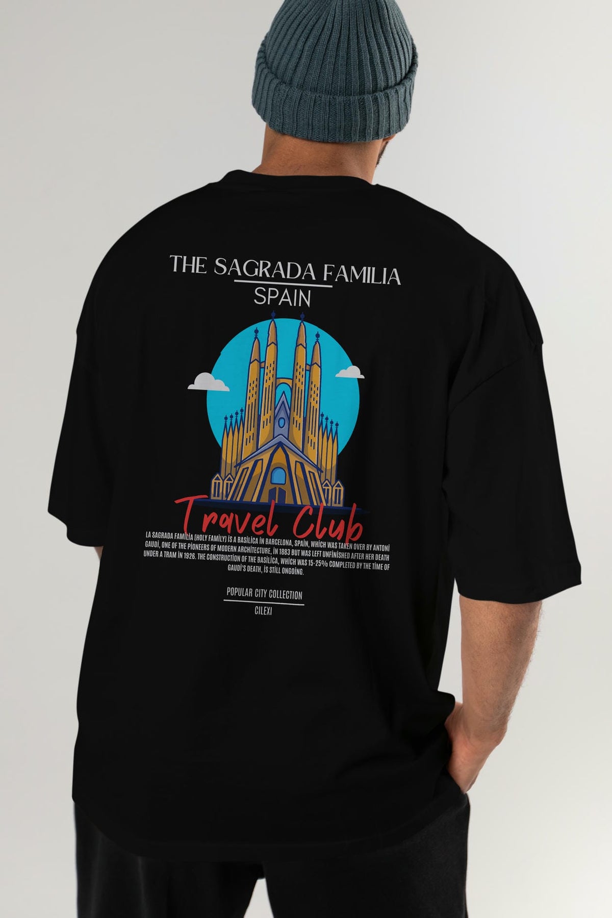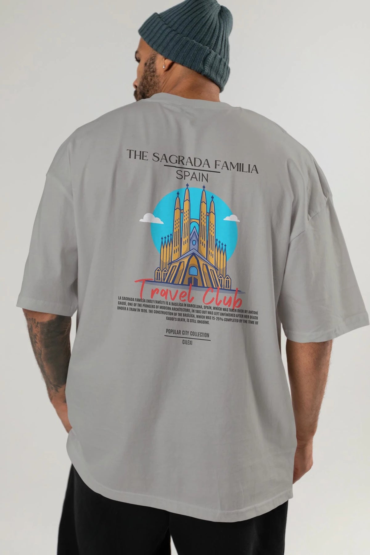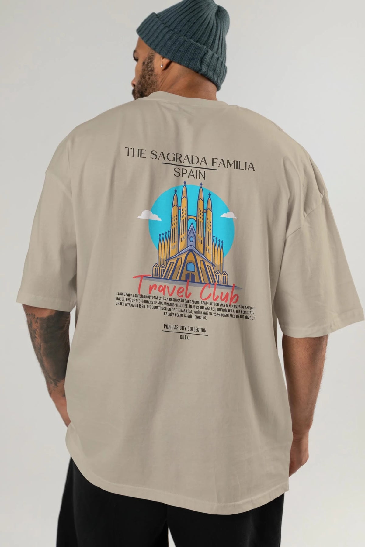 The Sagrada Familia Spain Arka Baskılı Oversize t-shirt Erkek Kadın Pamuk Bisiklet Yaka tişort