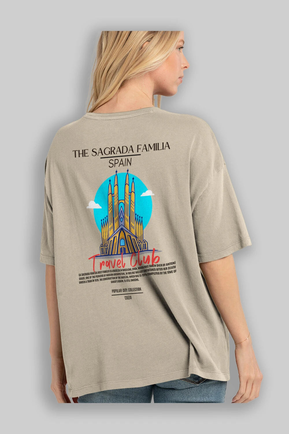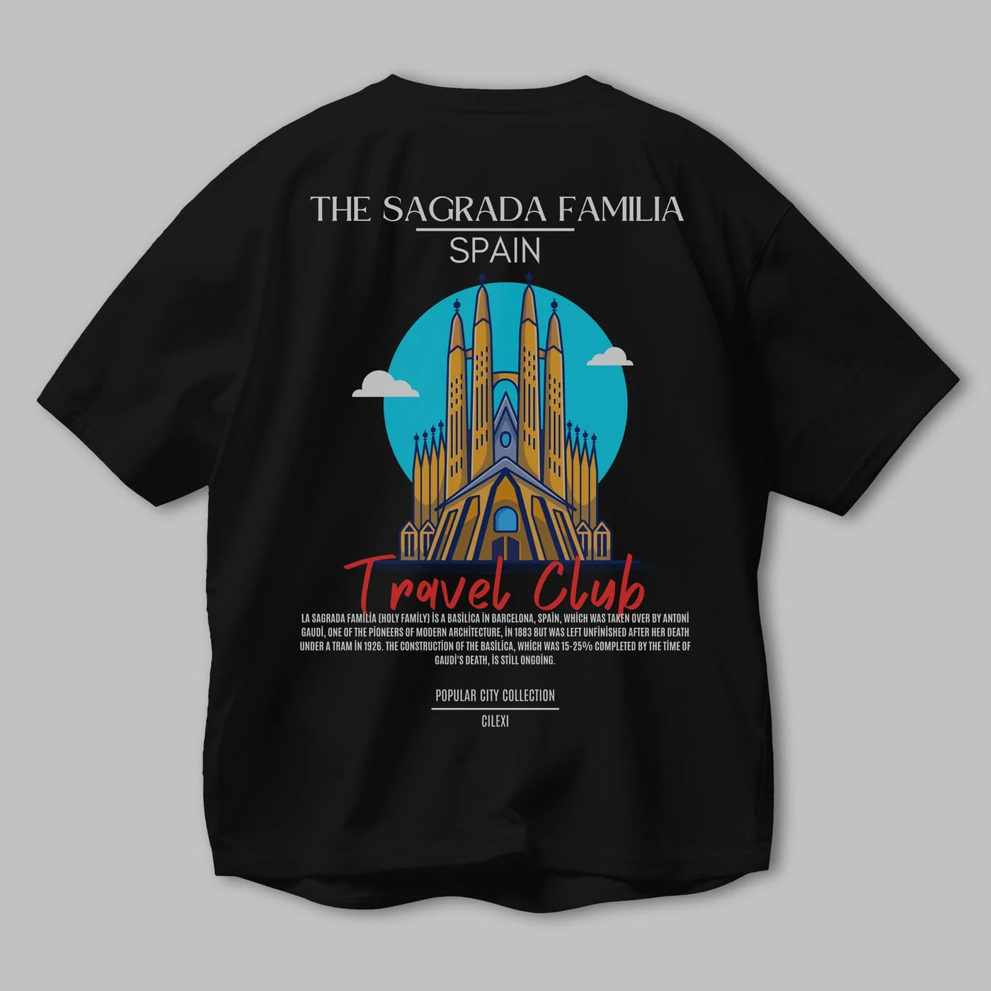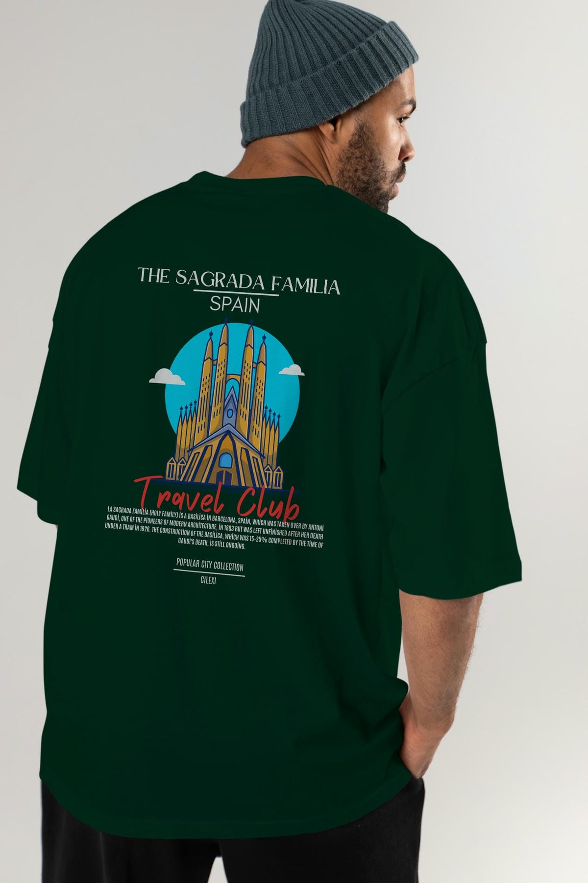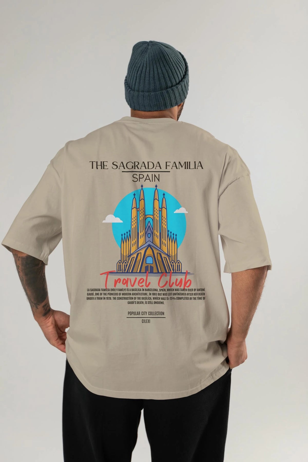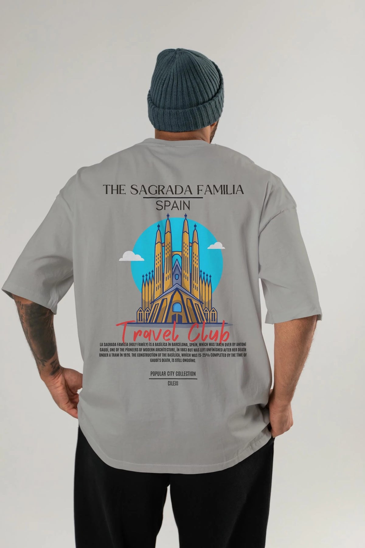 The Sagrada Familia Spain Arka Baskılı Oversize t-shirt Erkek Kadın Pamuk Bisiklet Yaka tişort