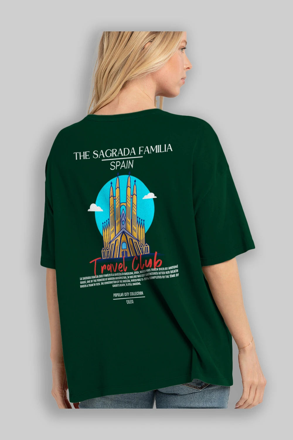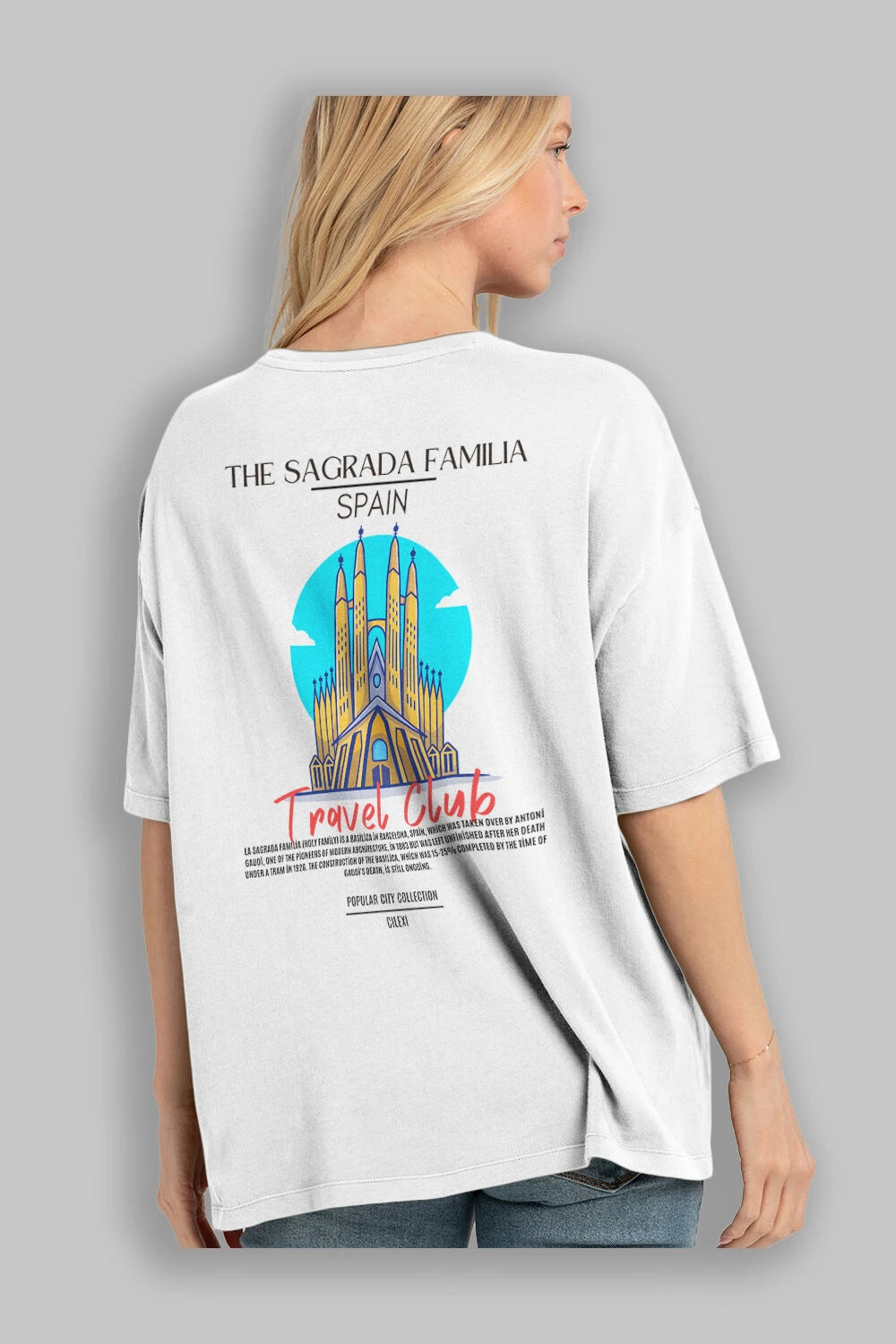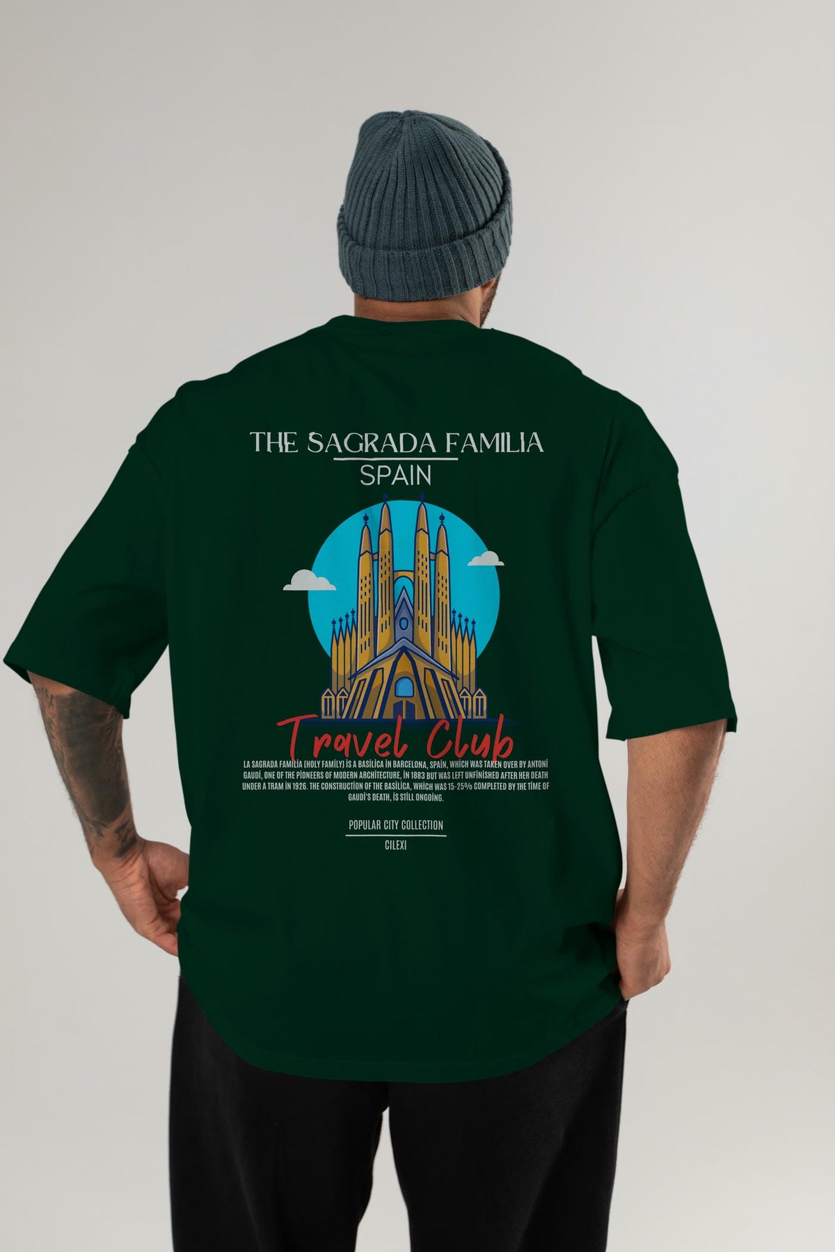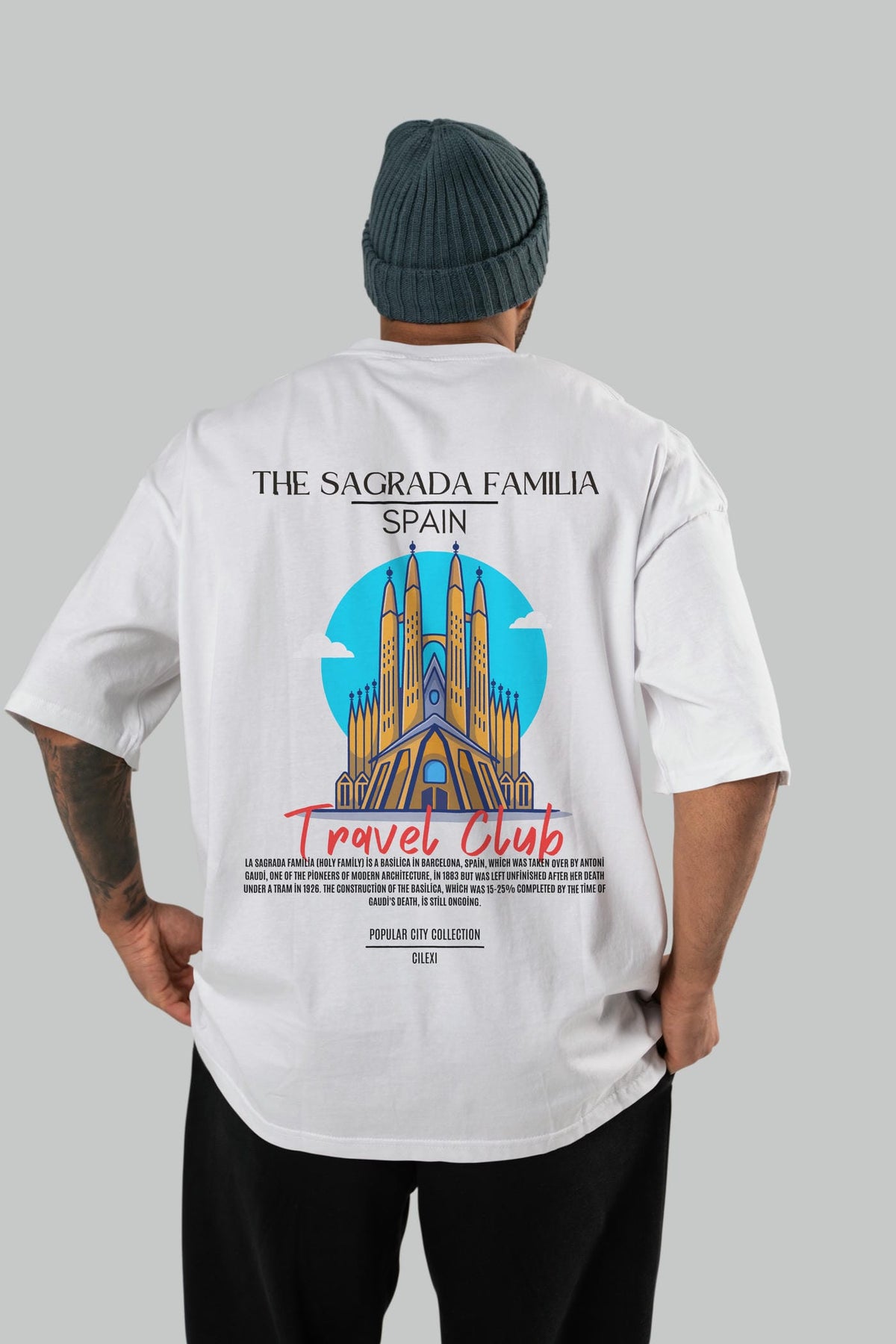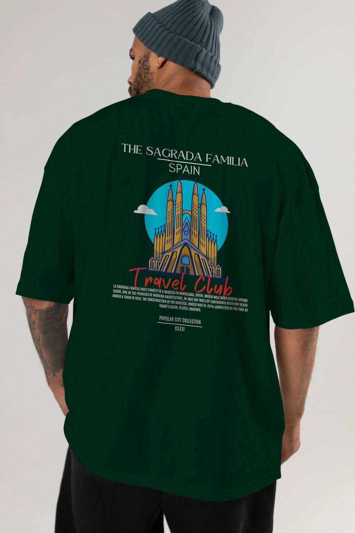 The Sagrada Familia Spain Arka Baskılı Oversize t-shirt Erkek Kadın Pamuk Bisiklet Yaka tişort