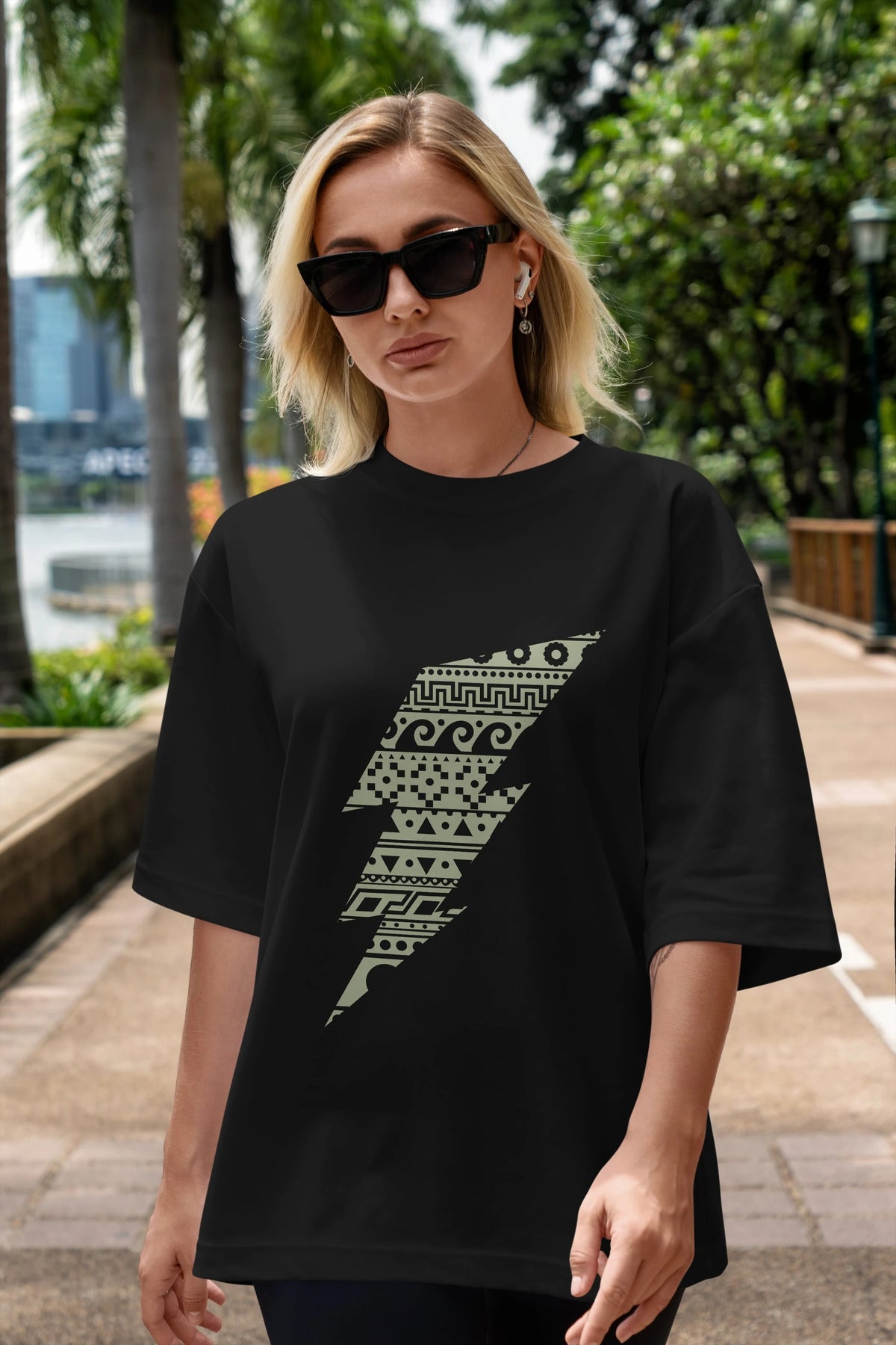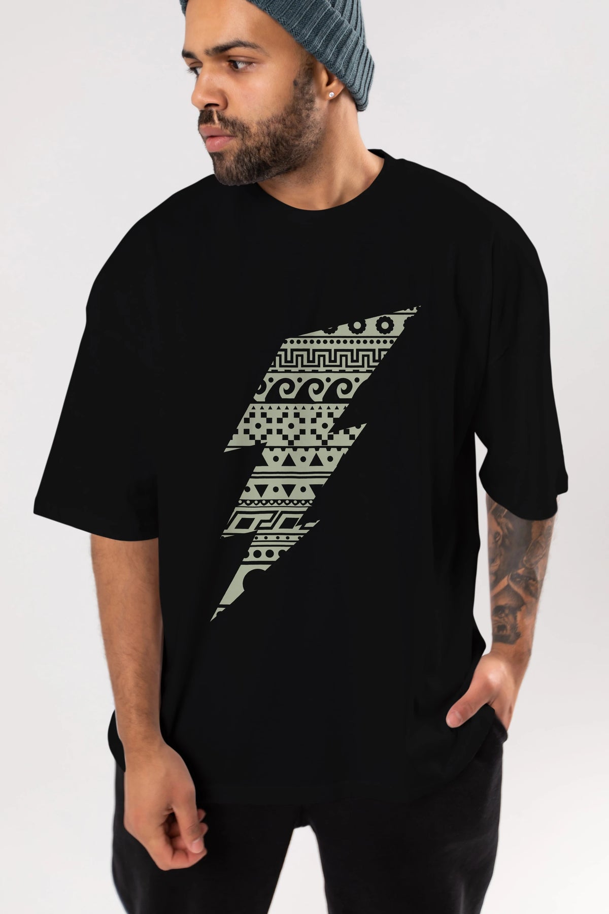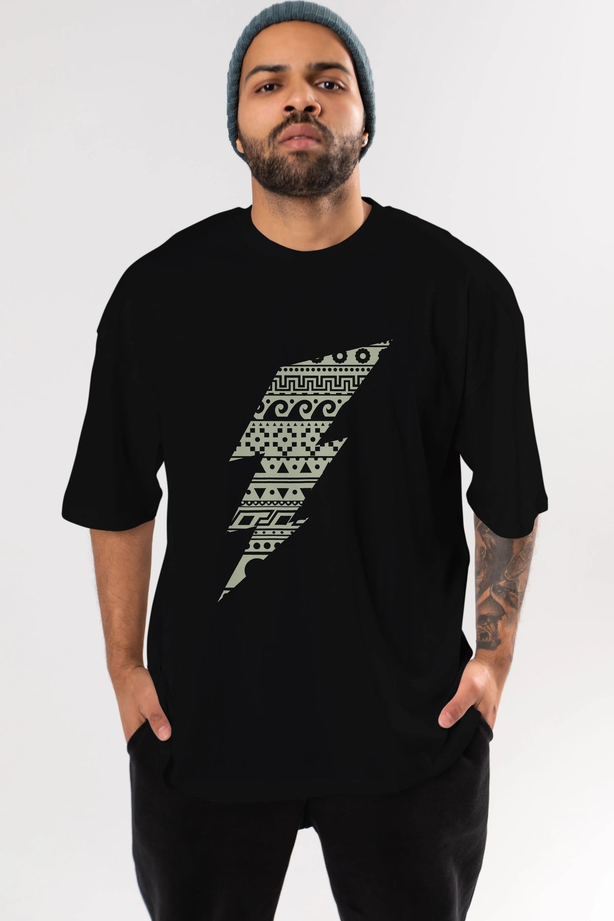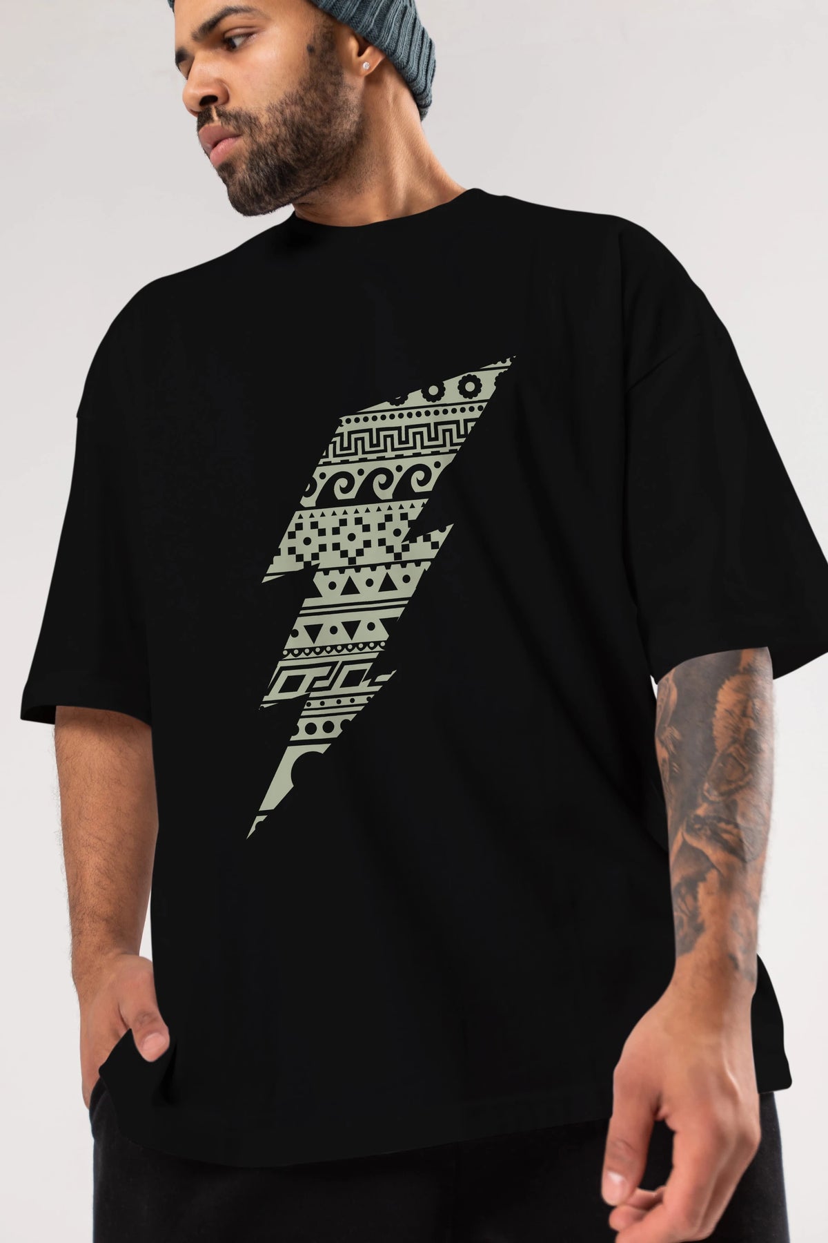 Thunderbolt Ön Baskılı Oversize t-shirt %100 pamuk Erkek Kadın Unisex