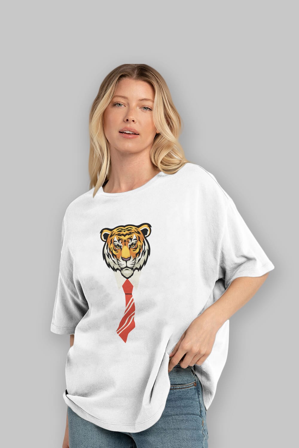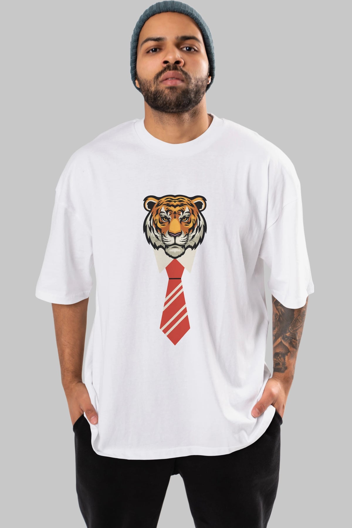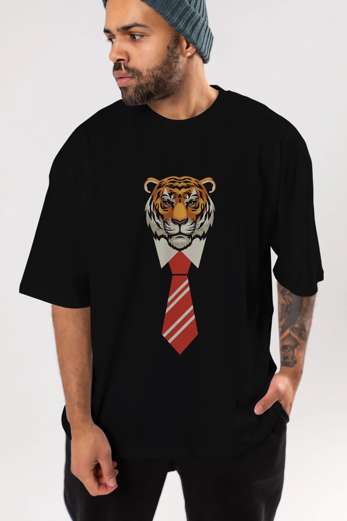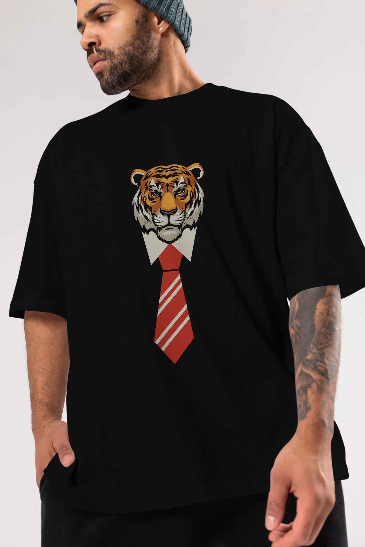 Tiger With Tie Ön Baskılı Oversize t-shirt Erkek Kadın Unisex