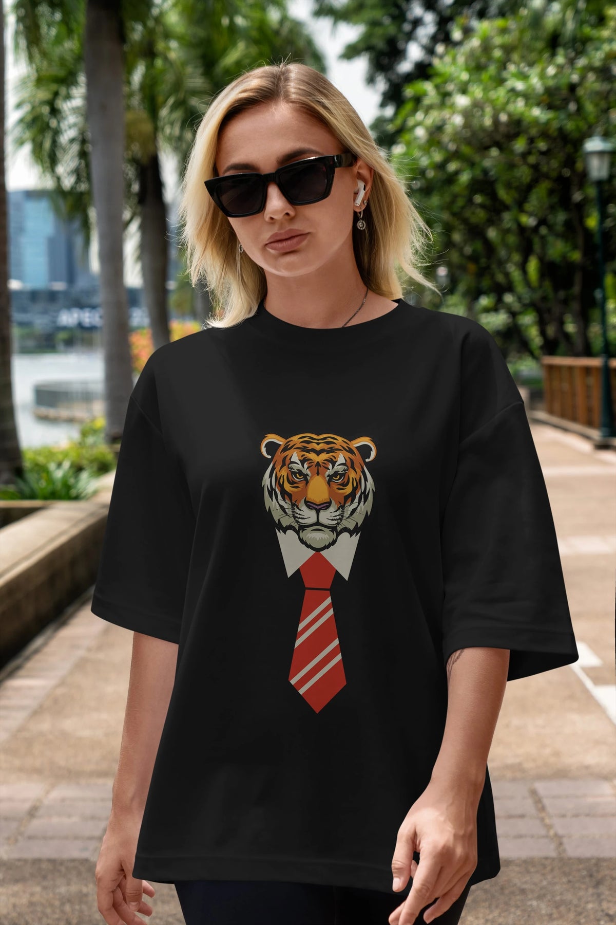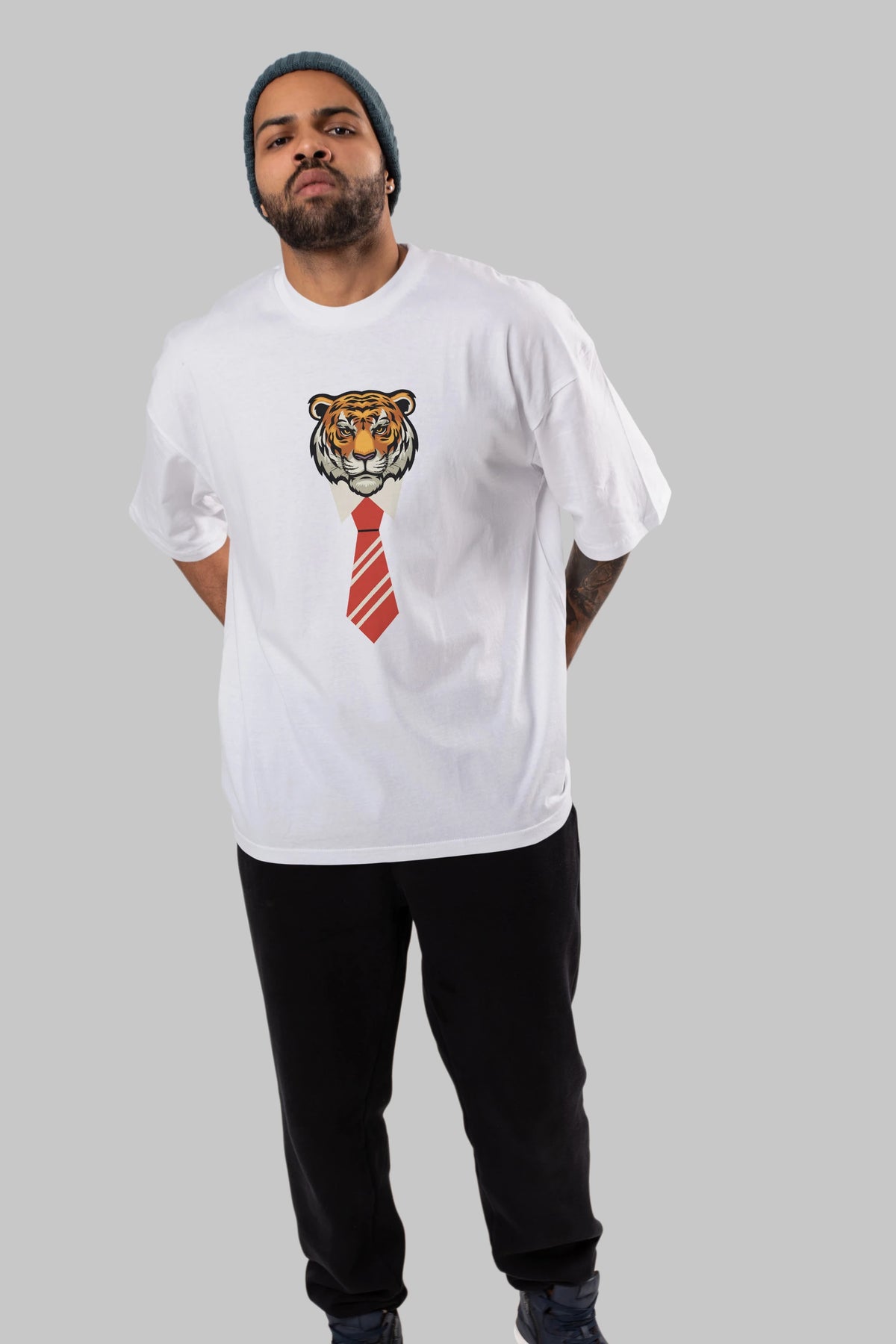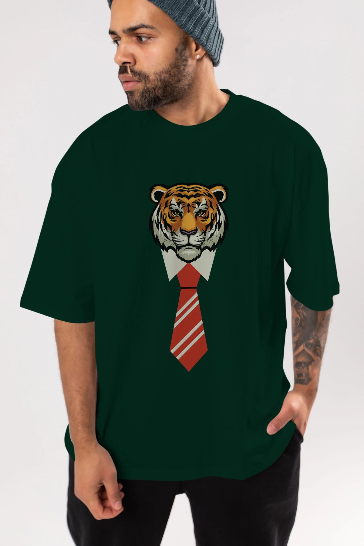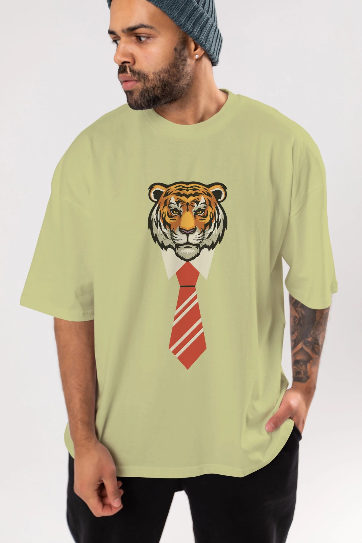 Tiger With Tie Ön Baskılı Oversize t-shirt Erkek Kadın Unisex