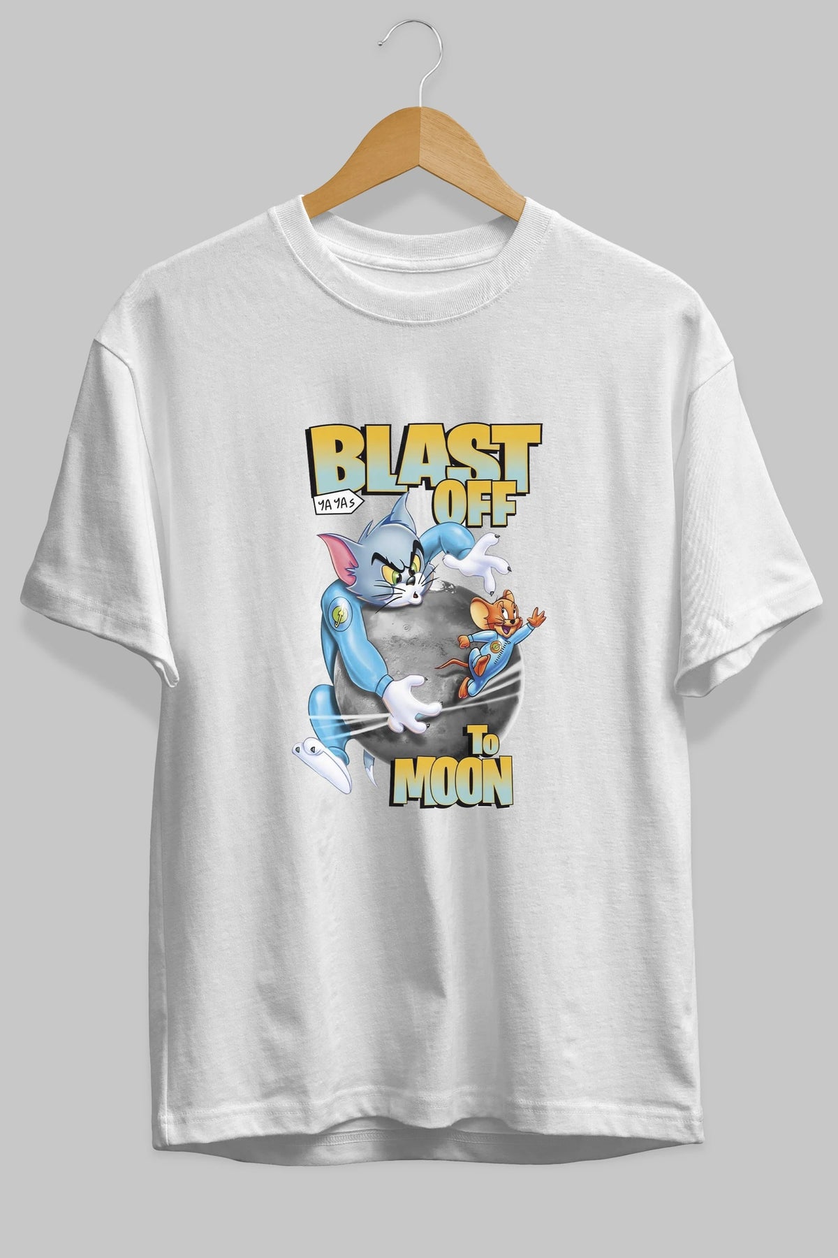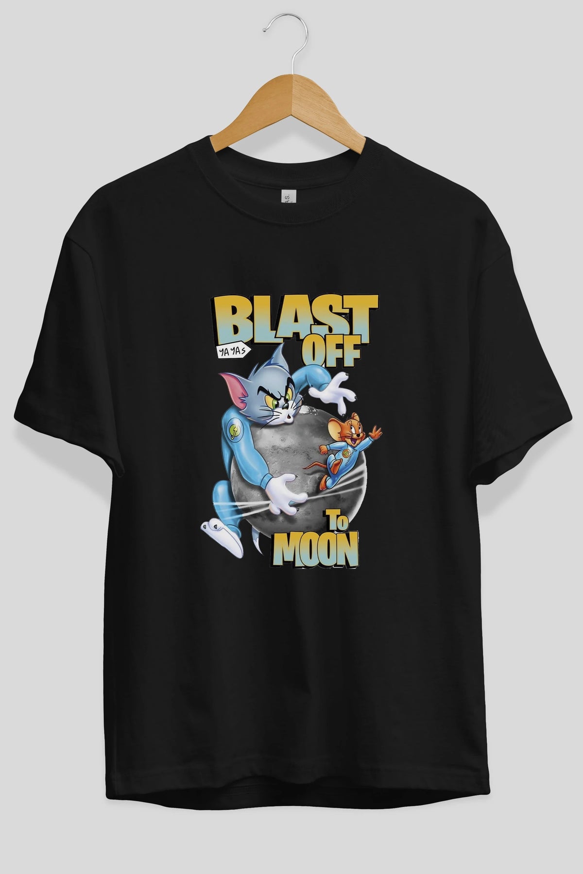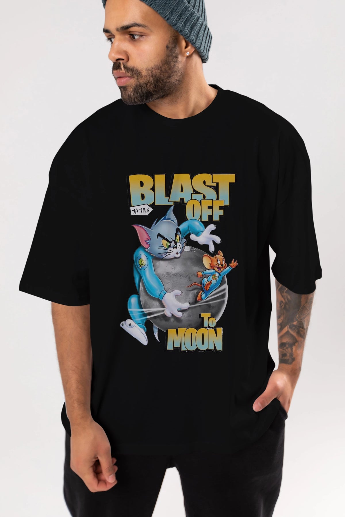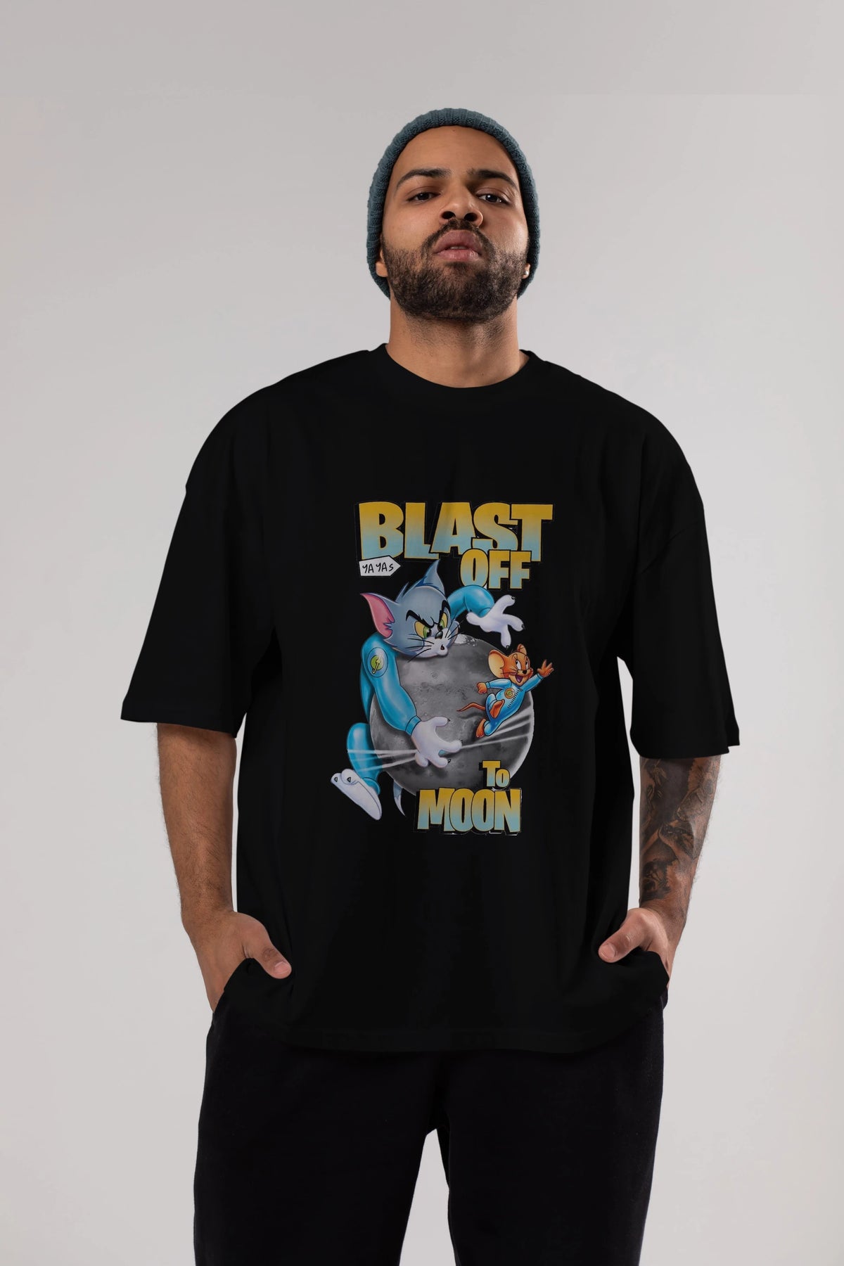 Tom ve Jerry Ön Baskılı Oversize t-shirt Erkek Kadın Unisex %100 Pamuk Bisiklet Yaka tişort