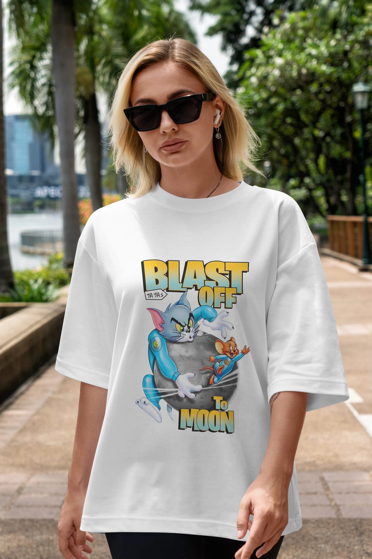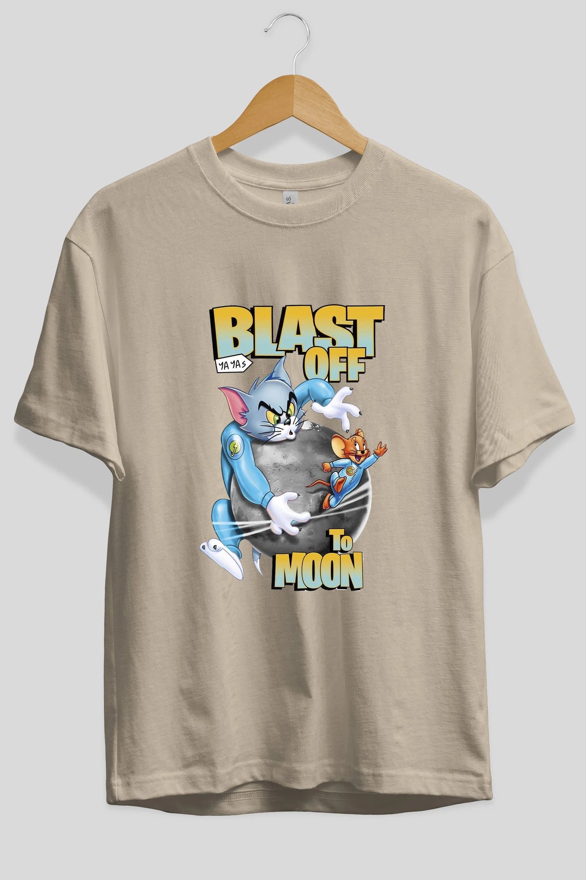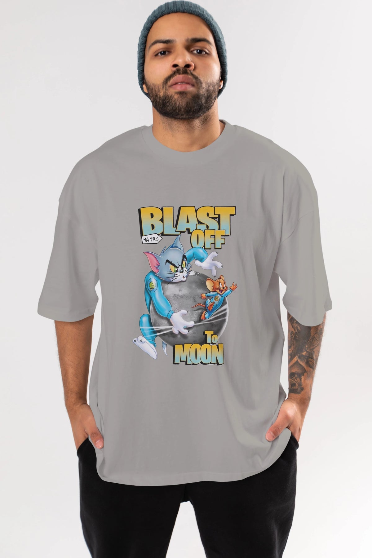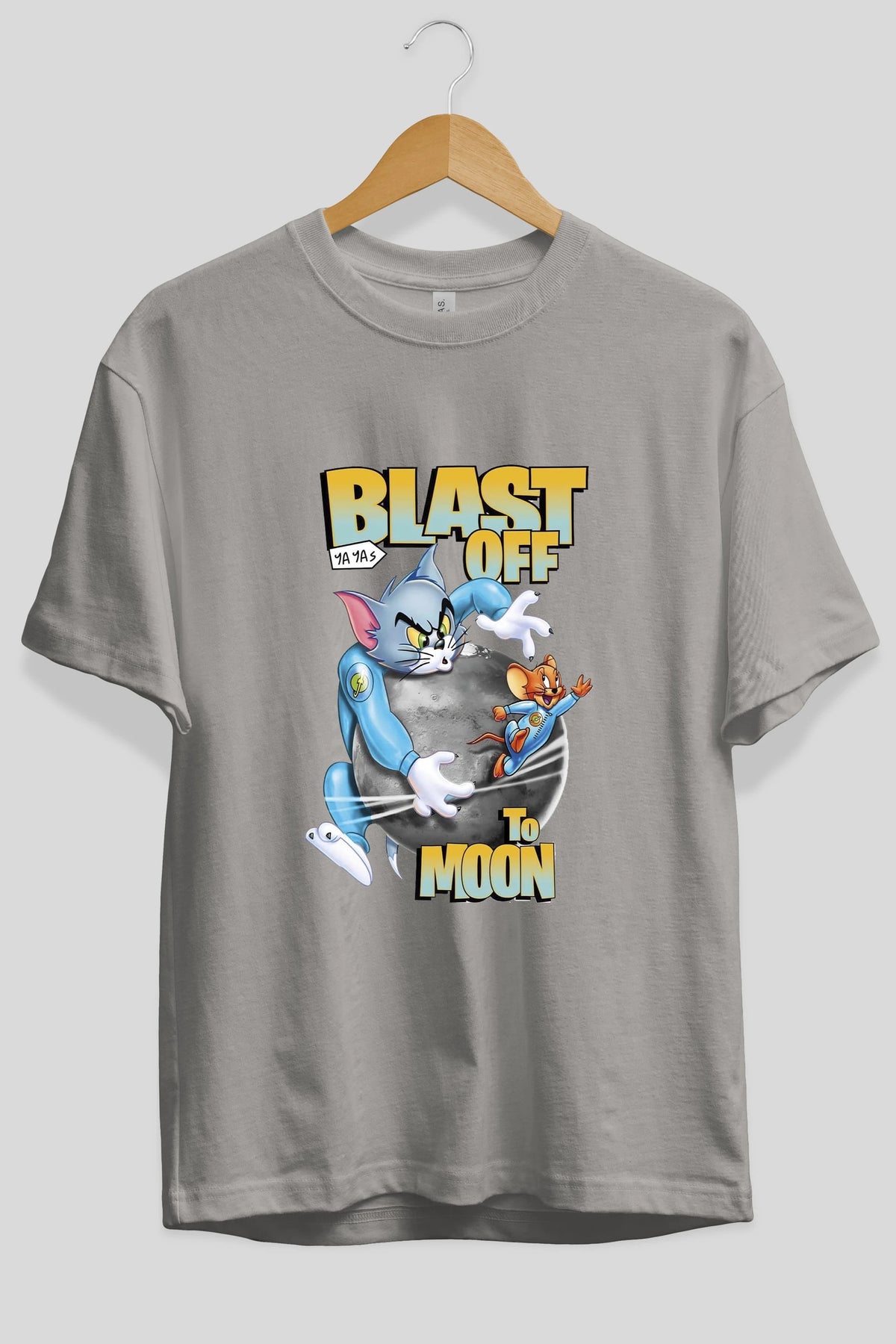 Tom ve Jerry Ön Baskılı Oversize t-shirt Erkek Kadın Unisex %100 Pamuk Bisiklet Yaka tişort