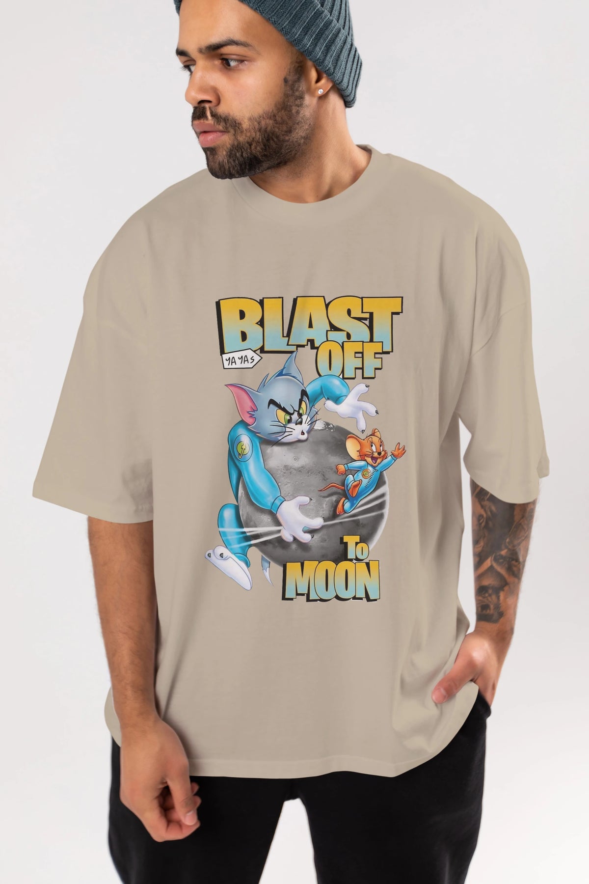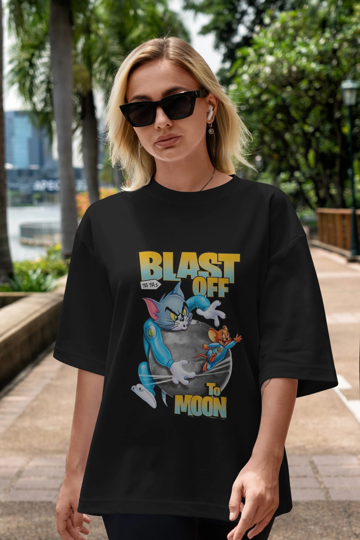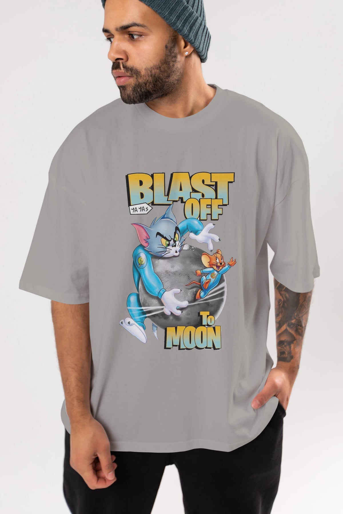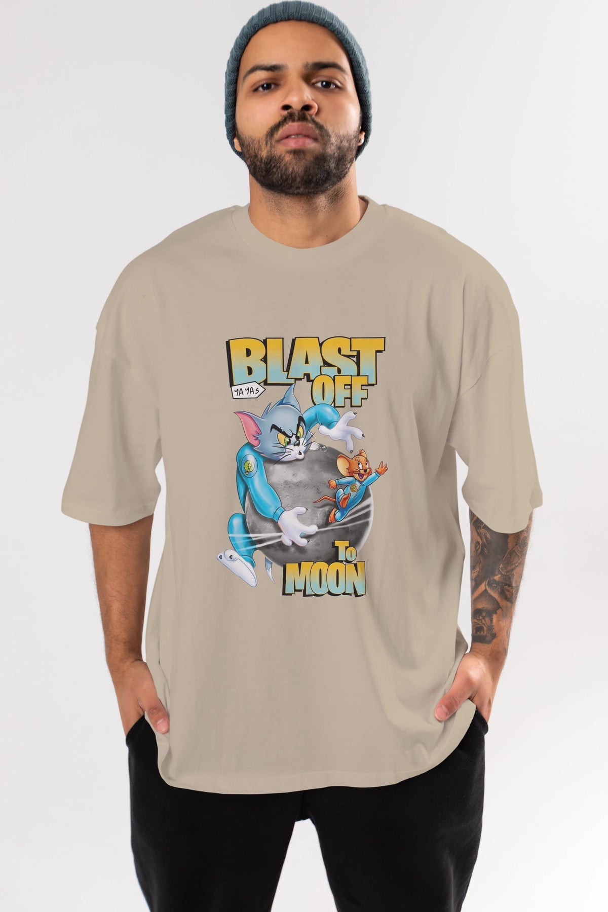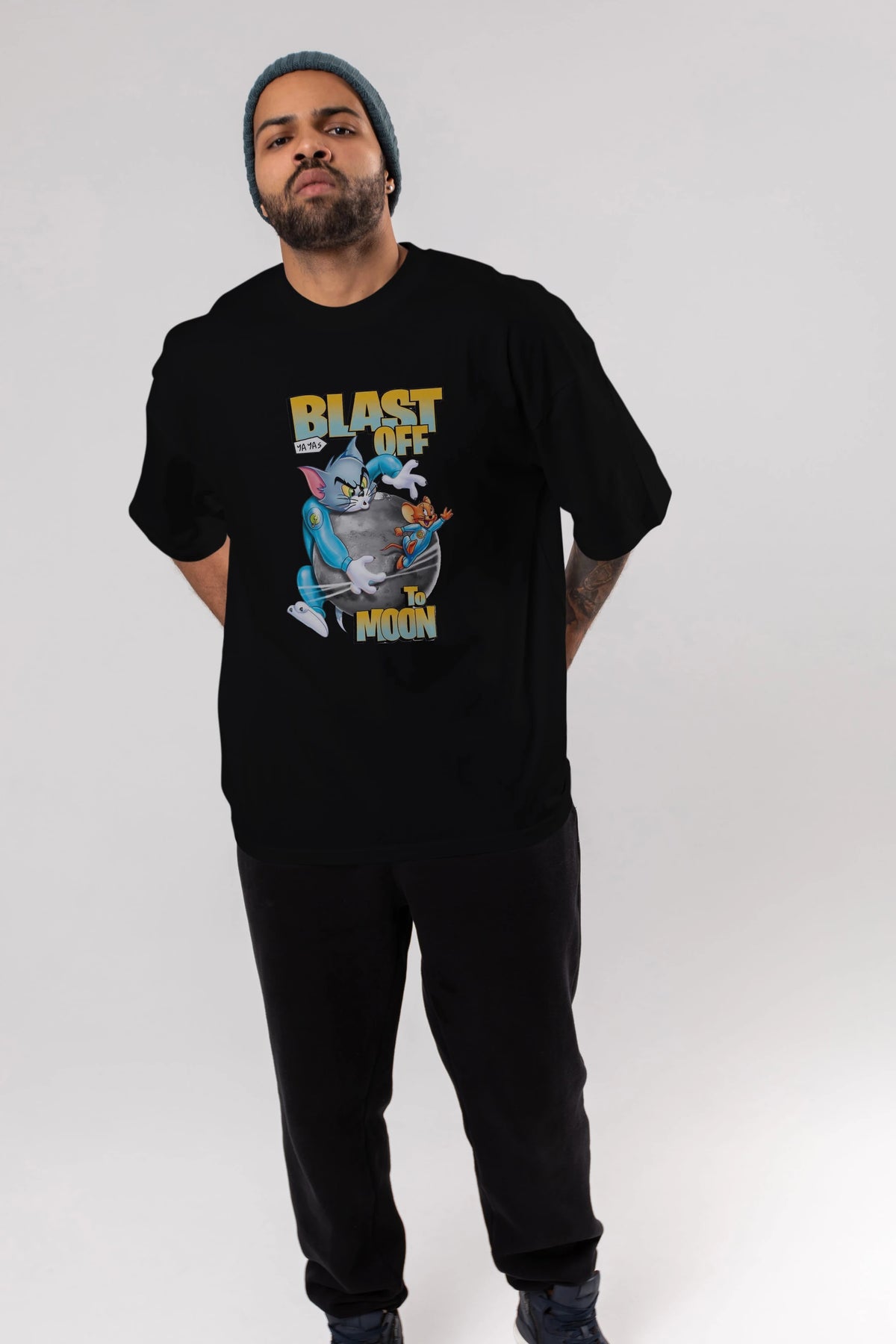 Tom ve Jerry Ön Baskılı Oversize t-shirt Erkek Kadın Unisex %100 Pamuk Bisiklet Yaka tişort