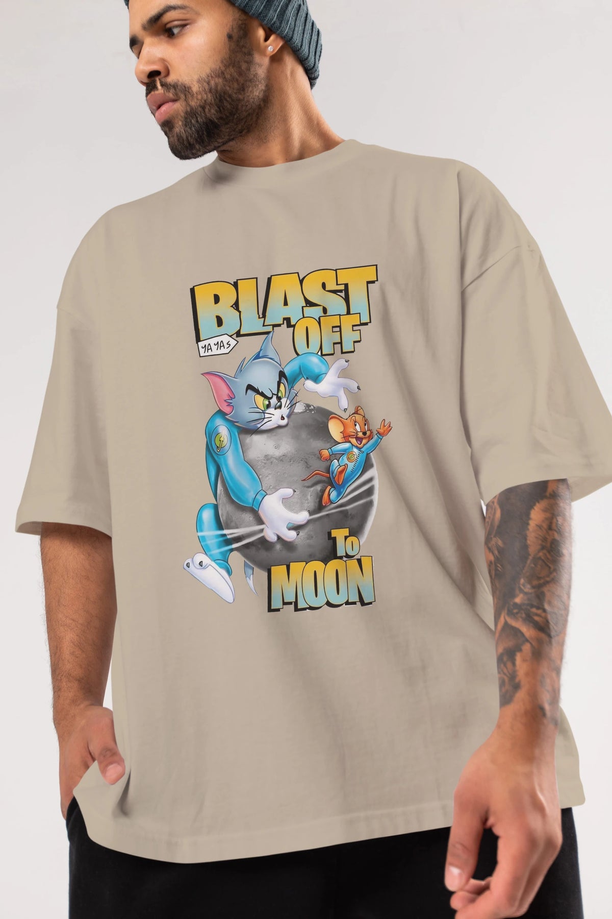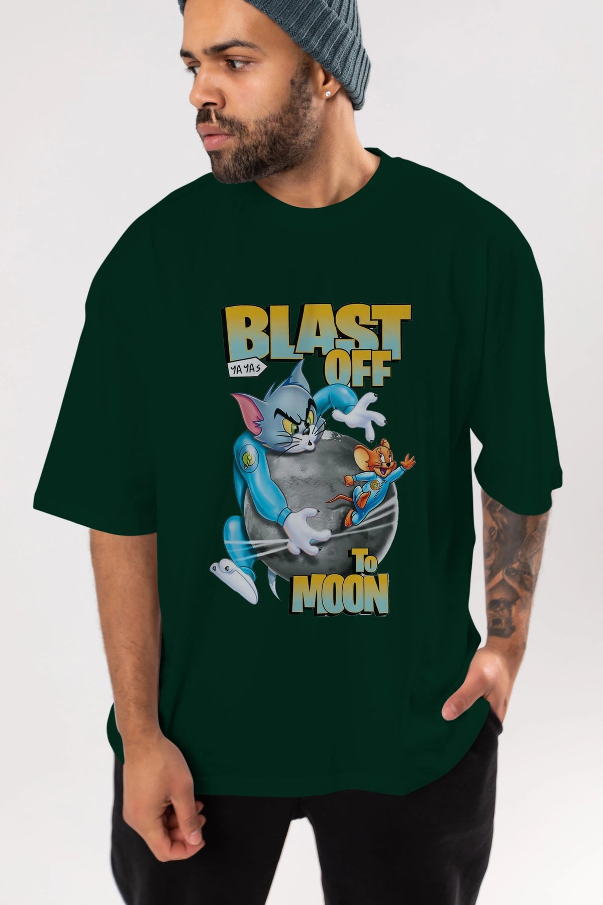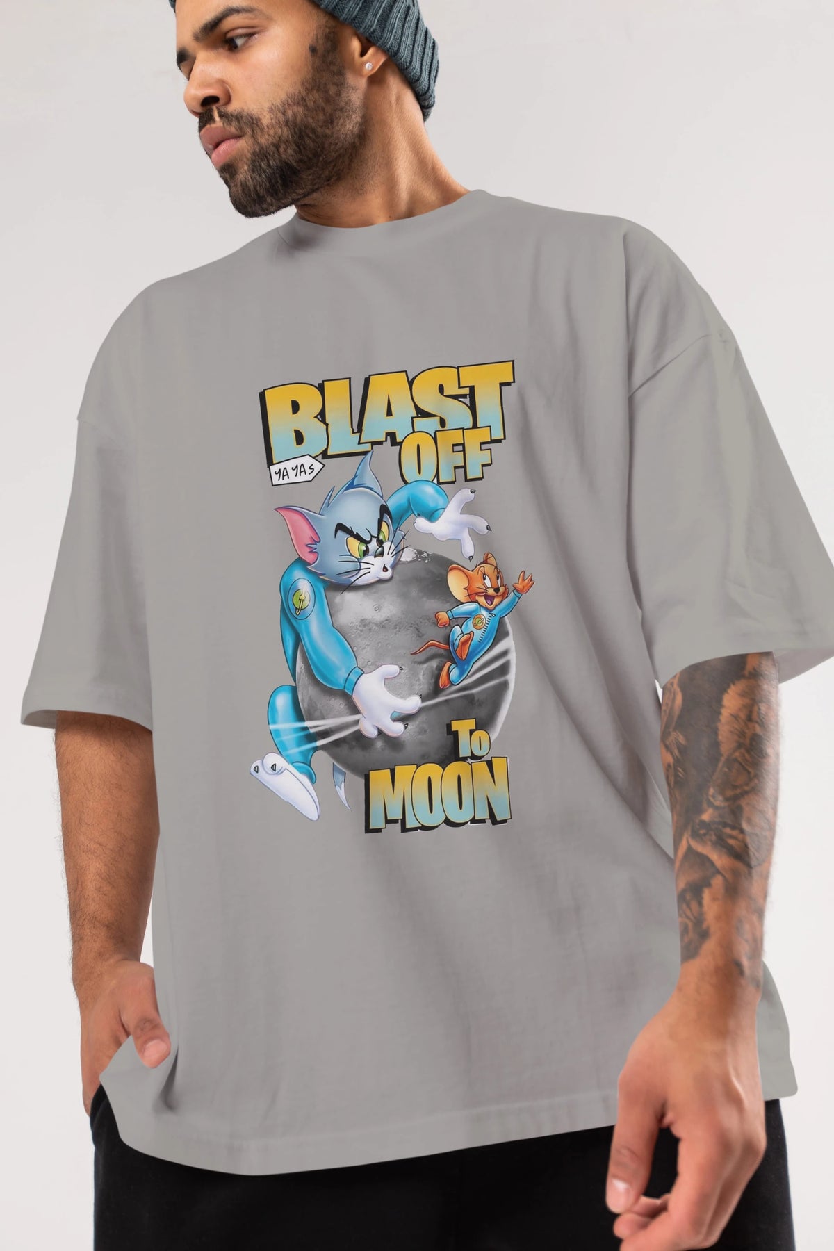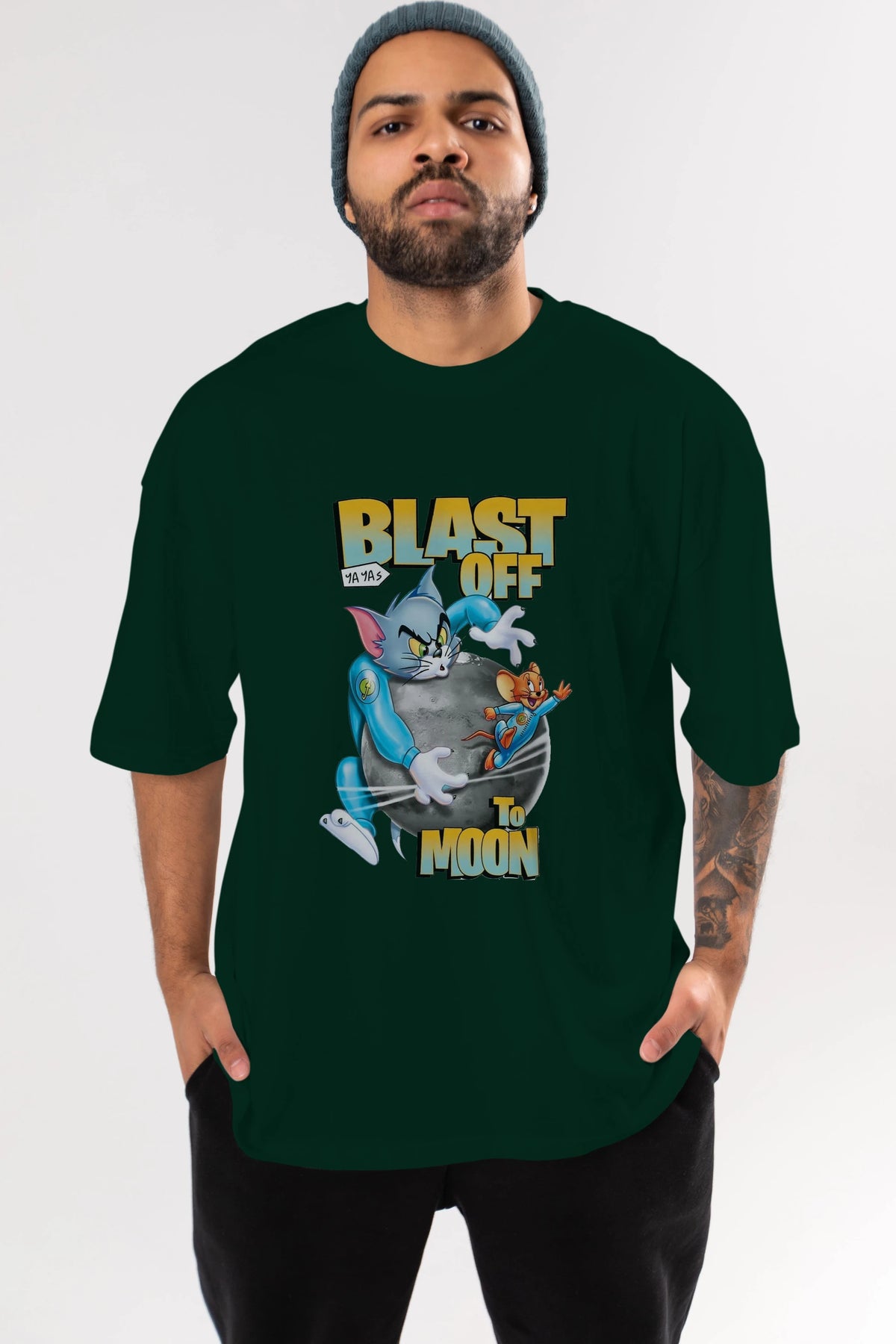 Tom ve Jerry Ön Baskılı Oversize t-shirt Erkek Kadın Unisex %100 Pamuk Bisiklet Yaka tişort
