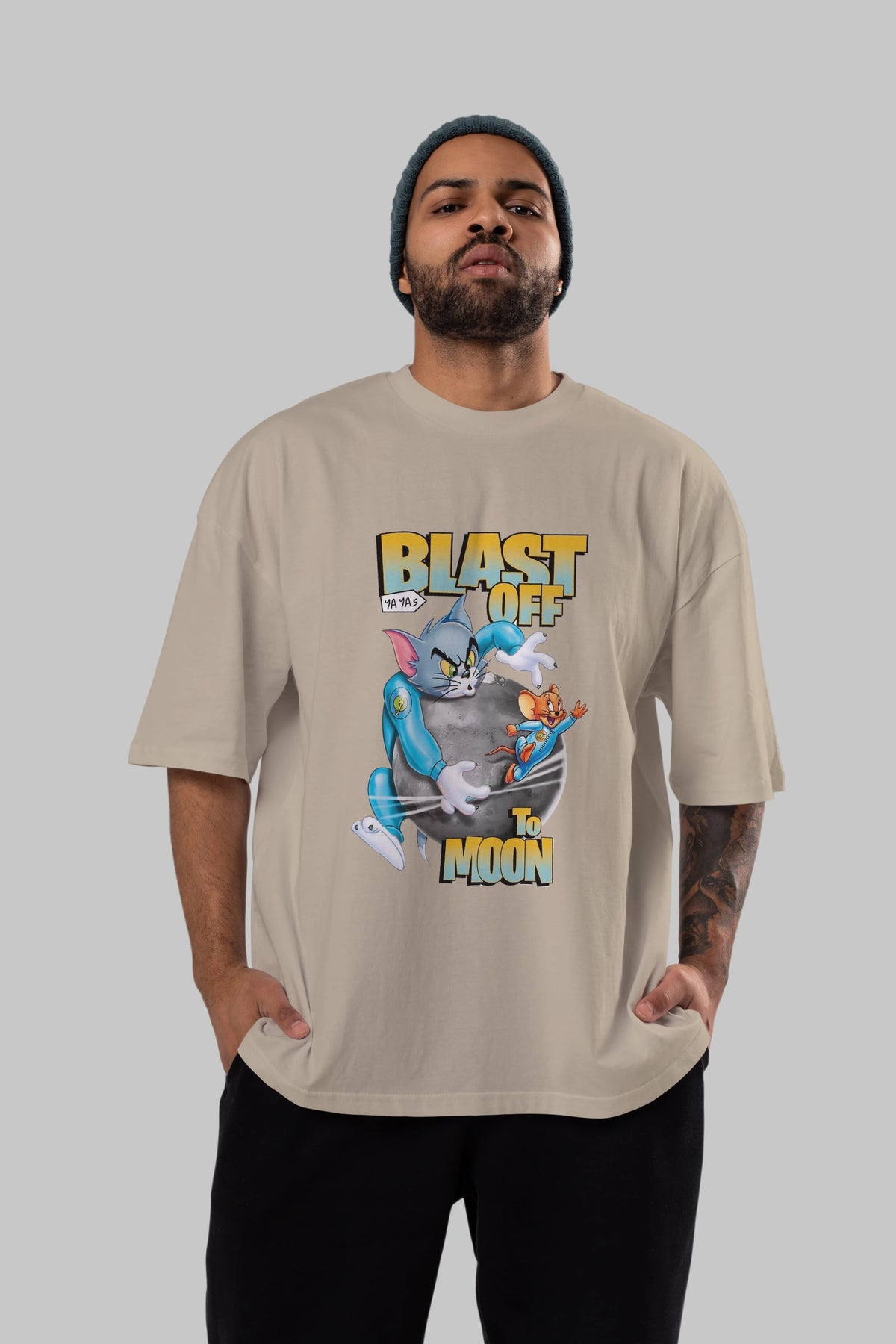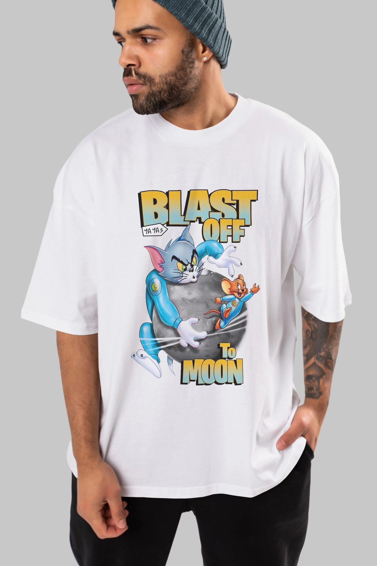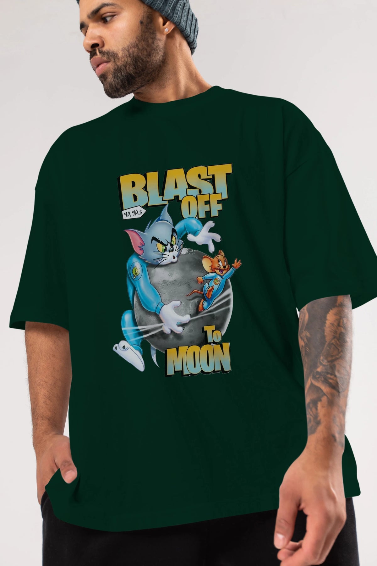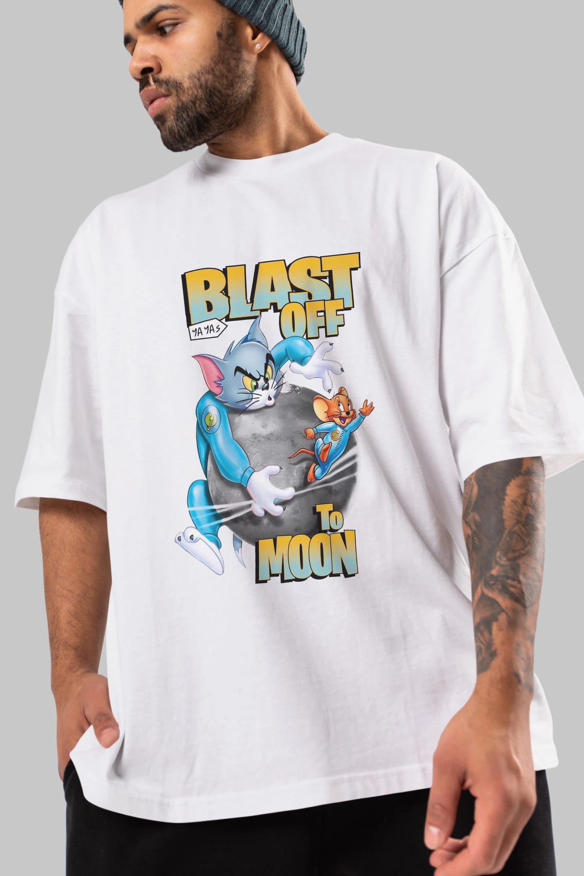 Tom ve Jerry Ön Baskılı Oversize t-shirt Erkek Kadın Unisex %100 Pamuk Bisiklet Yaka tişort