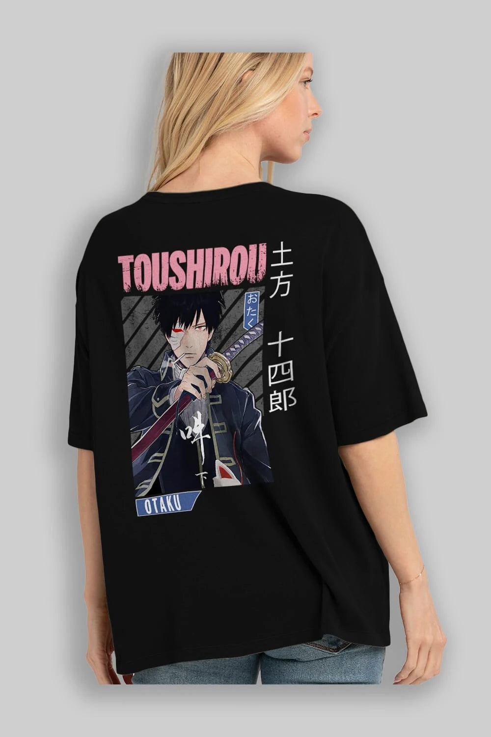 Toushirou Hijikata 1 Anime Arka Baskılı Oversize t-shirt Erkek Kadın Unisex