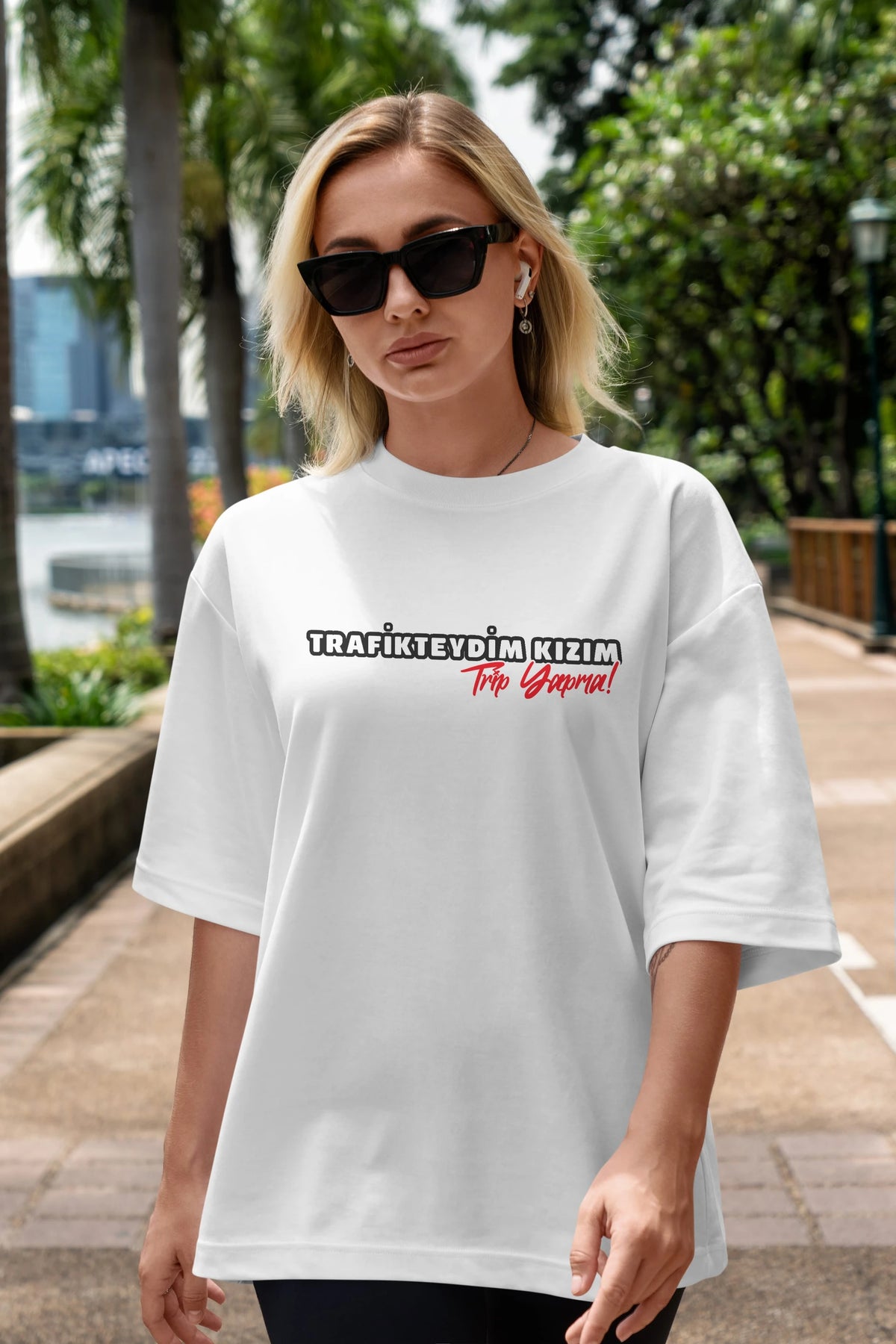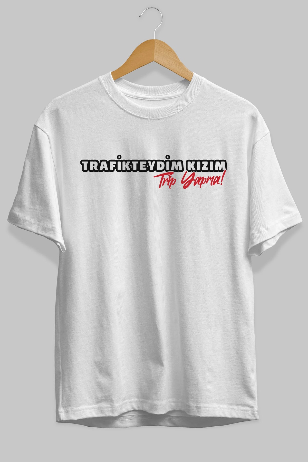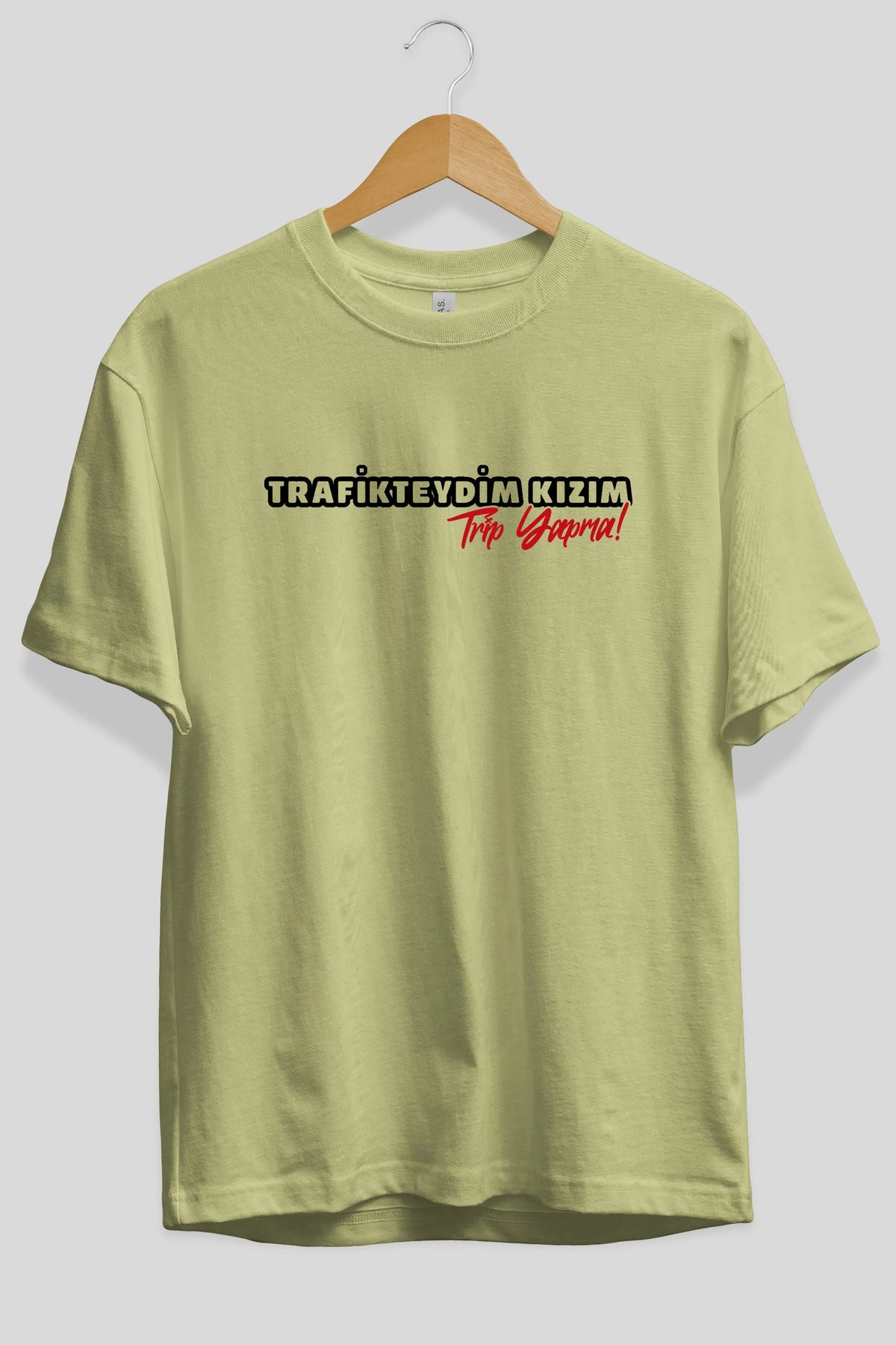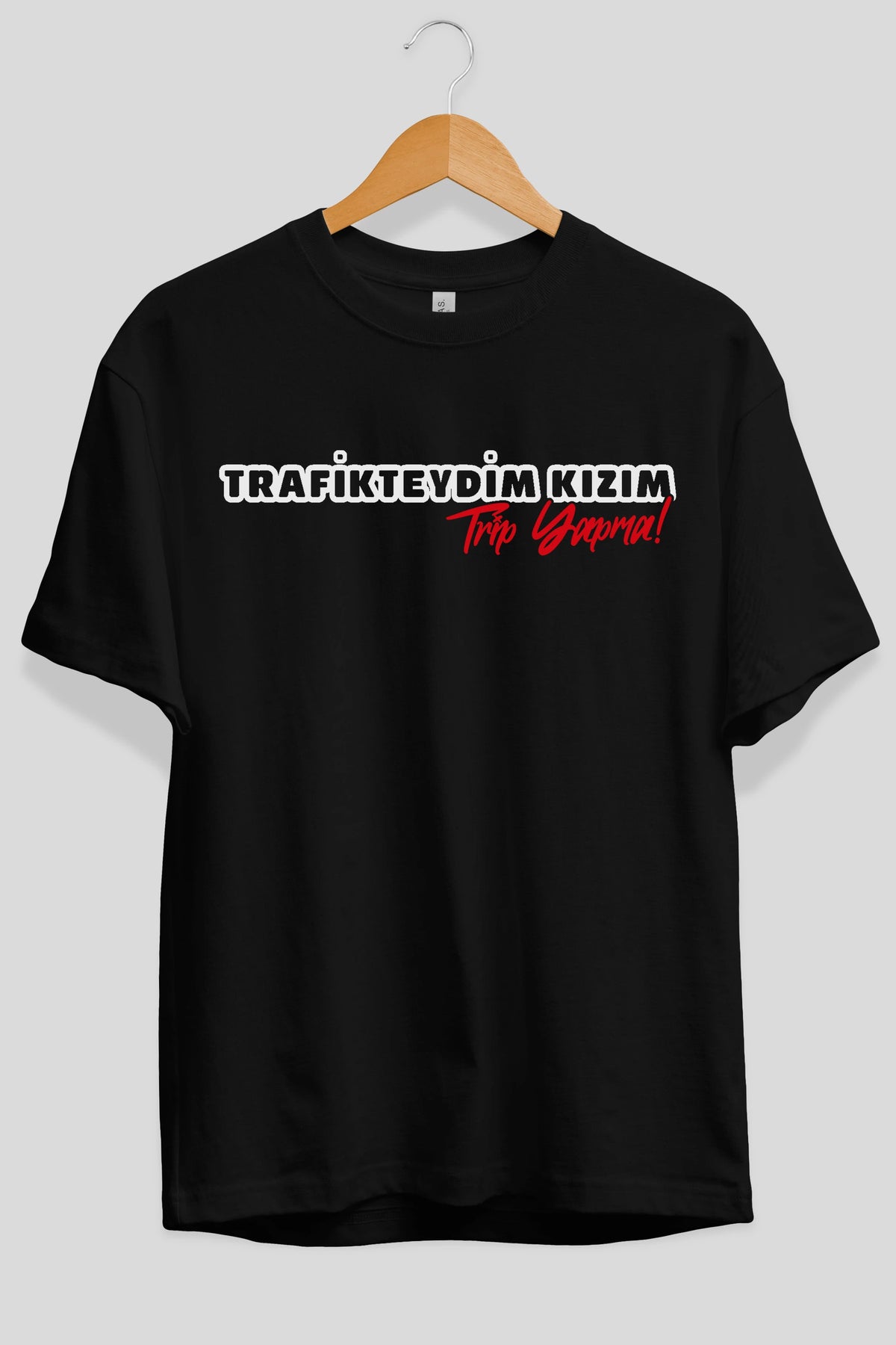Trafikteyim Kızım Trip Yapma Ön Baskılı Oversize t-shirt %100 pamuk Erkek Kadın Unisex