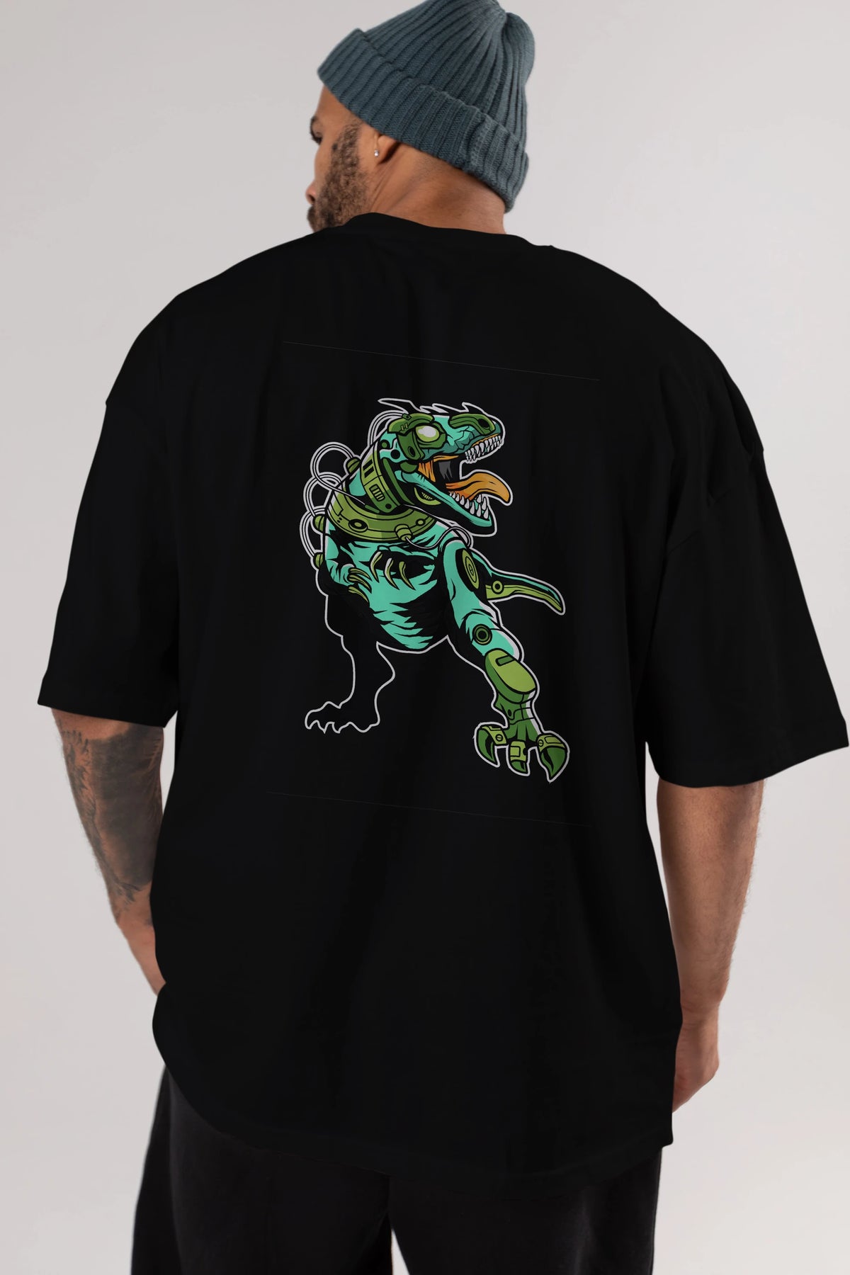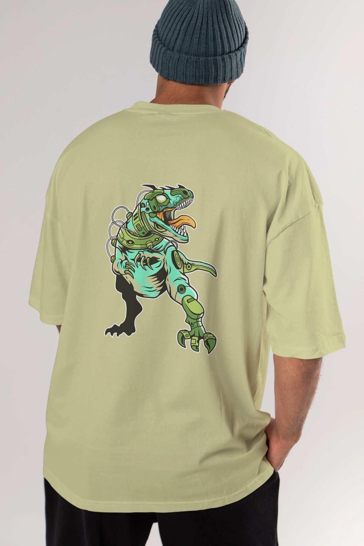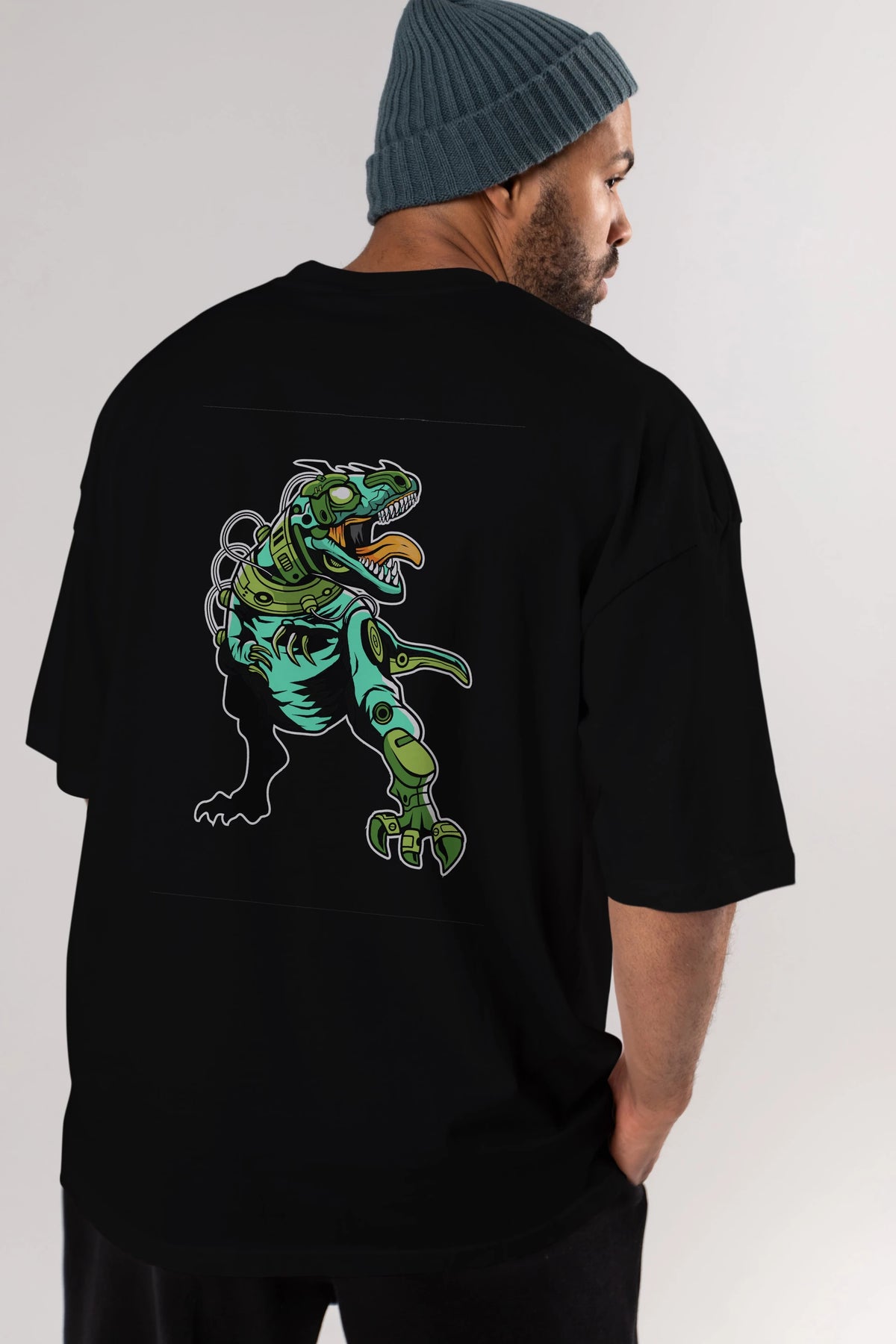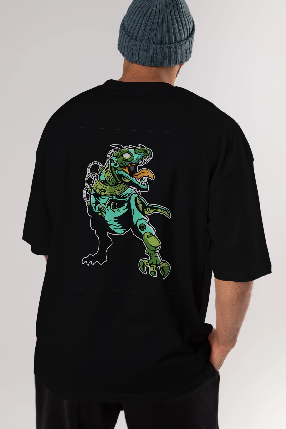 Trex Robot Arka Baskılı Oversize t-shirt Erkek Kadın Unisex %100 Pamuk tişort
