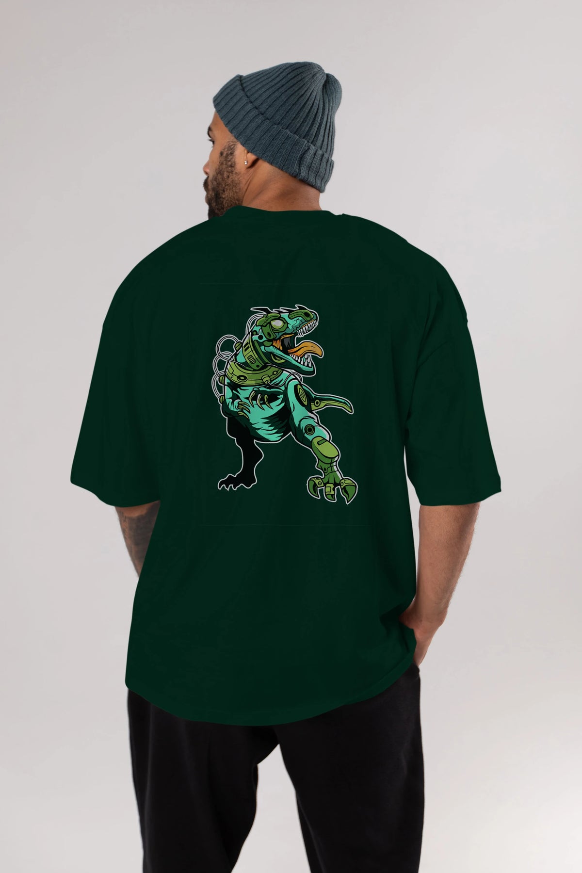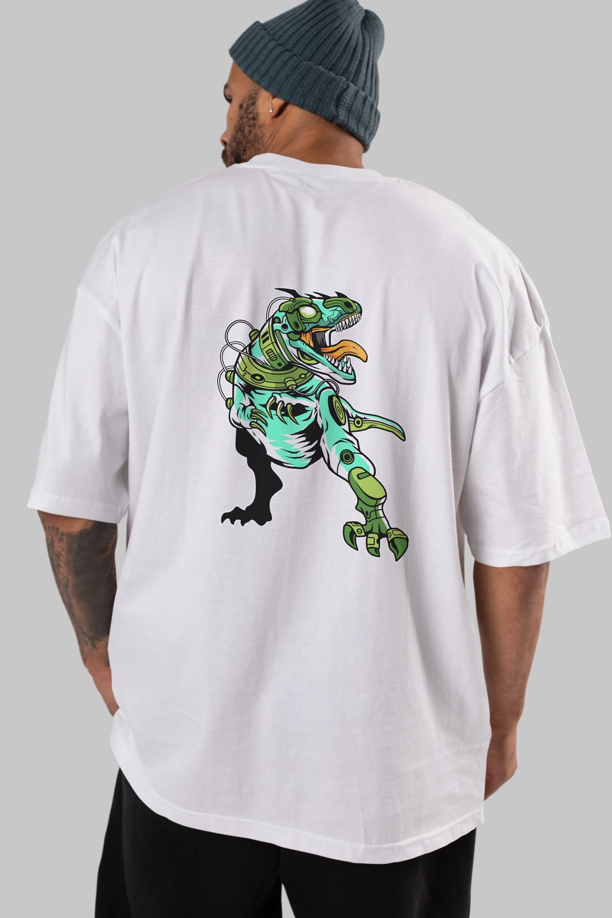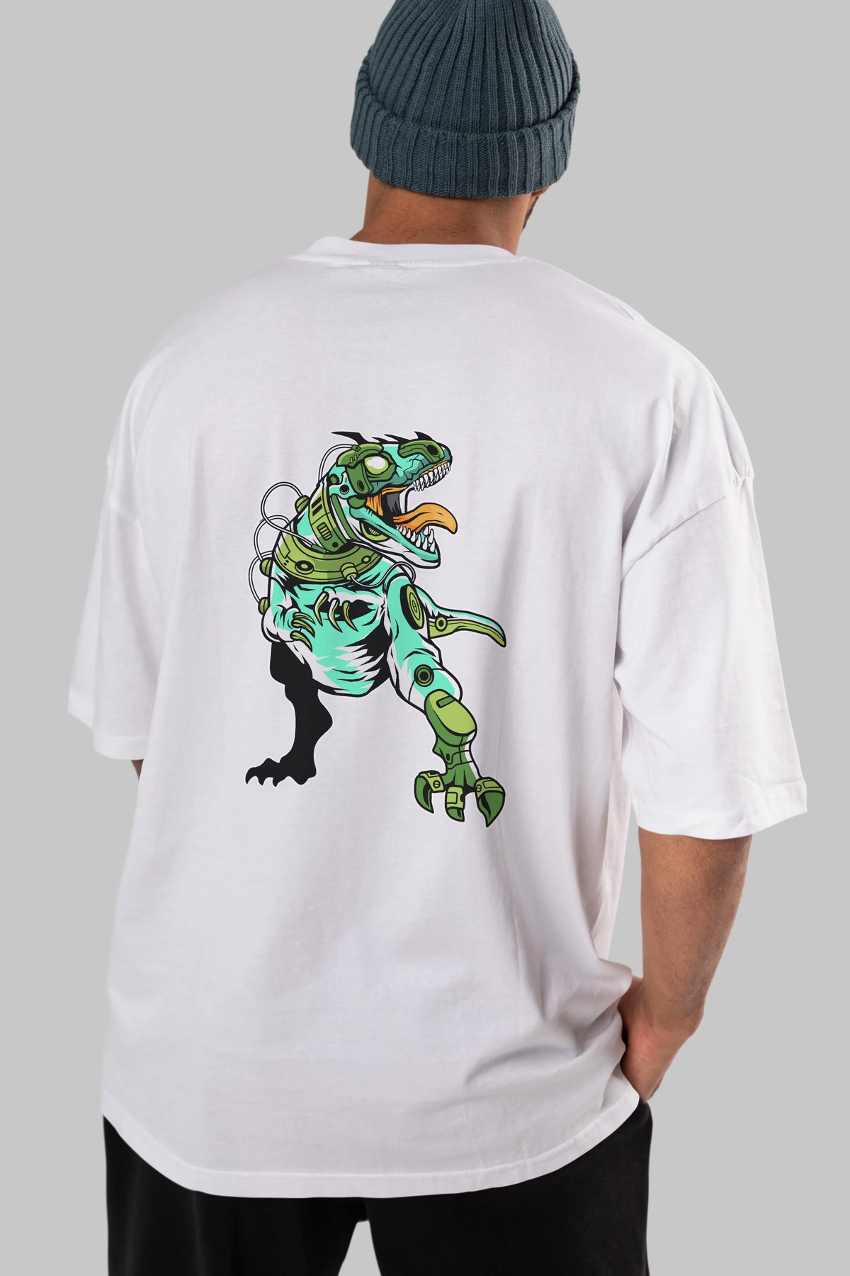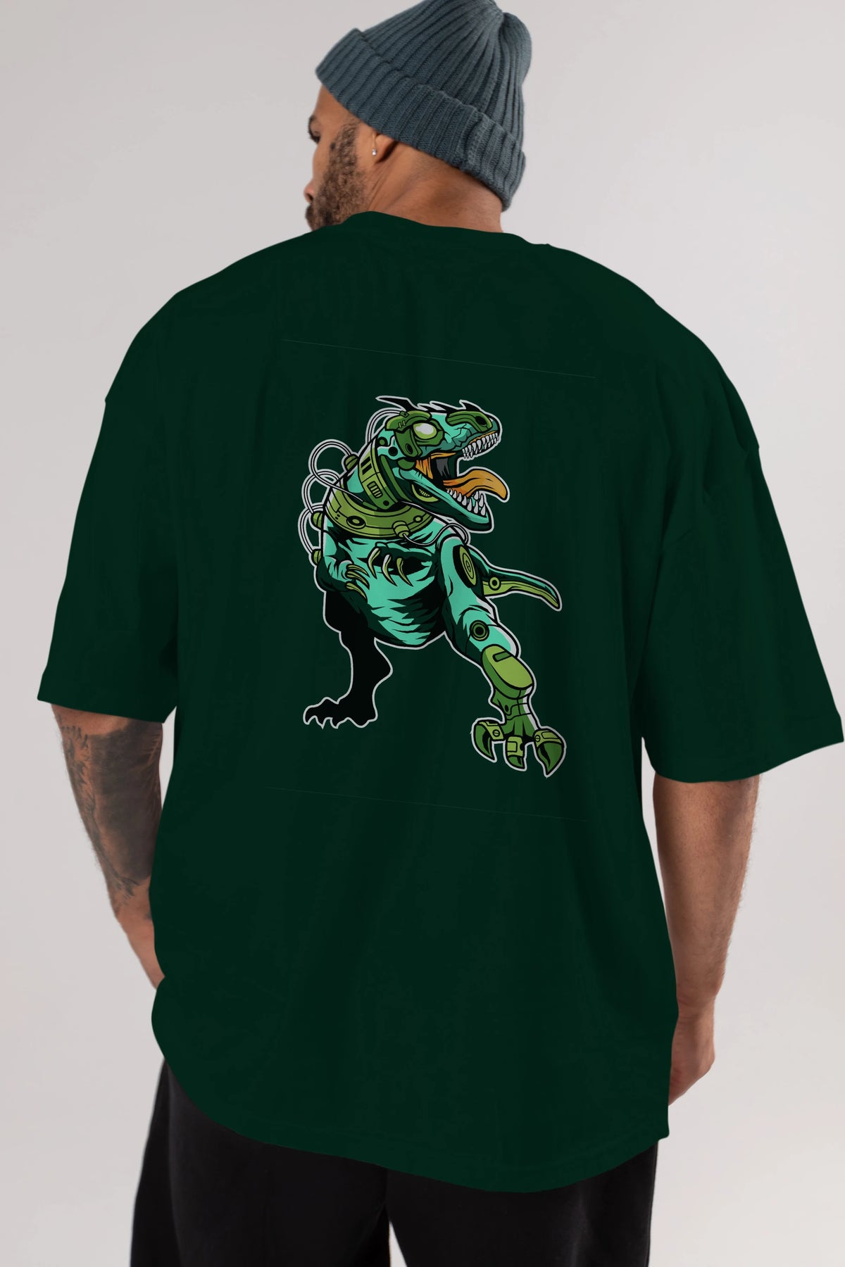 Trex Robot Arka Baskılı Oversize t-shirt Erkek Kadın Unisex %100 Pamuk tişort