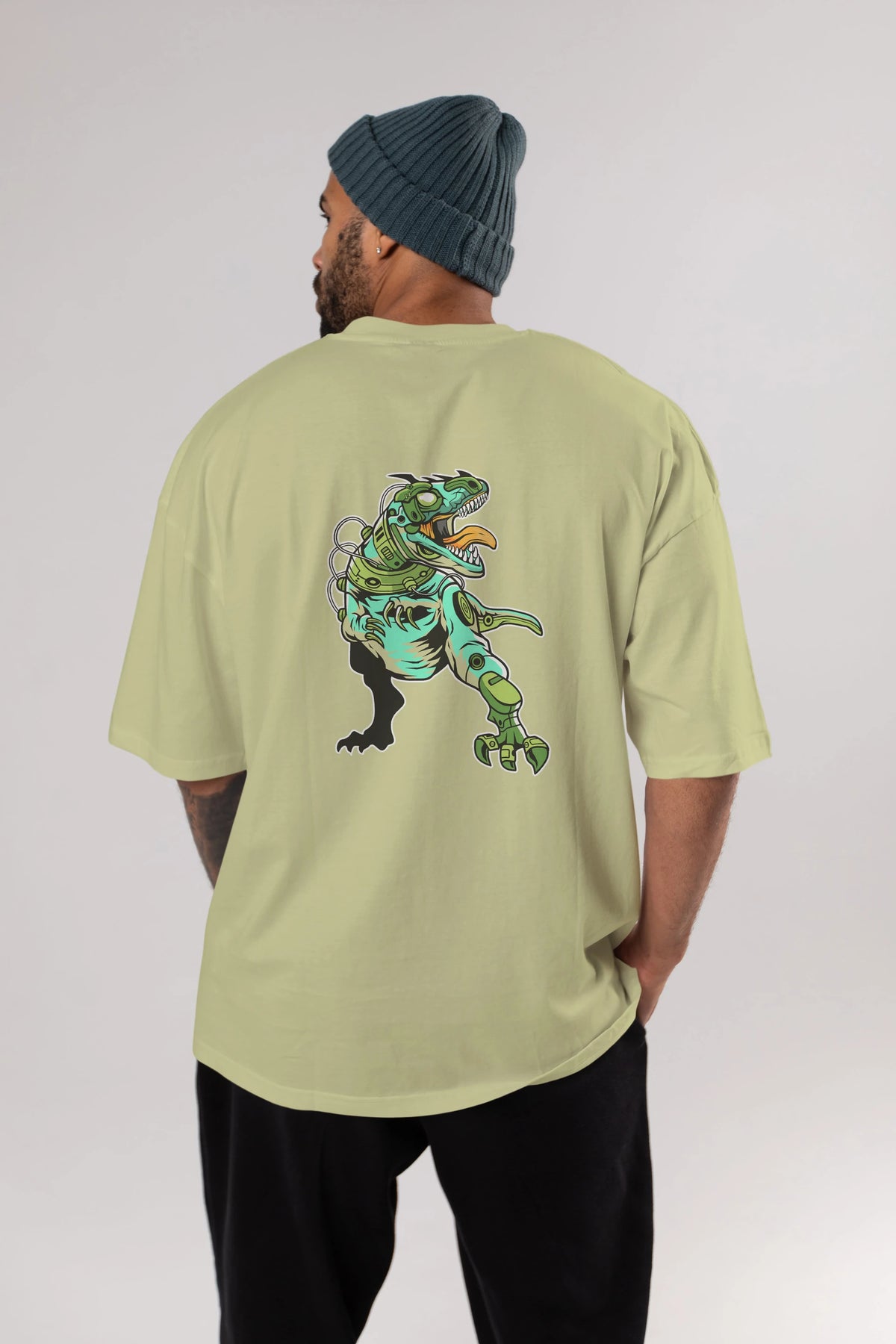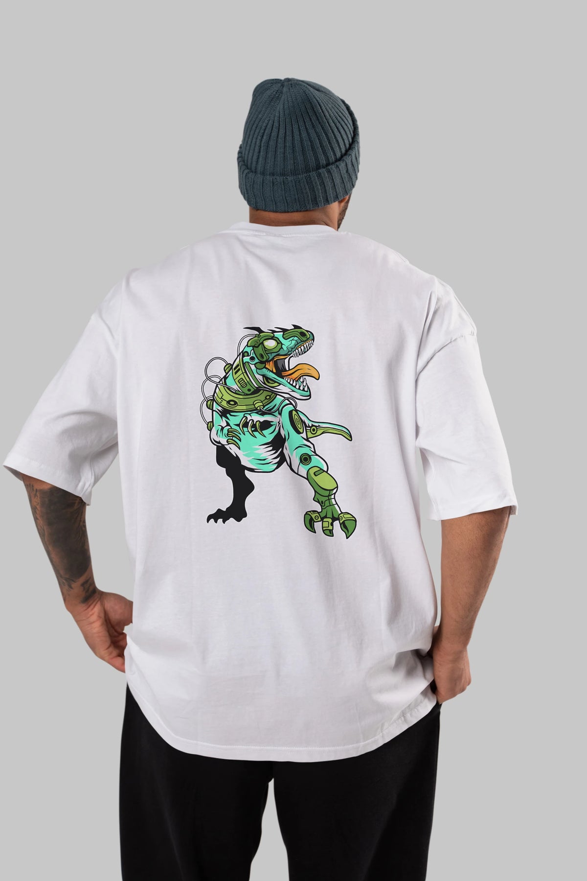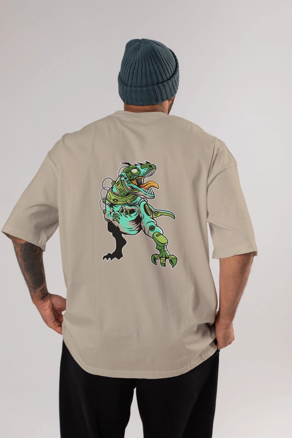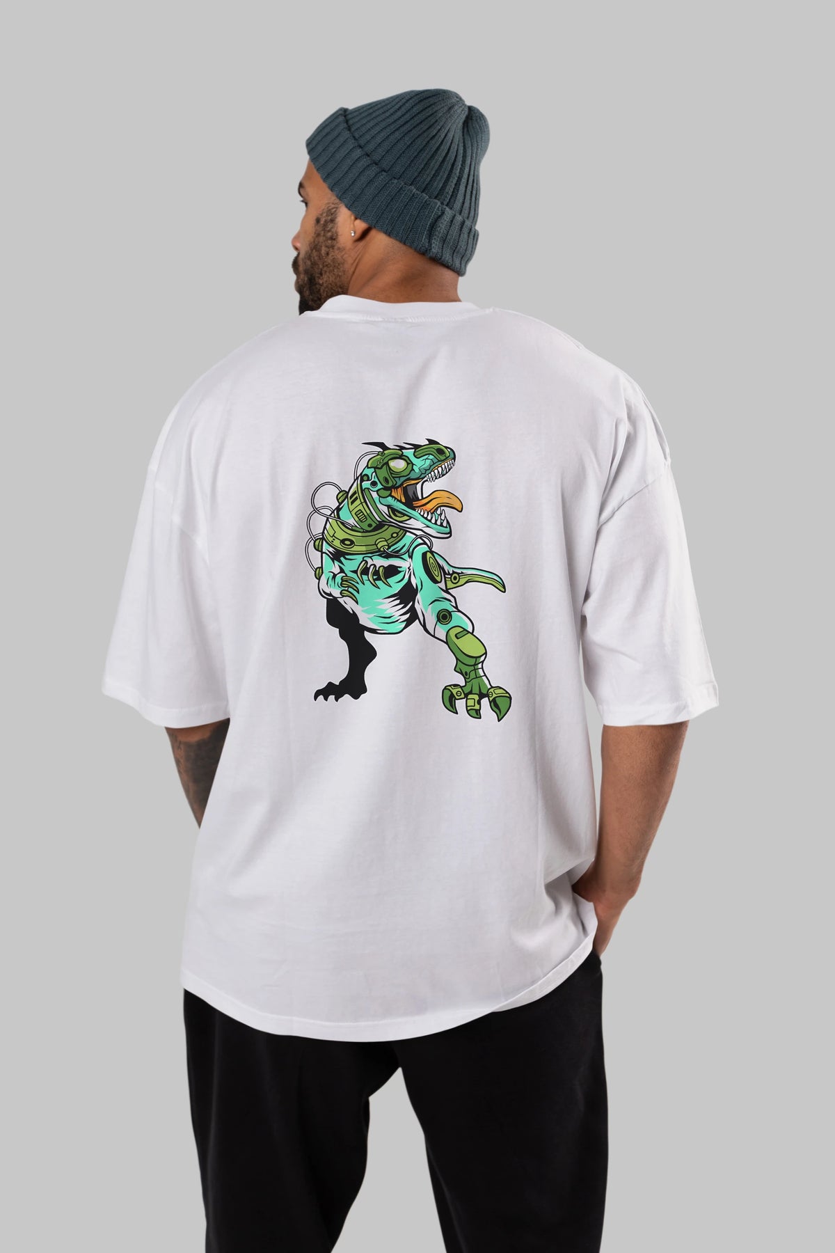 Trex Robot Arka Baskılı Oversize t-shirt Erkek Kadın Unisex %100 Pamuk tişort