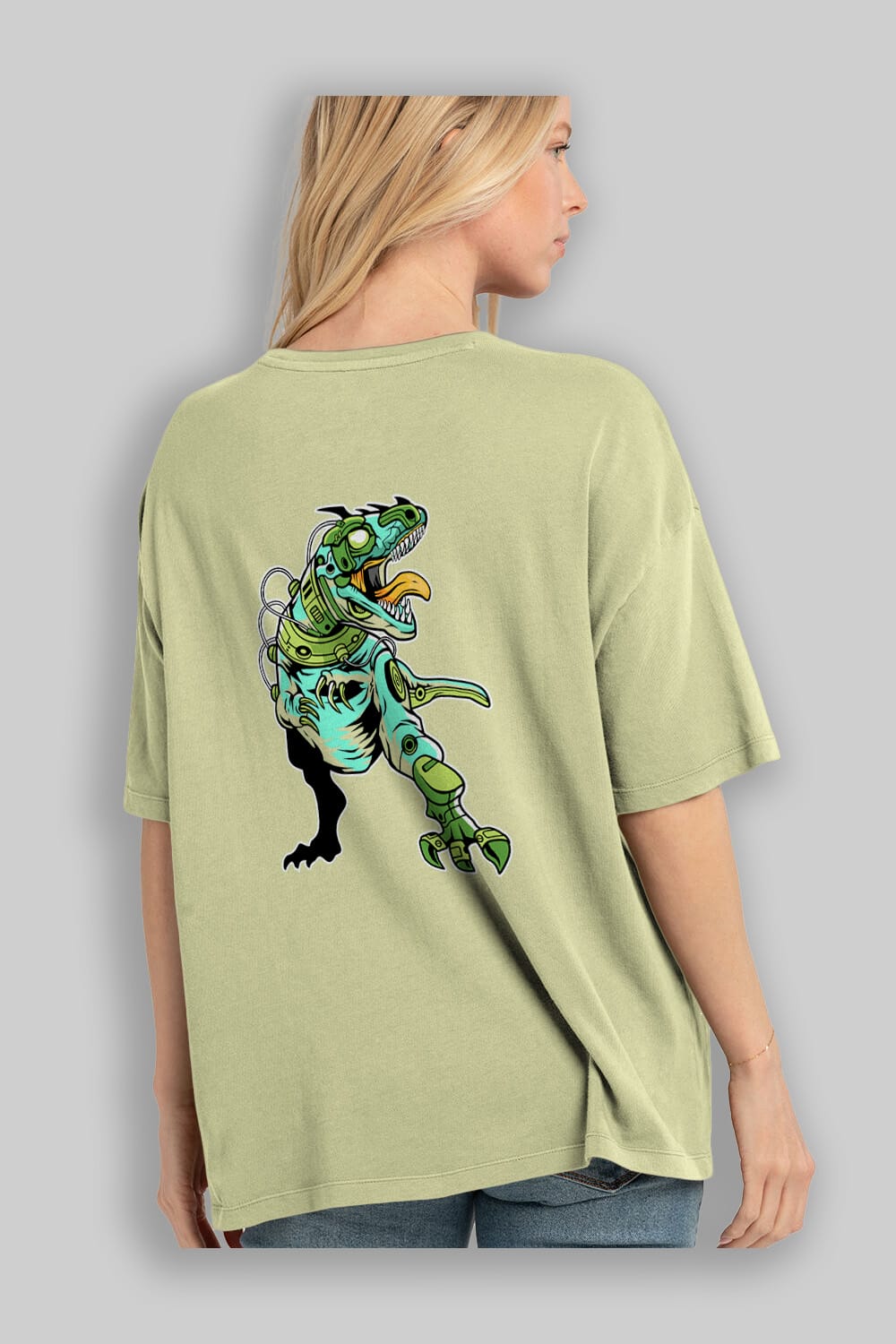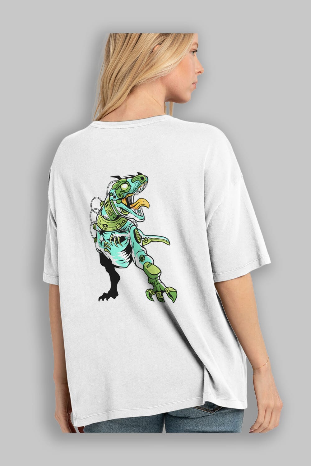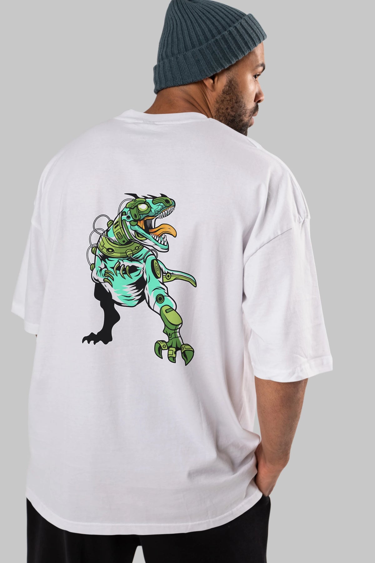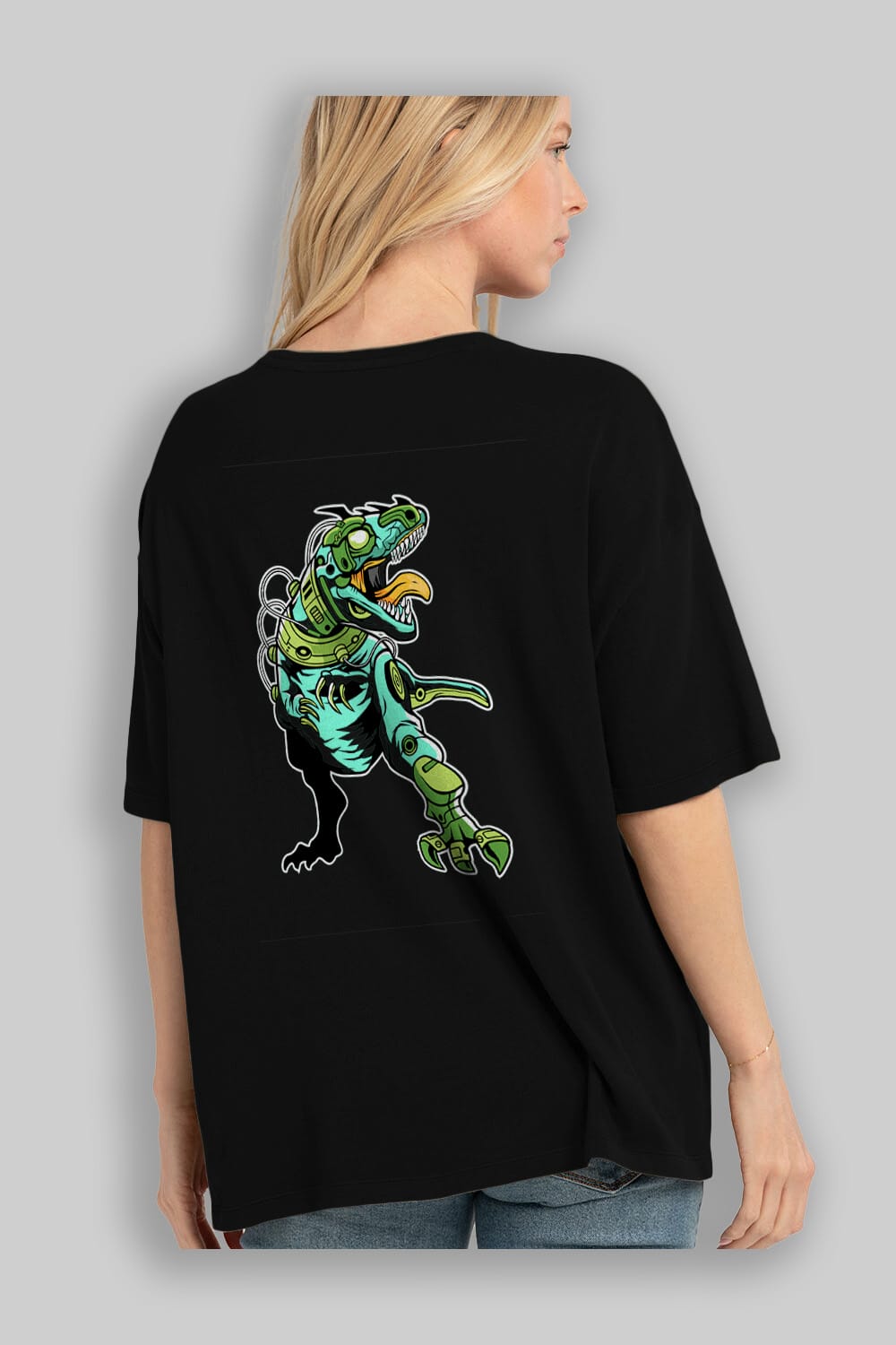 Trex Robot Arka Baskılı Oversize t-shirt Erkek Kadın Unisex %100 Pamuk tişort
