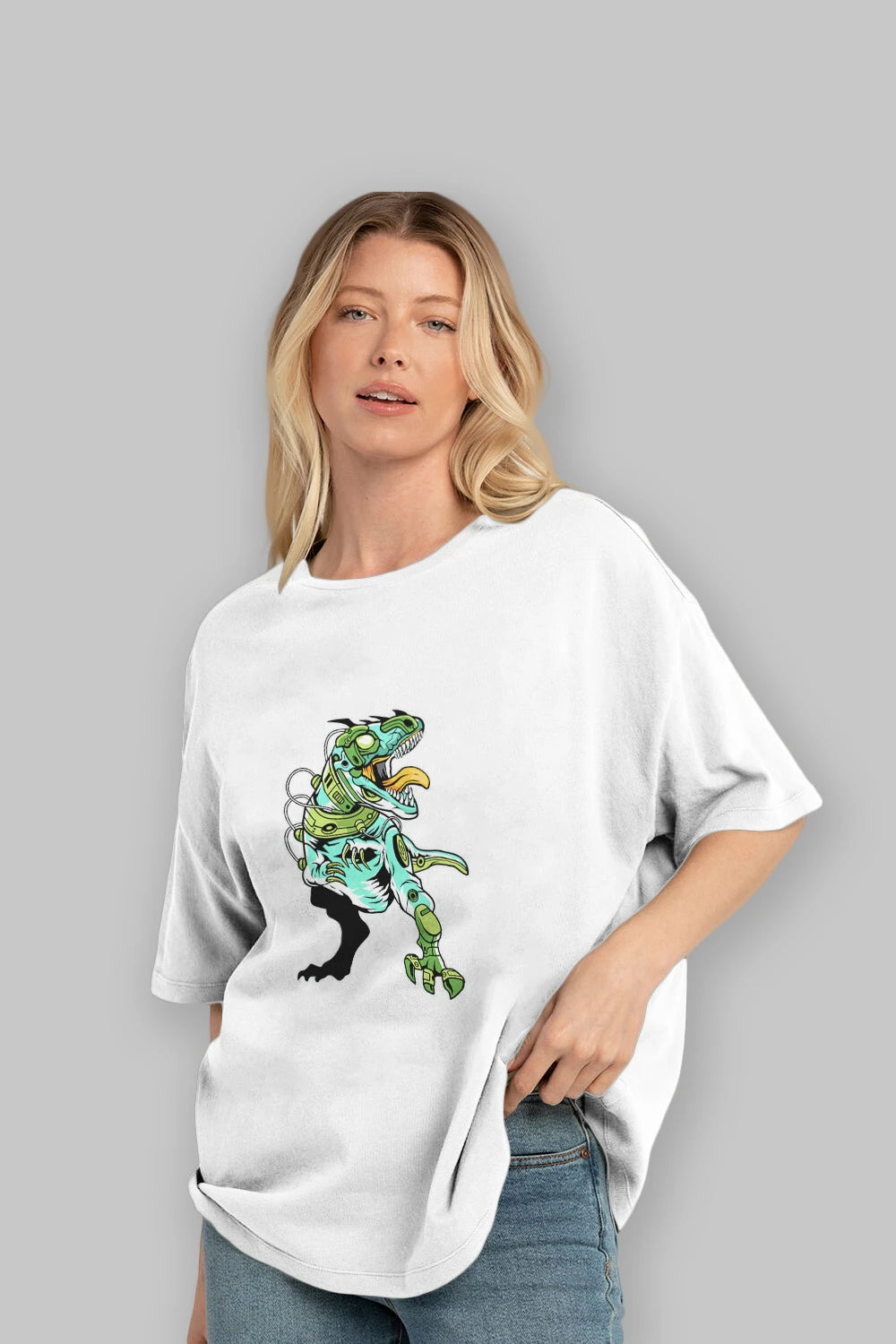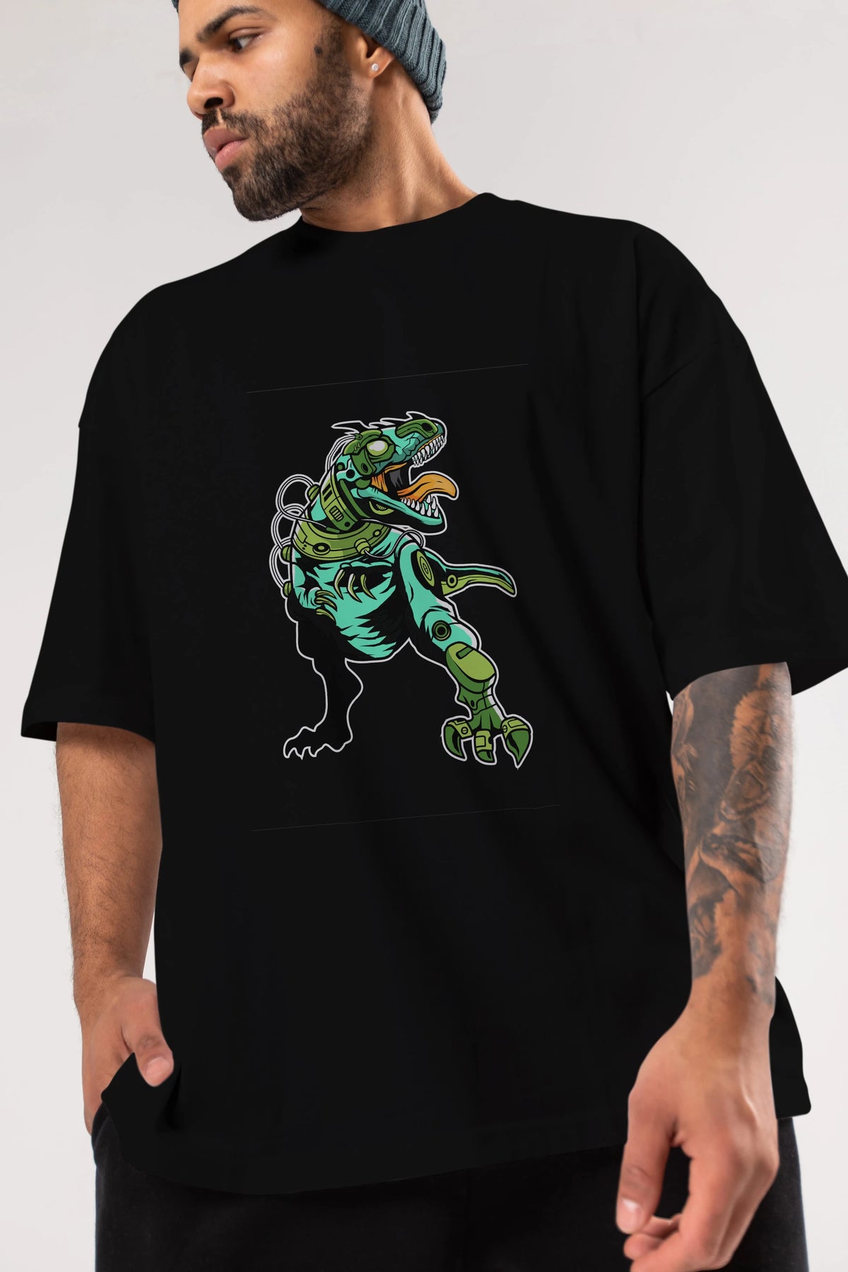 Trex Robot Ön Baskılı Oversize t-shirt Erkek Kadın Unisex %100 Pamuk tişort