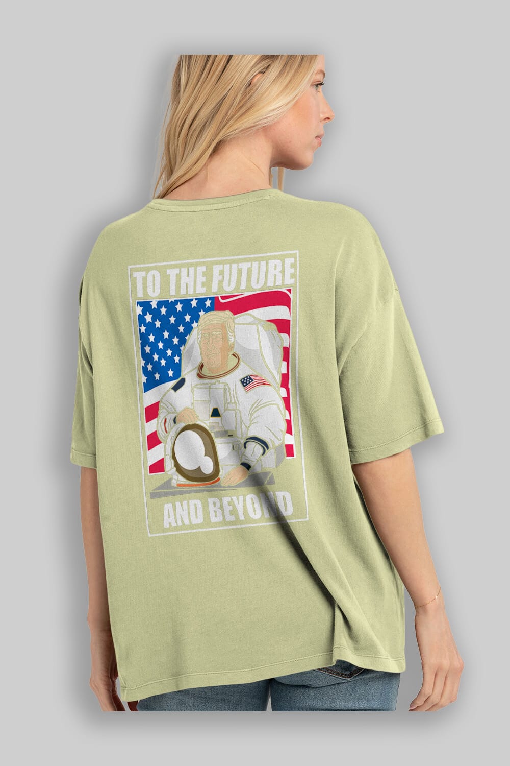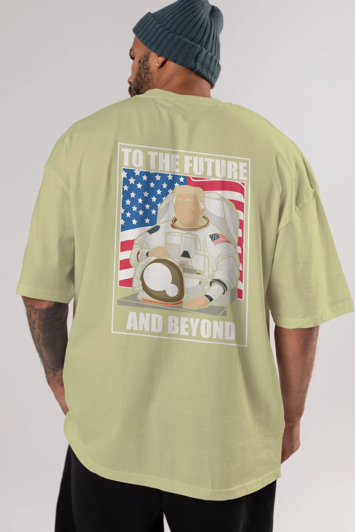 Trumpstronaut Arka Baskılı Oversize t-shirt Erkek Kadın Unisex %100 Pamuk tişort