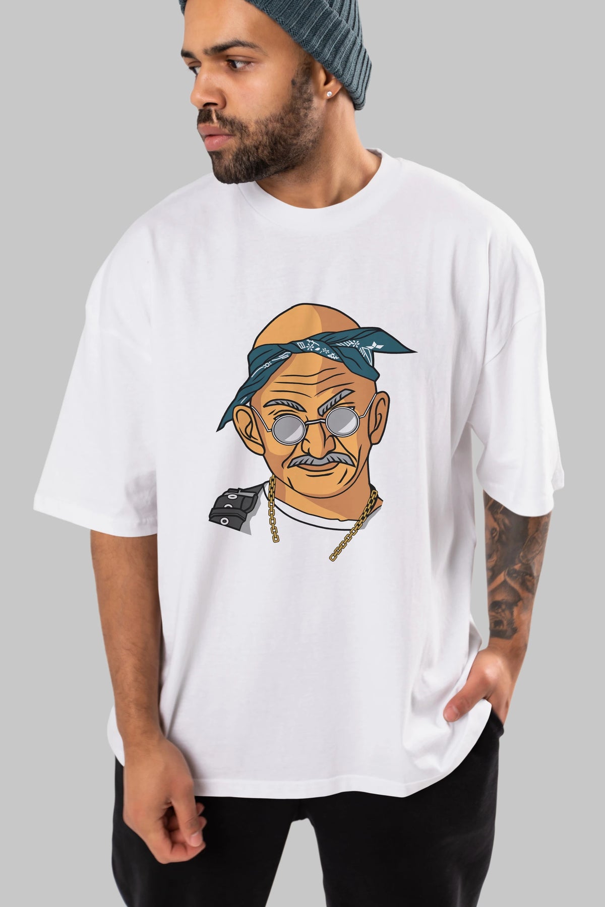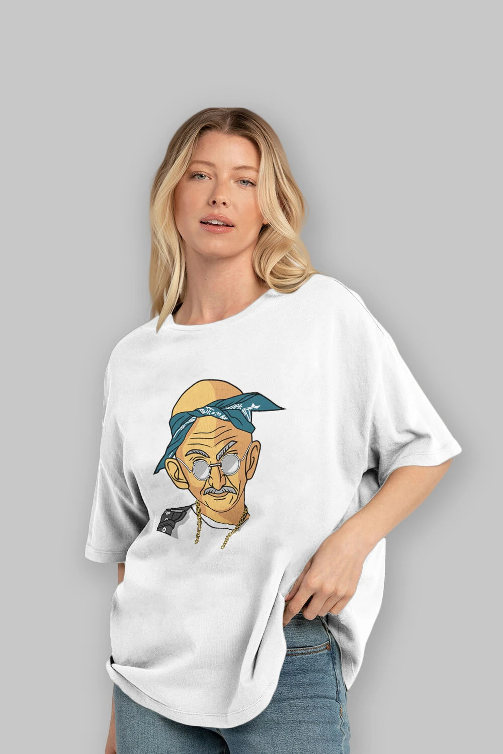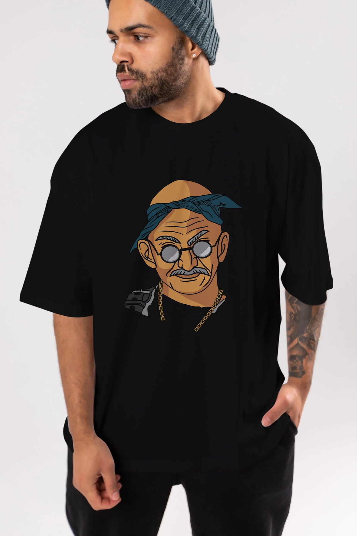 Tupac Gandhi Ön Baskılı Oversize t-shirt Erkek Kadın Unisex %100 Pamuk tişort