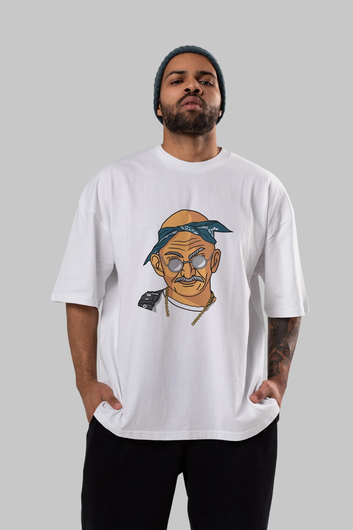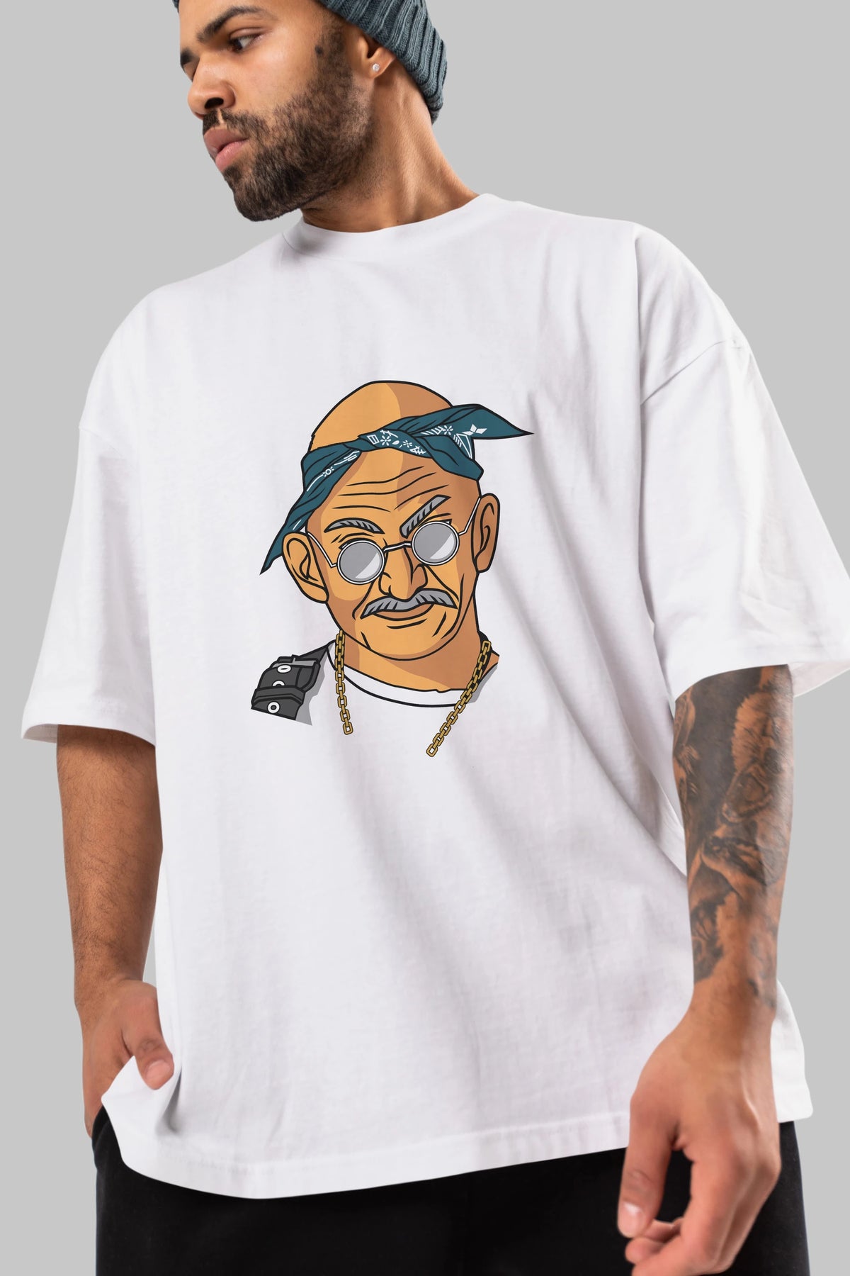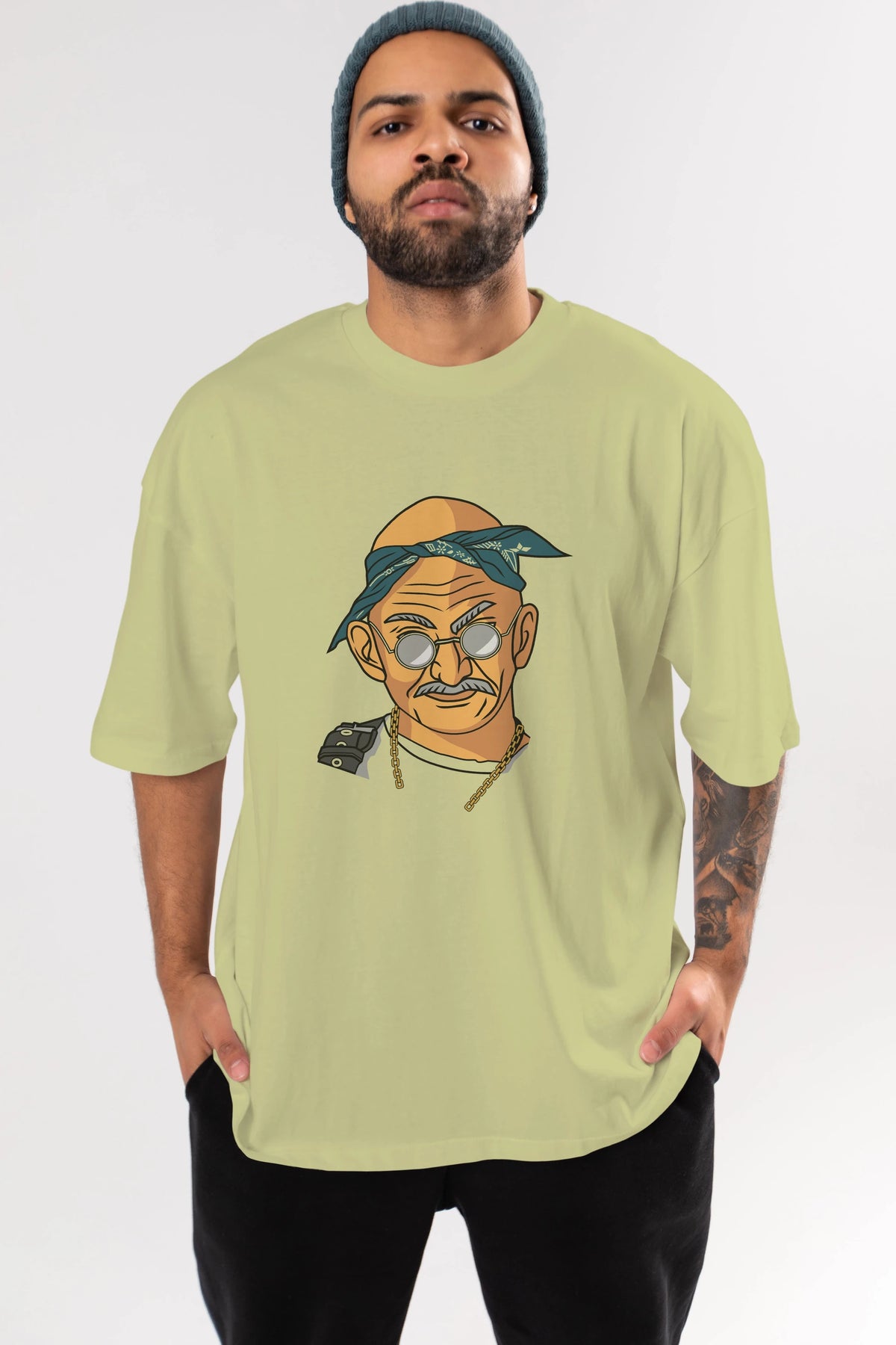 Tupac Gandhi Ön Baskılı Oversize t-shirt Erkek Kadın Unisex %100 Pamuk tişort