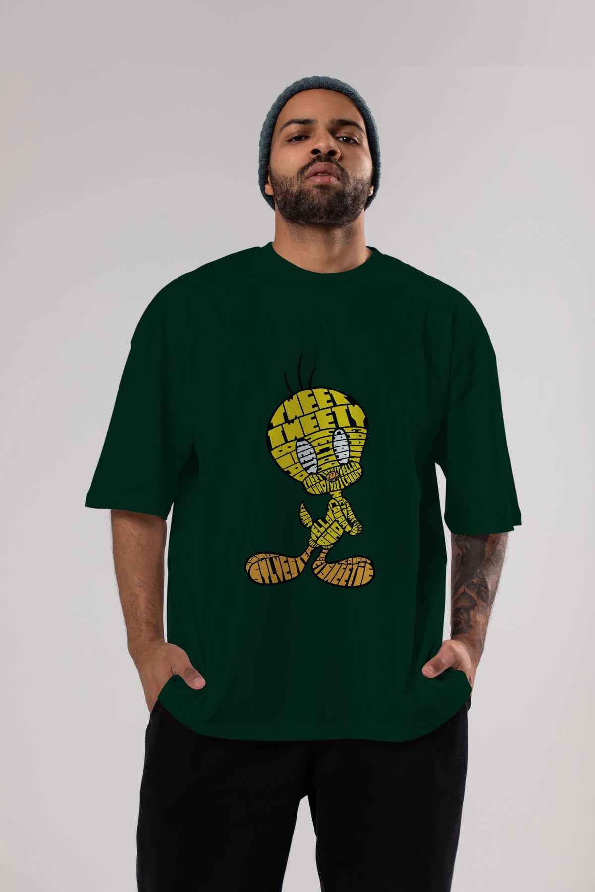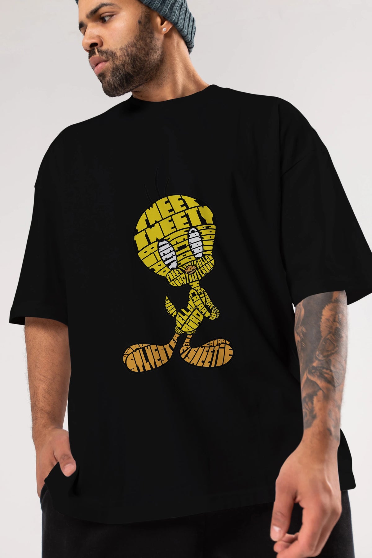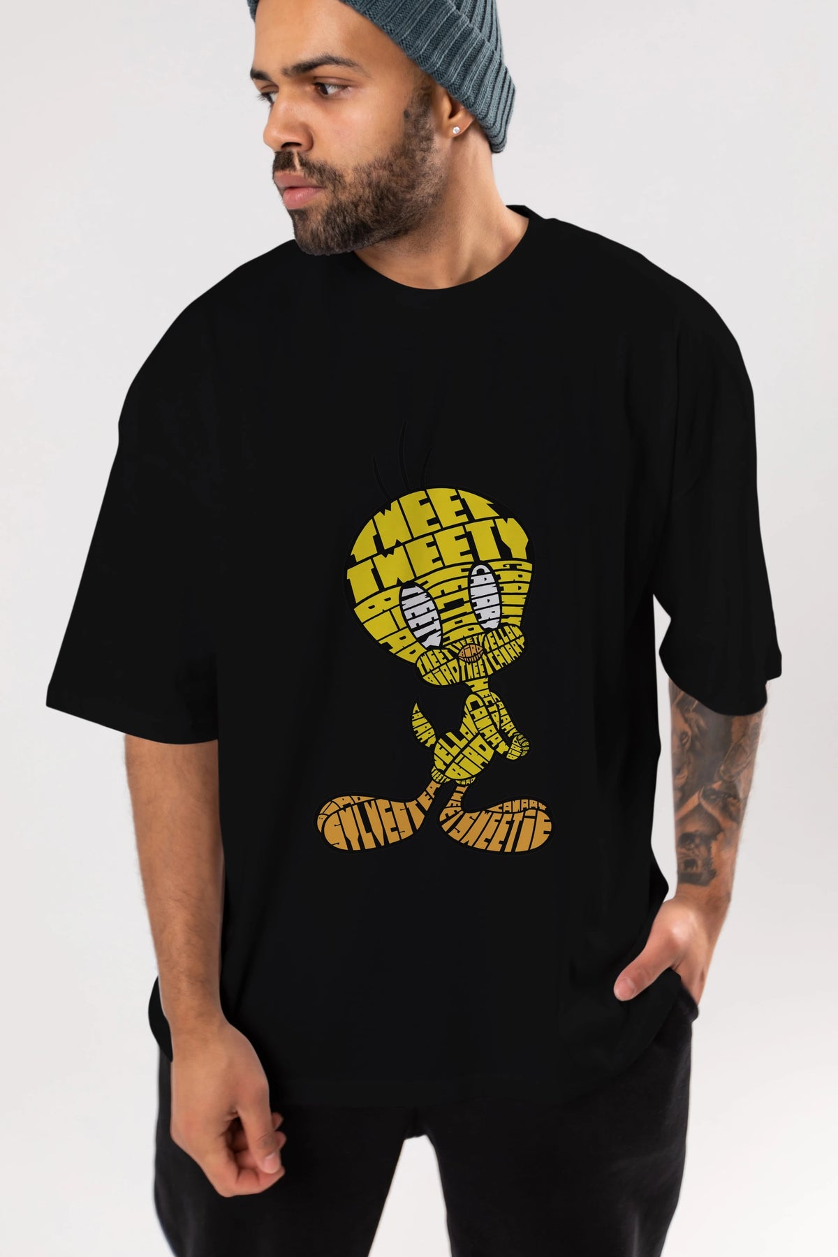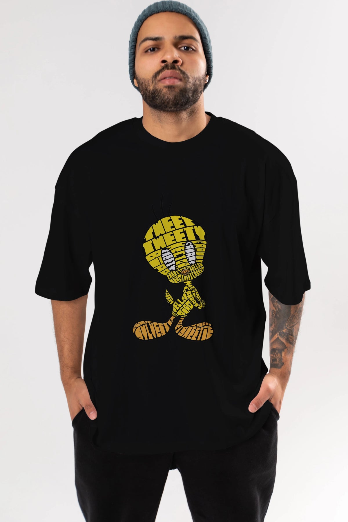 Tweety Ön Baskılı Oversize t-shirt %100 pamuk Erkek Kadın Unisex