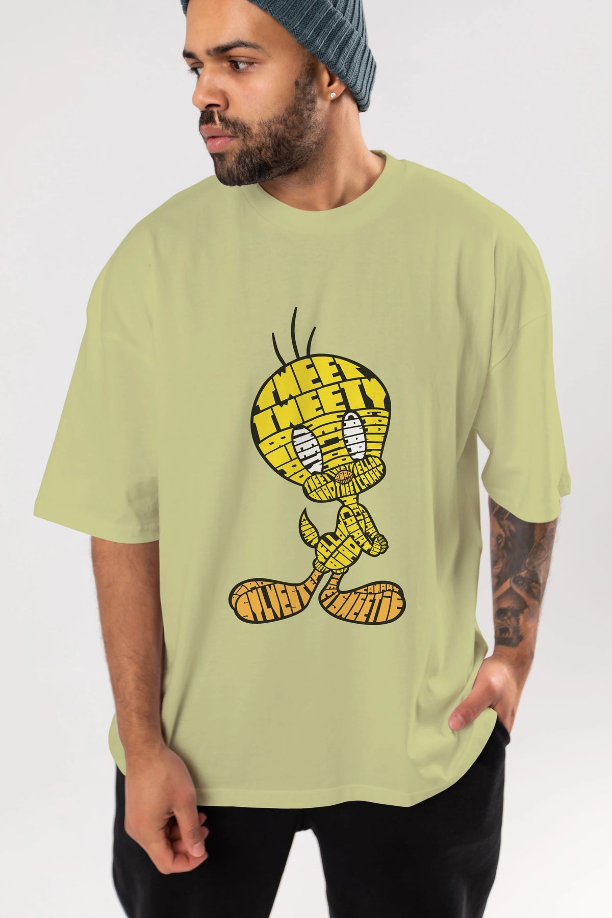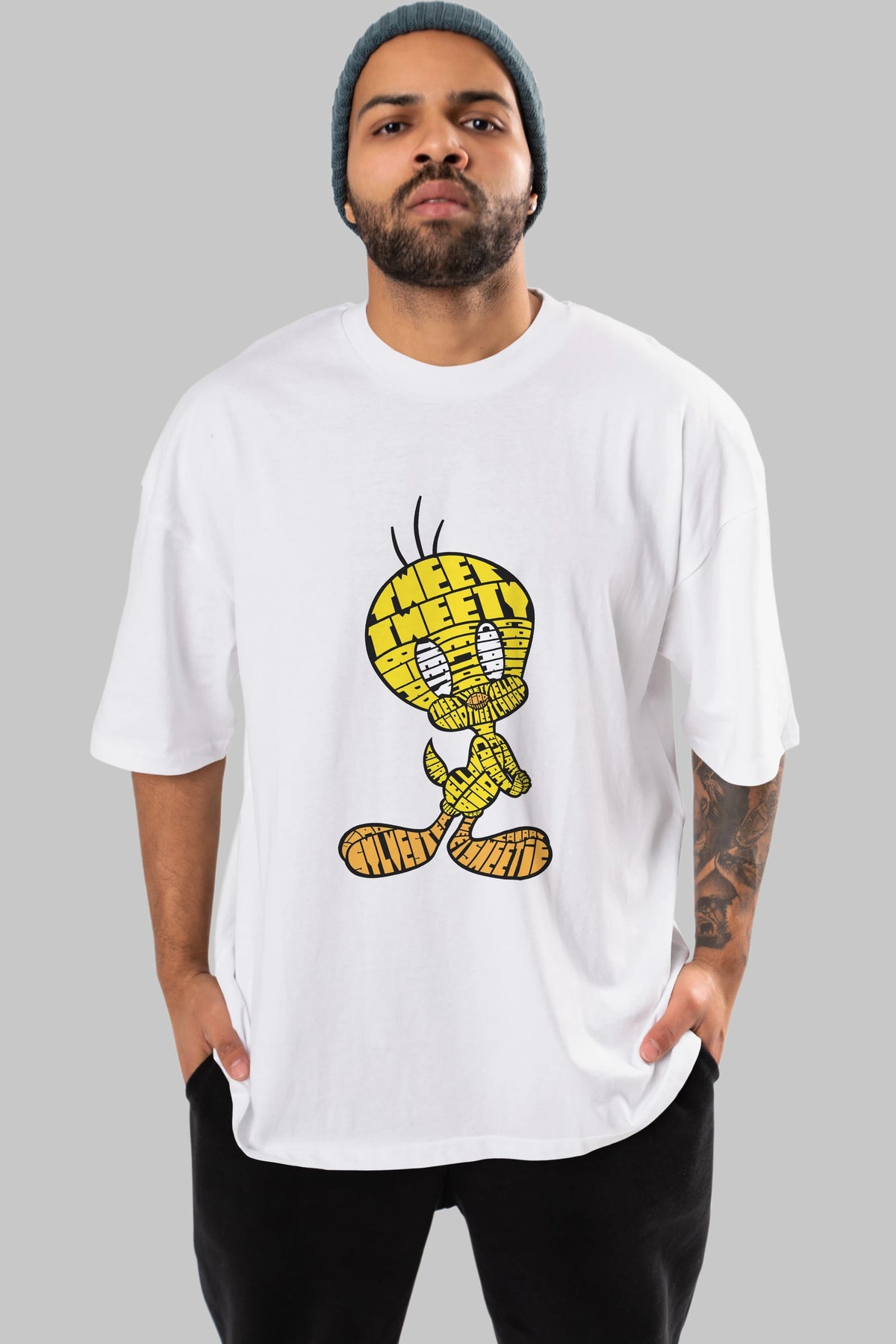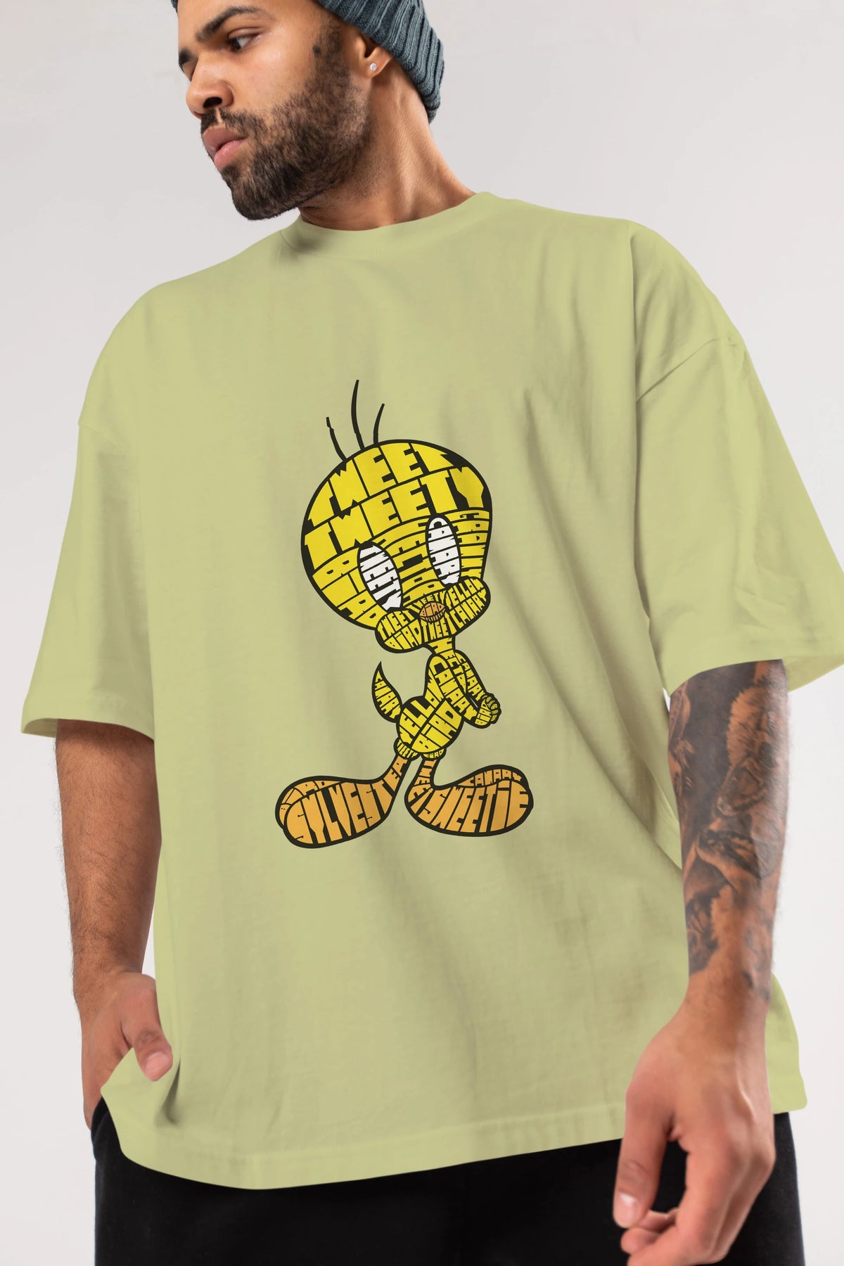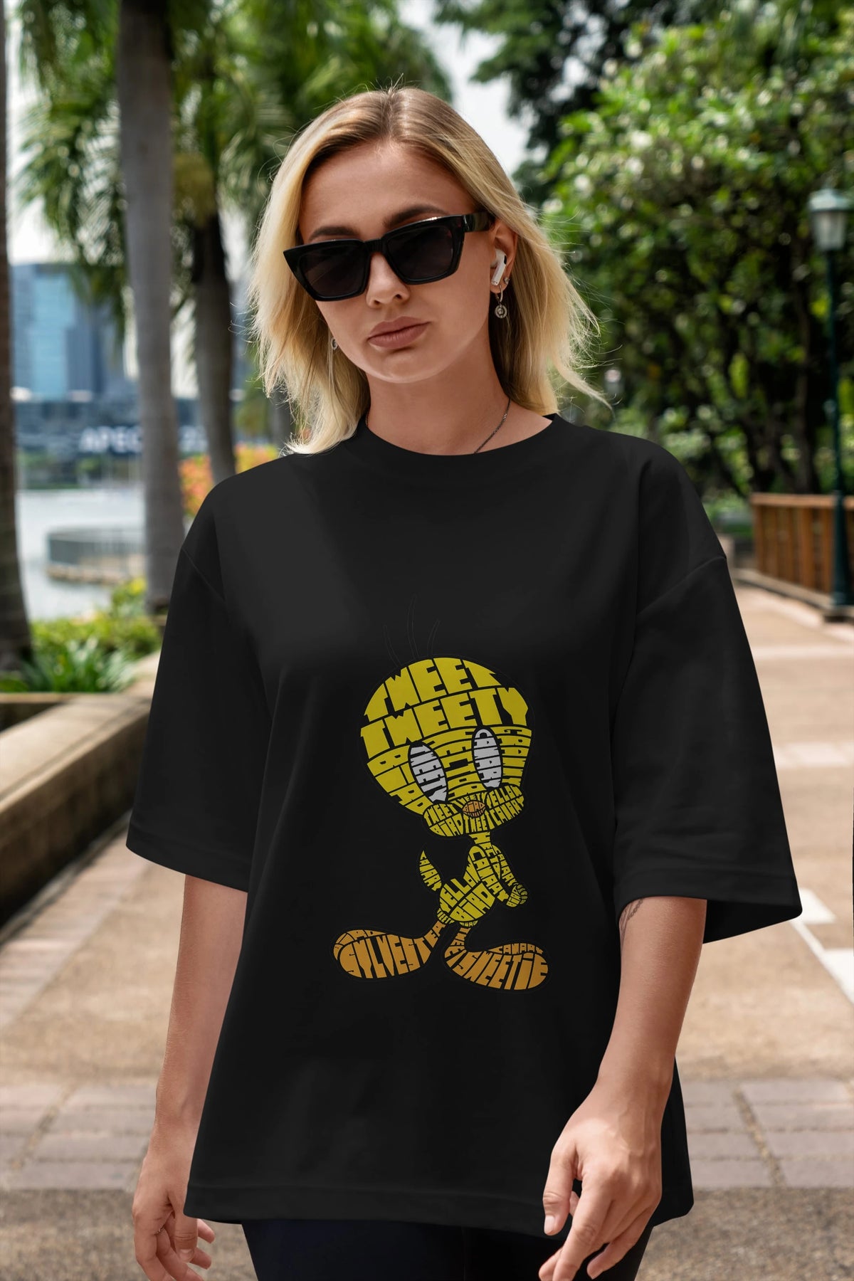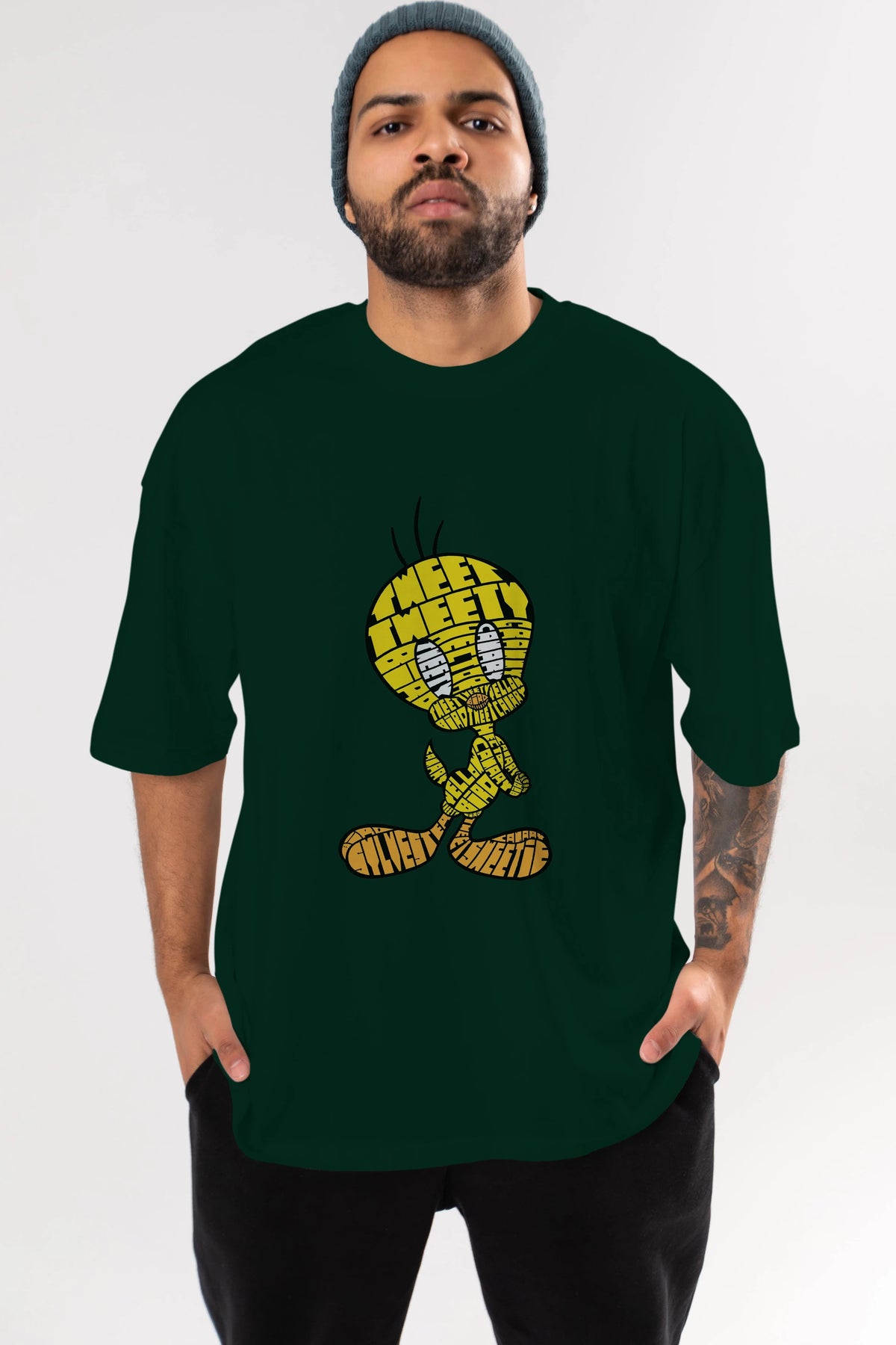 Tweety Ön Baskılı Oversize t-shirt %100 pamuk Erkek Kadın Unisex