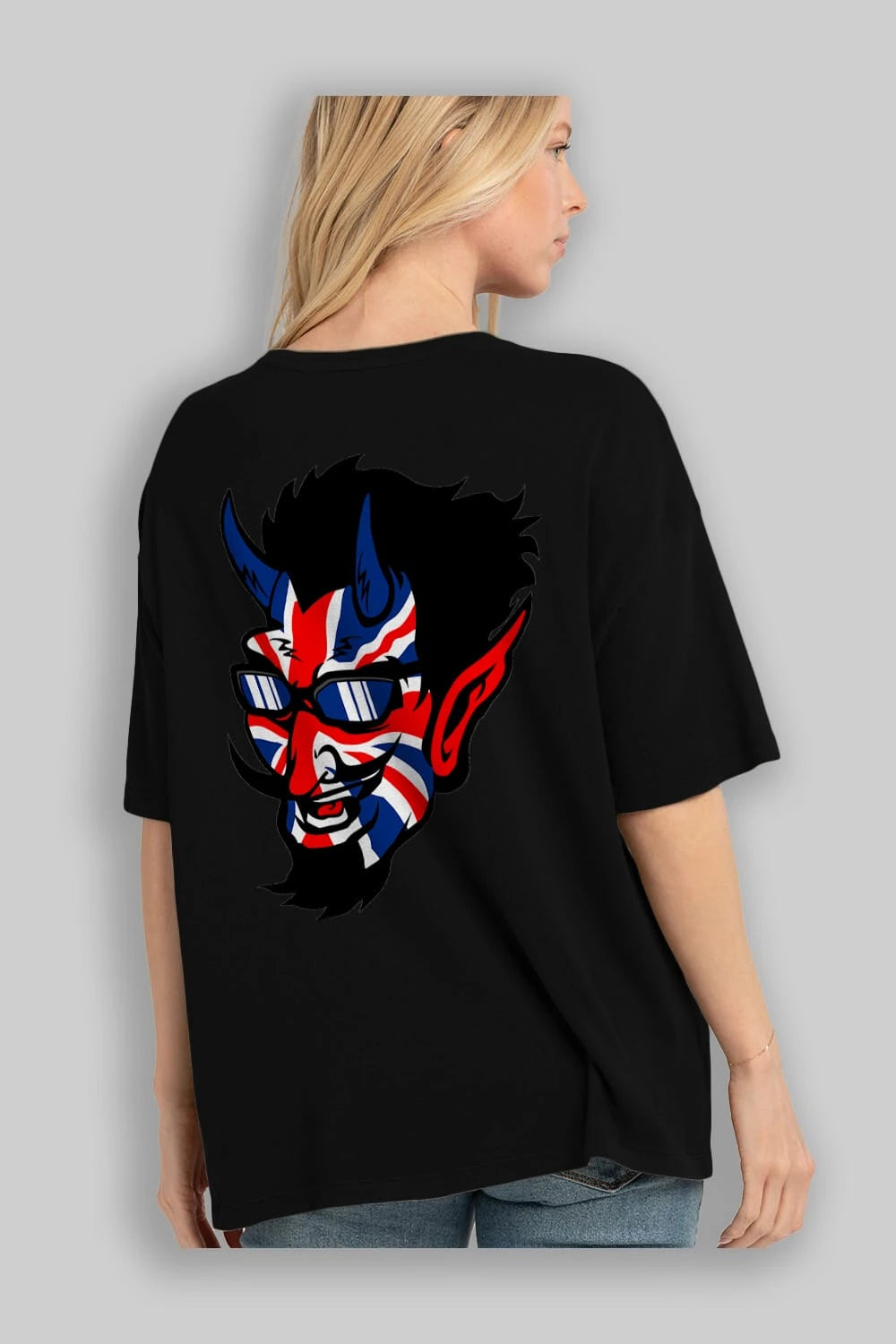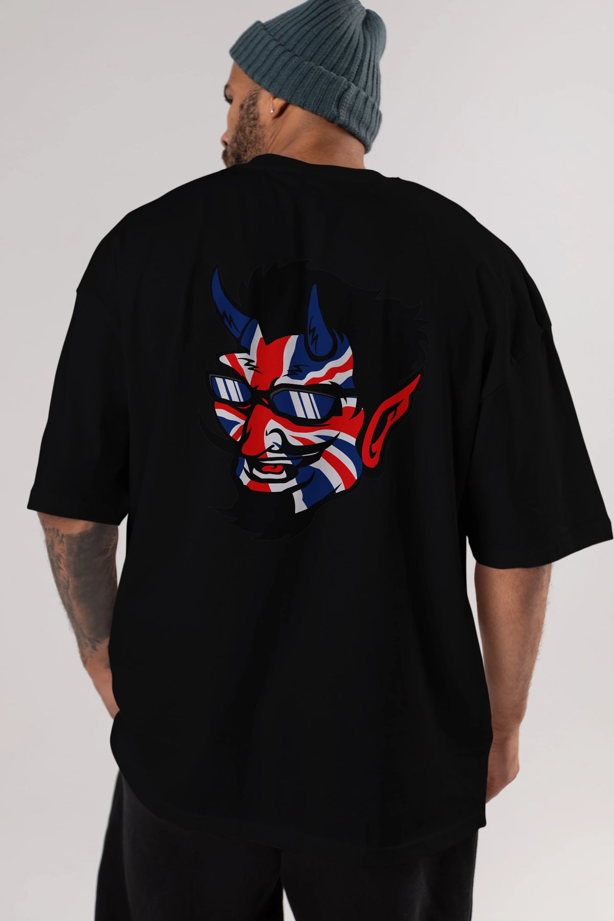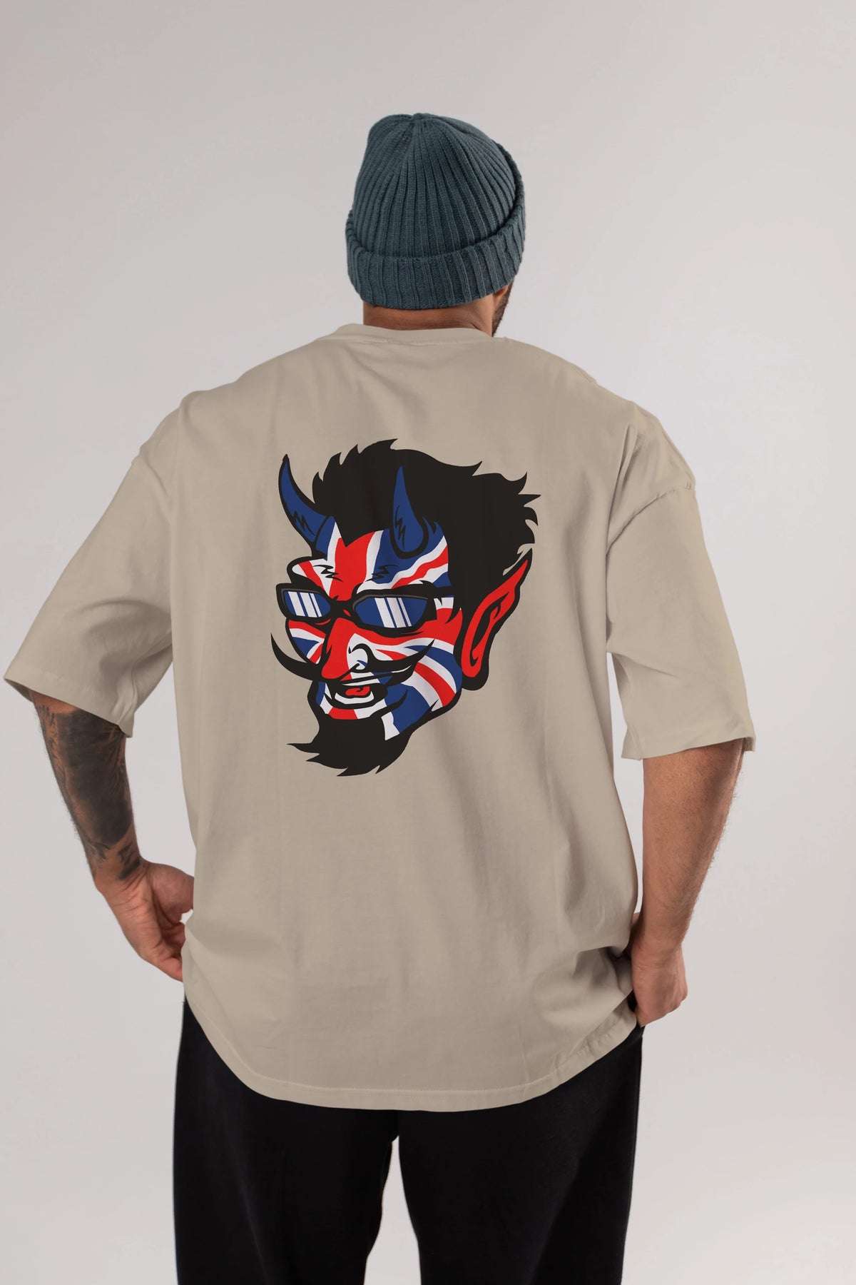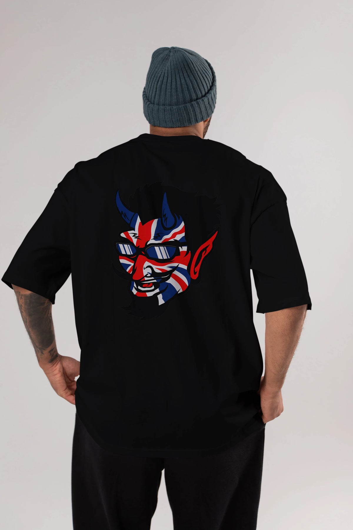 UK Devil Arka Baskılı Oversize t-shirt Erkek Kadın Unisex %100 Pamuk tişort