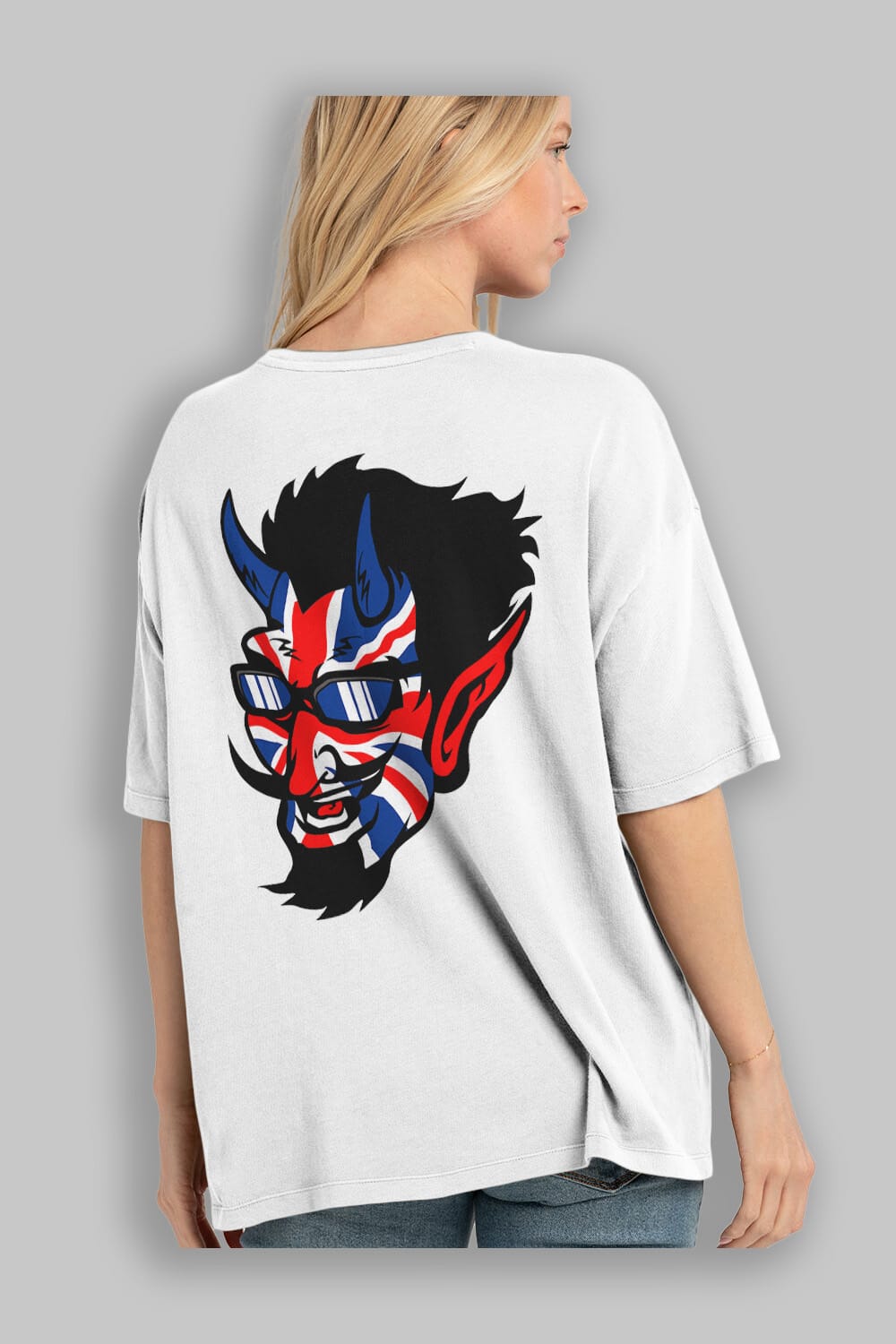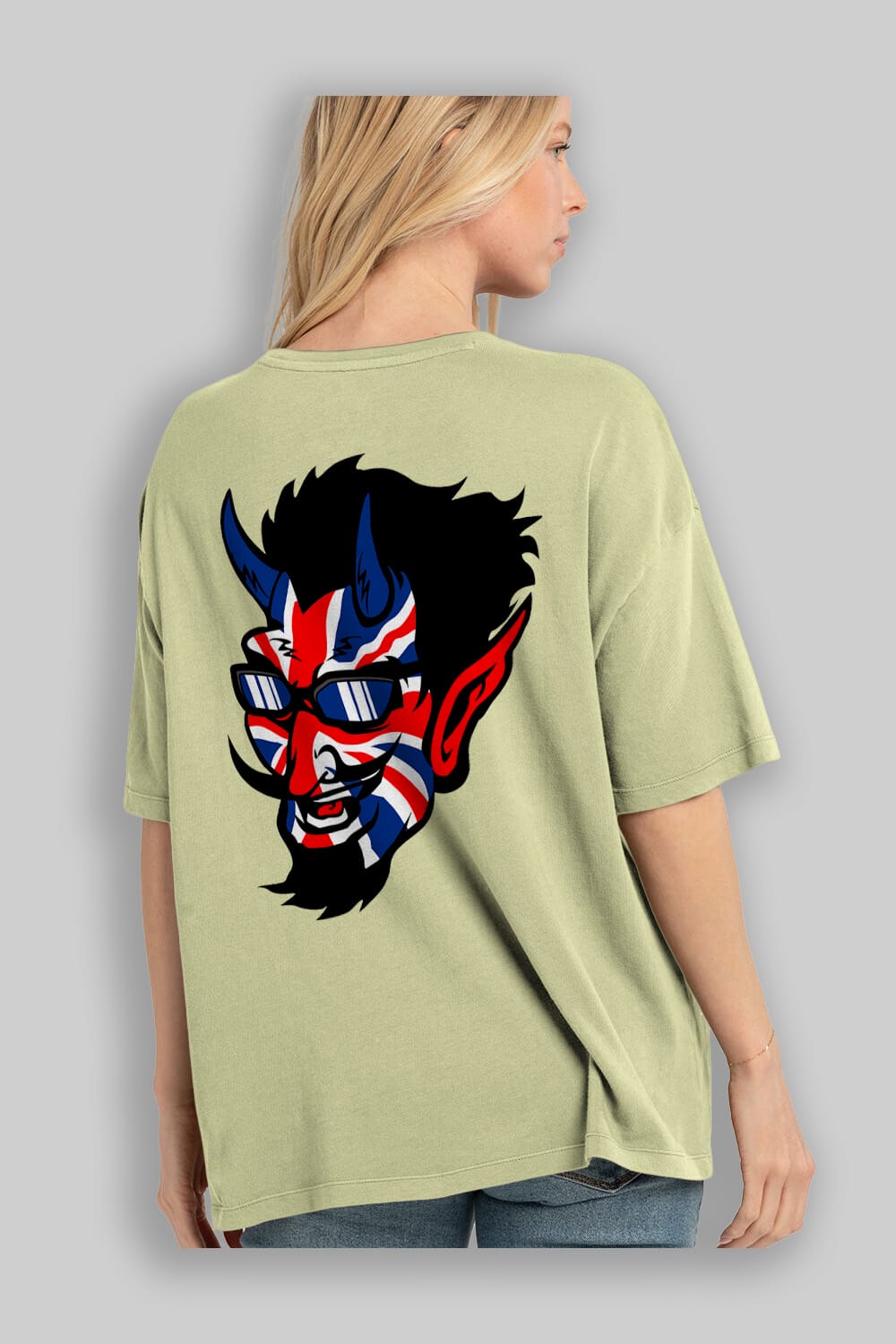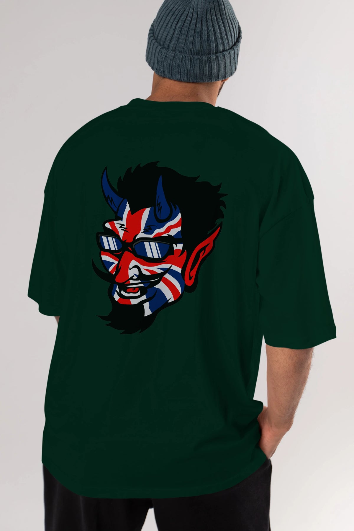 UK Devil Arka Baskılı Oversize t-shirt Erkek Kadın Unisex %100 Pamuk tişort