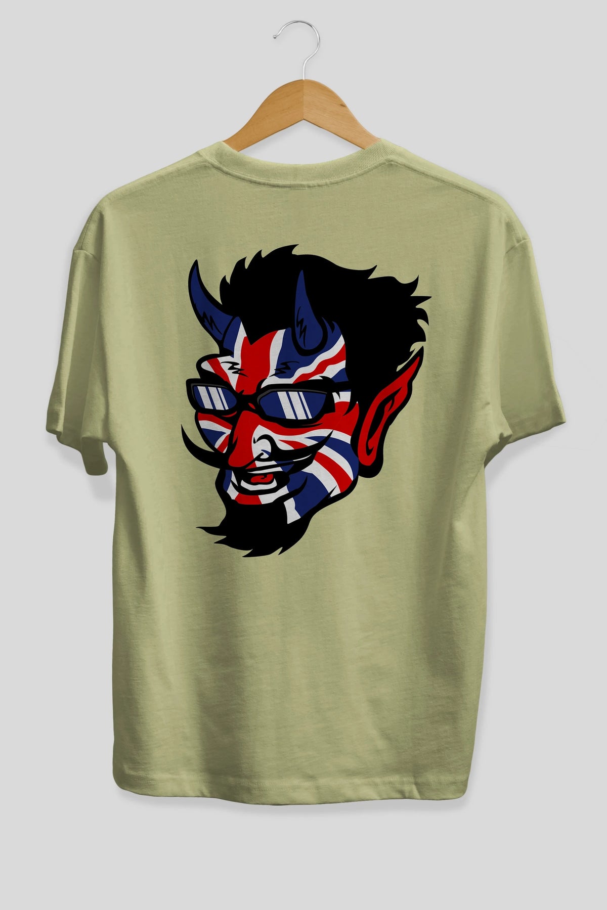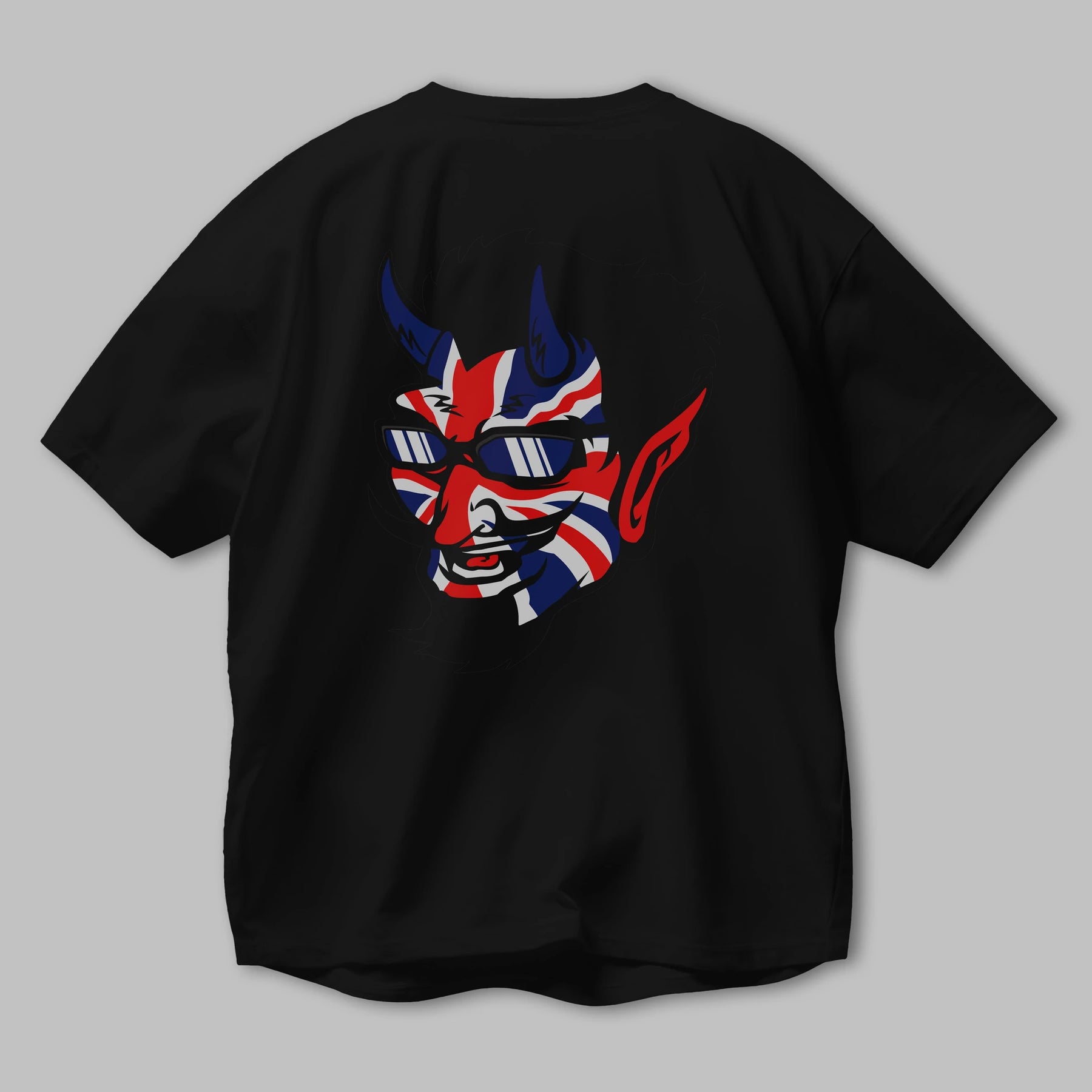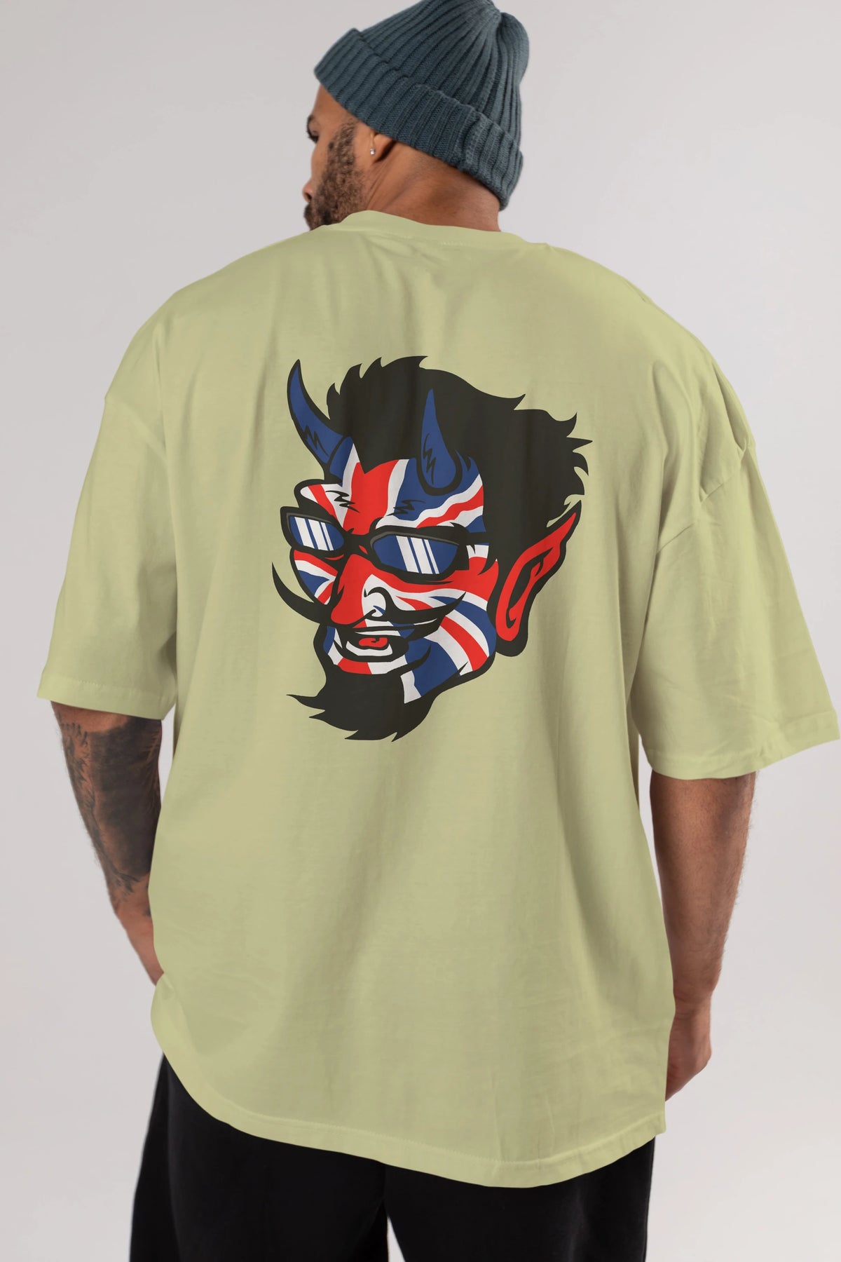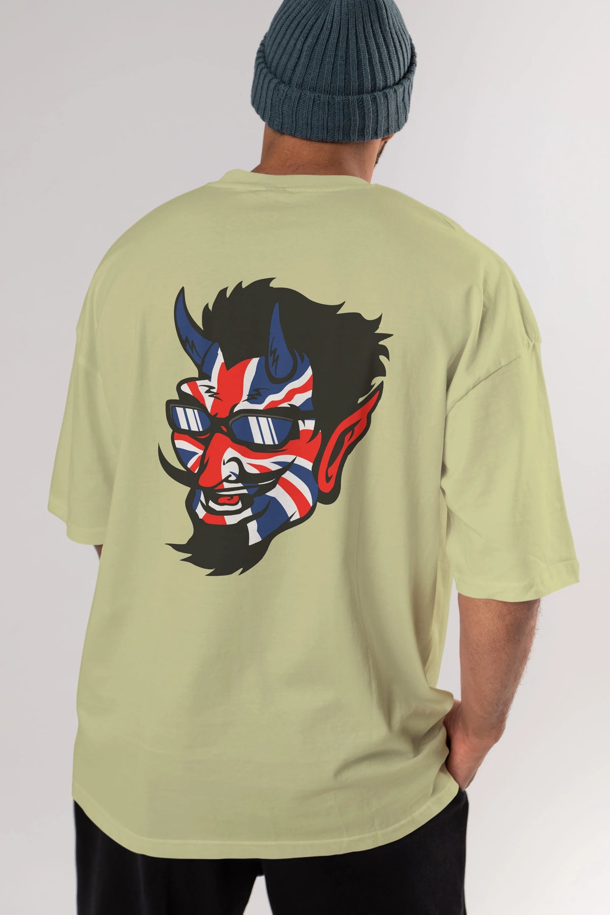 UK Devil Arka Baskılı Oversize t-shirt Erkek Kadın Unisex %100 Pamuk tişort