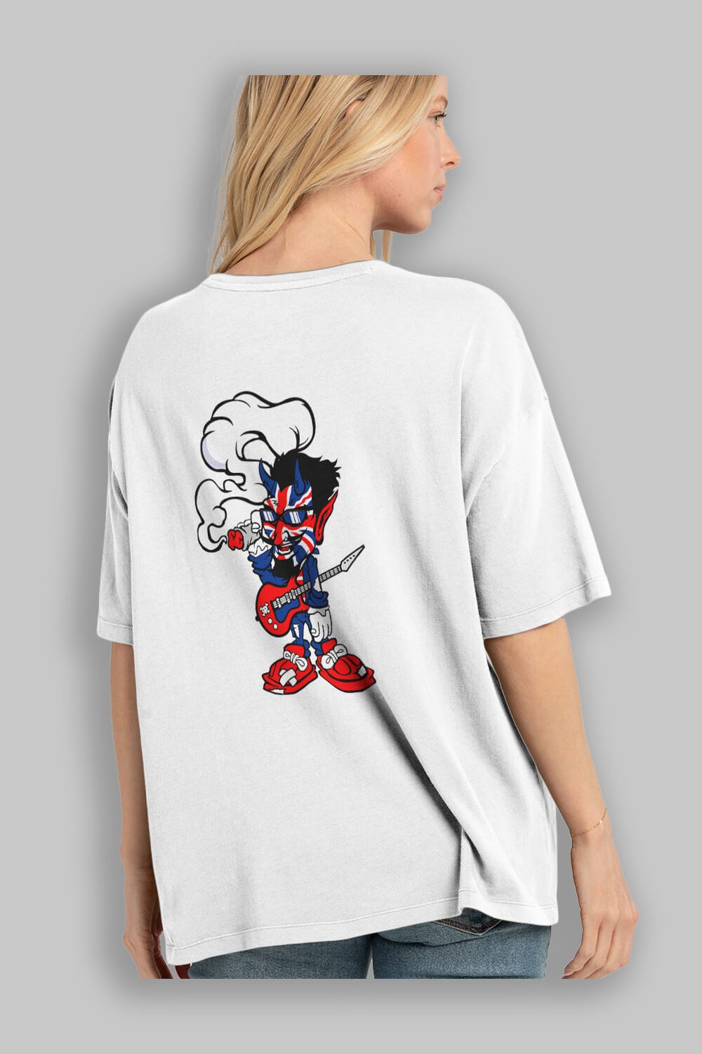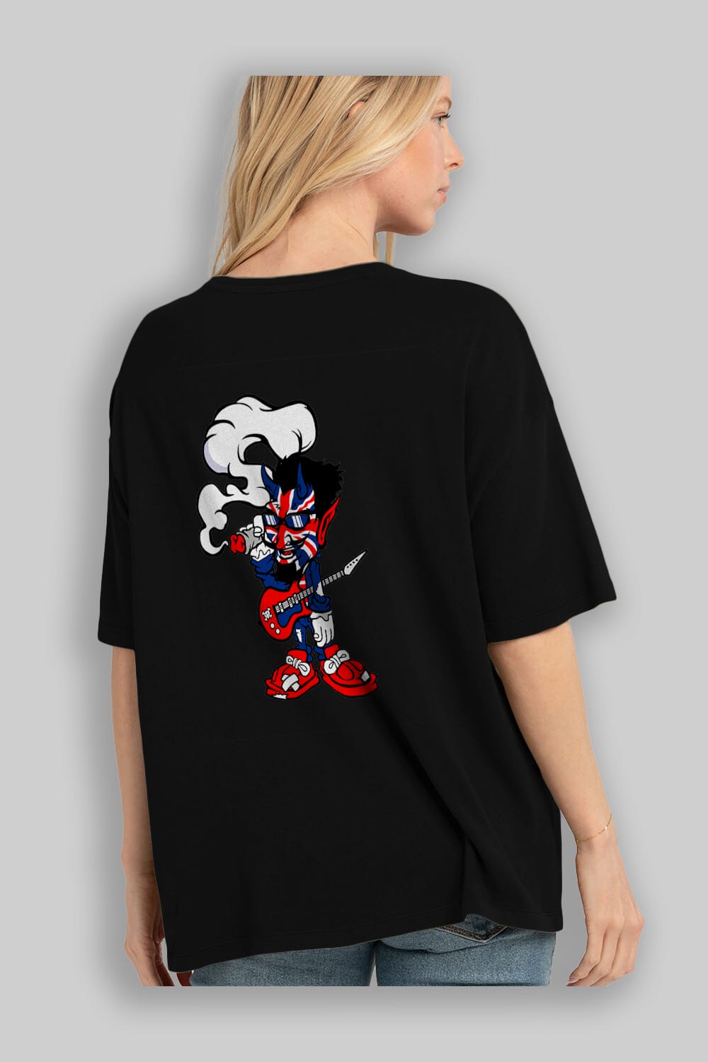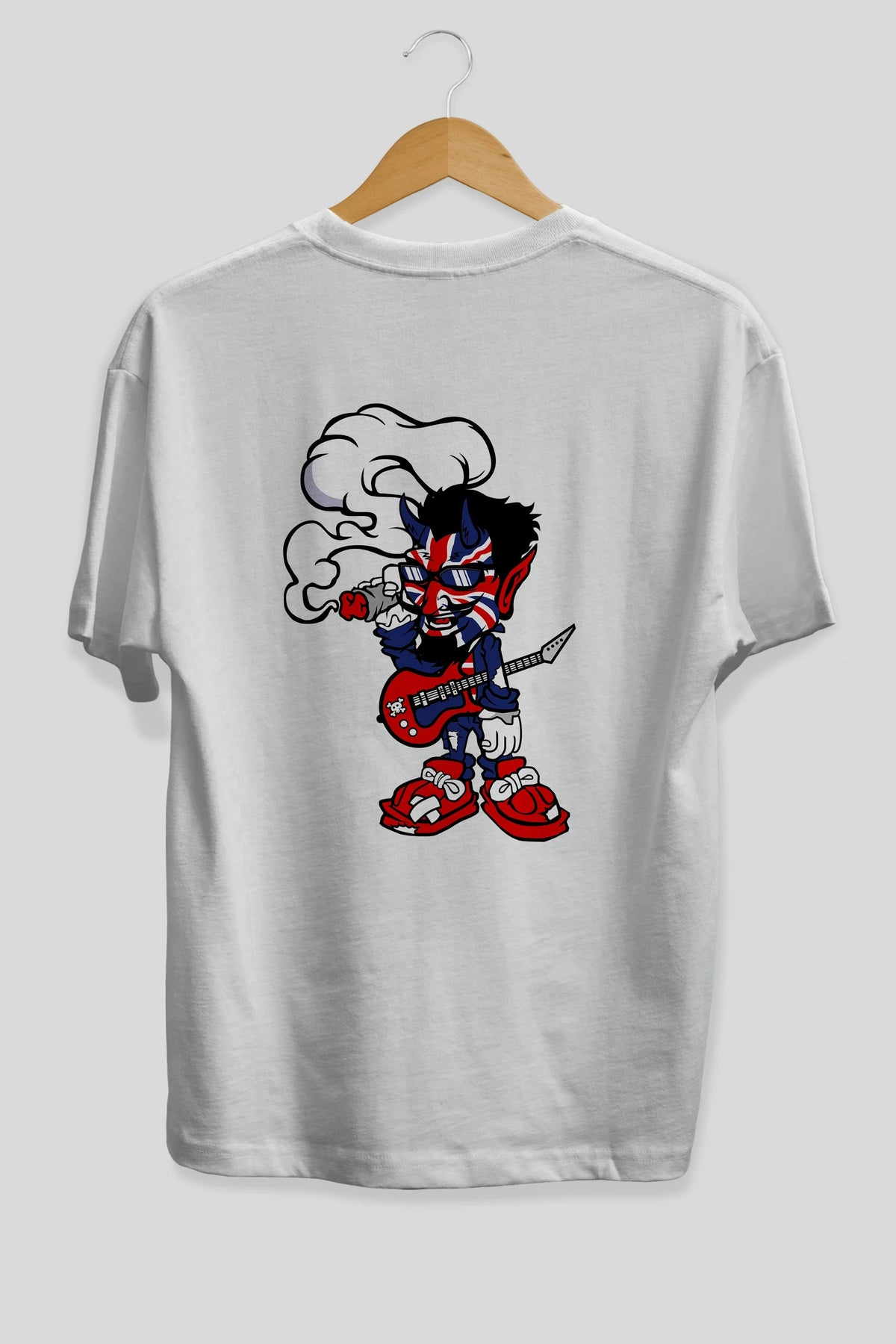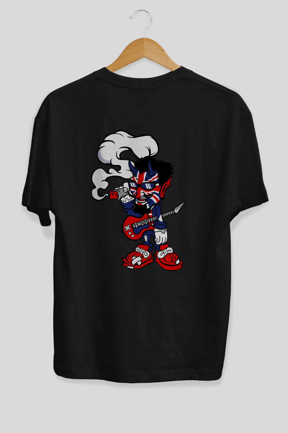 Uk Devil Rockstar Arka Baskılı Oversize t-shirt Erkek Kadın Unisex %100 Pamuk tişort
