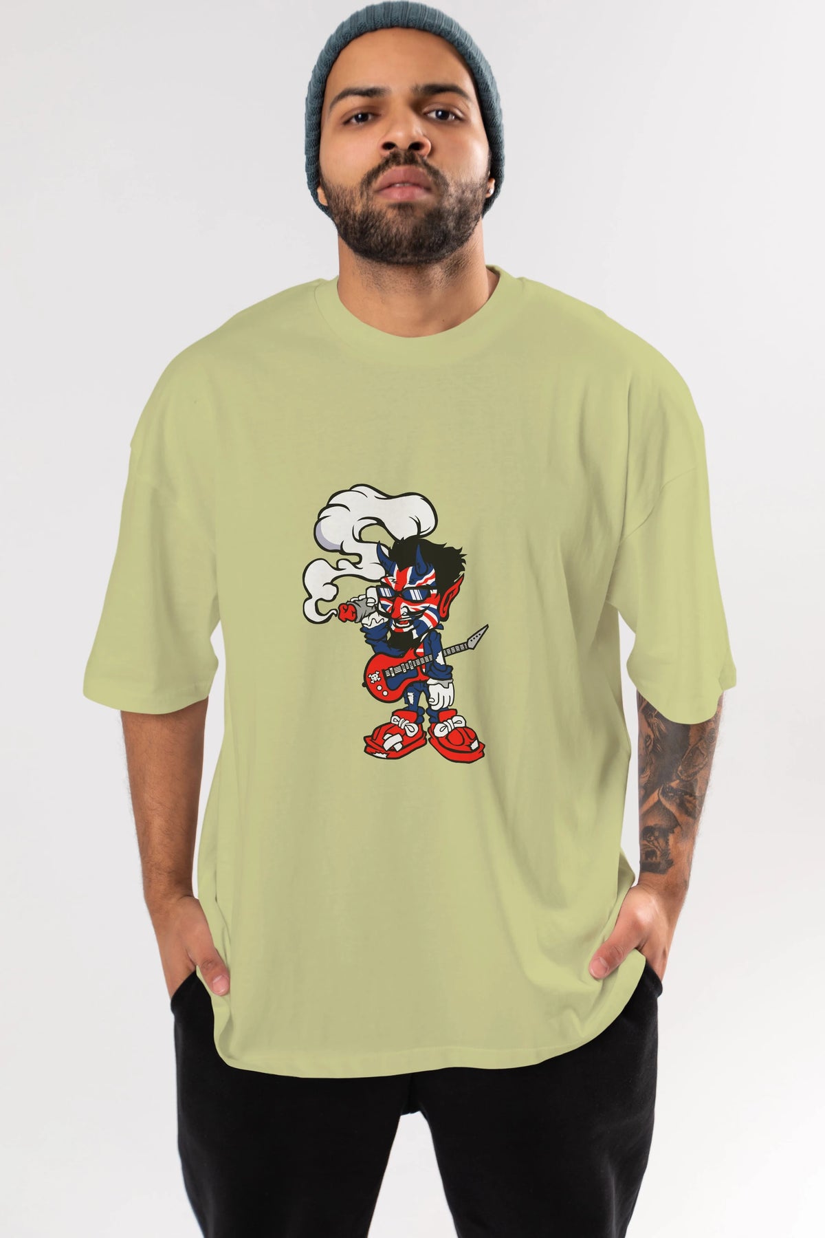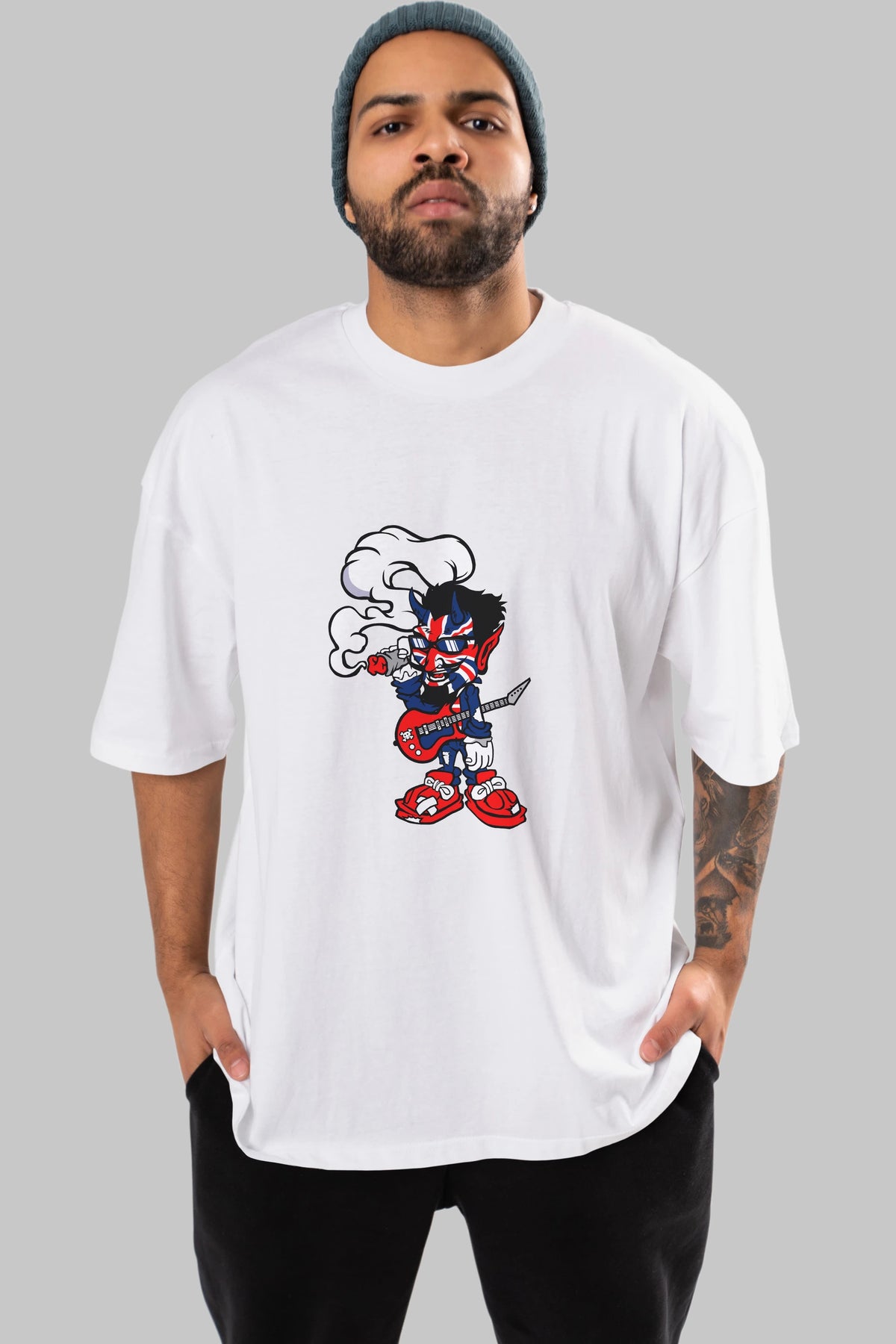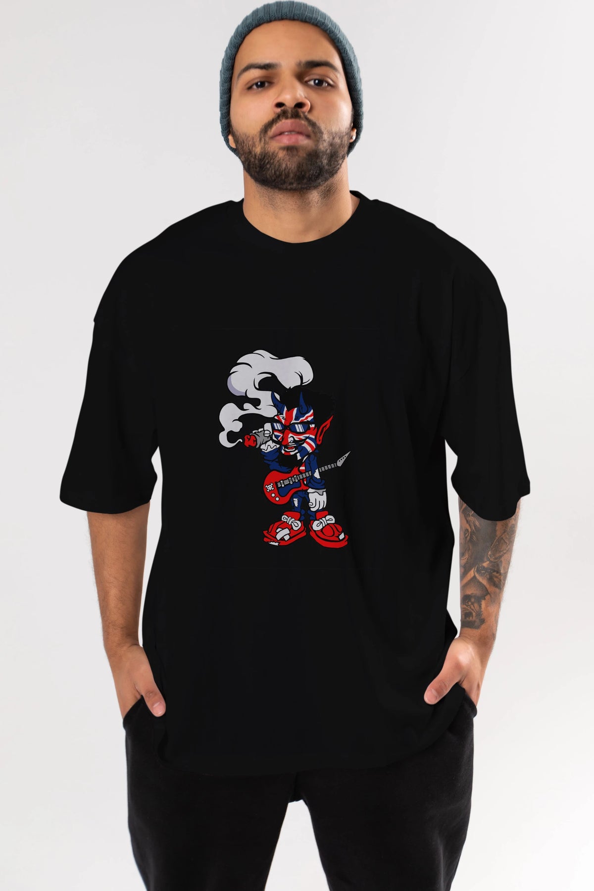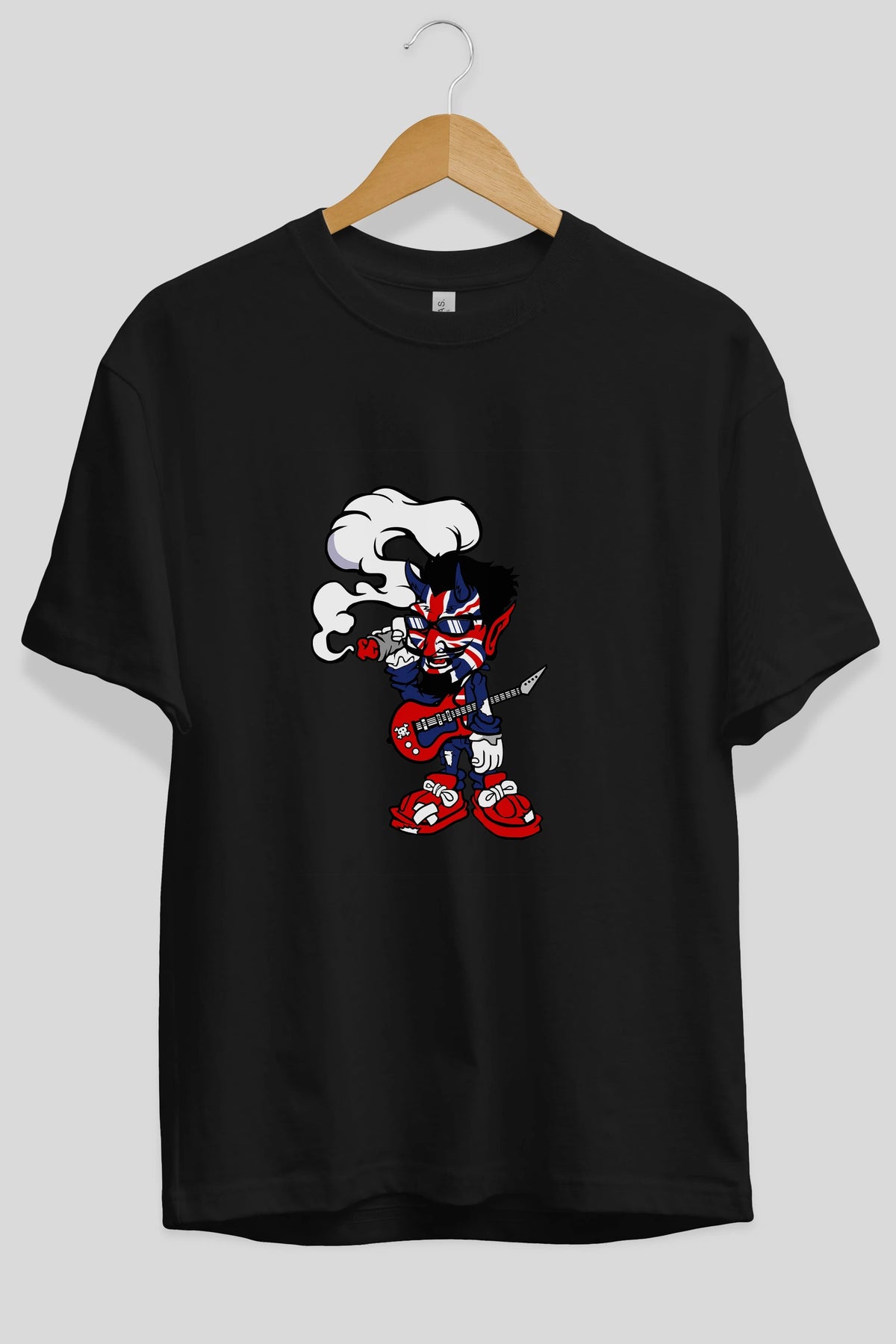 Uk Devil Rockstar Ön Baskılı Oversize t-shirt Erkek Kadın Unisex %100 Pamuk tişort