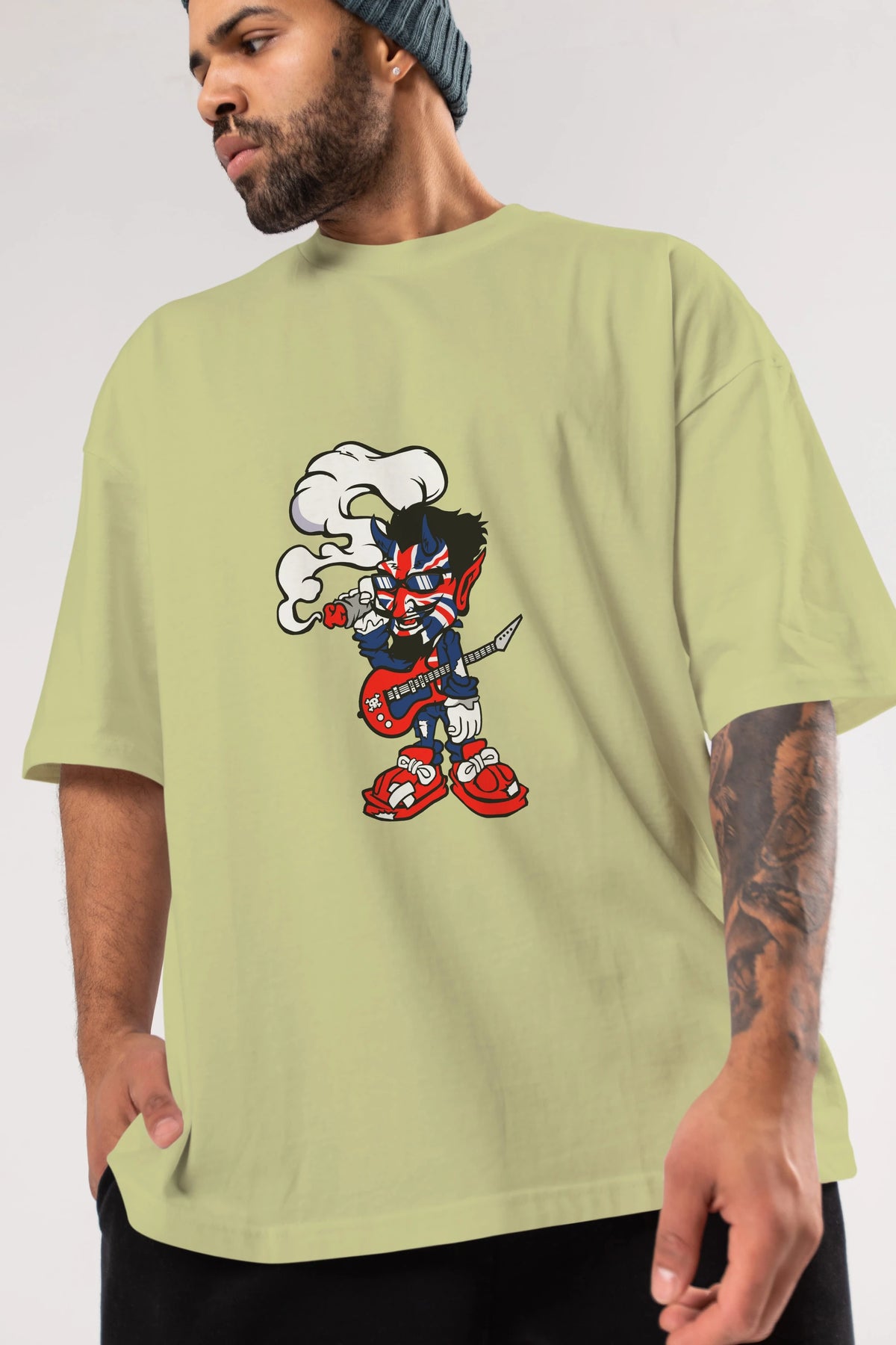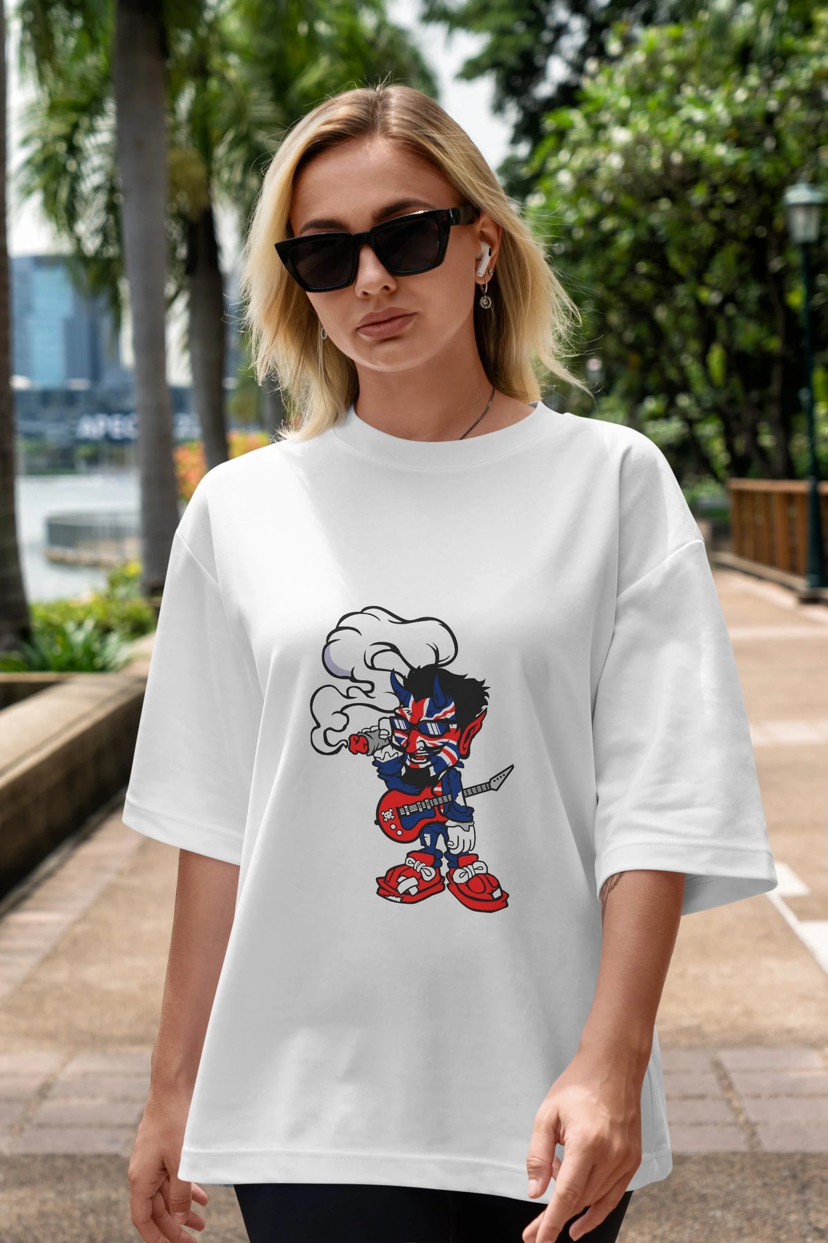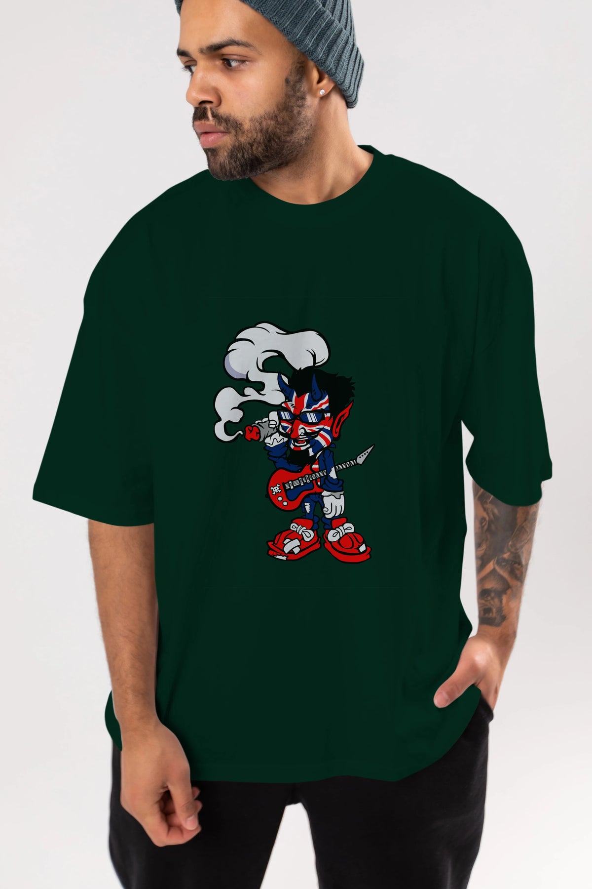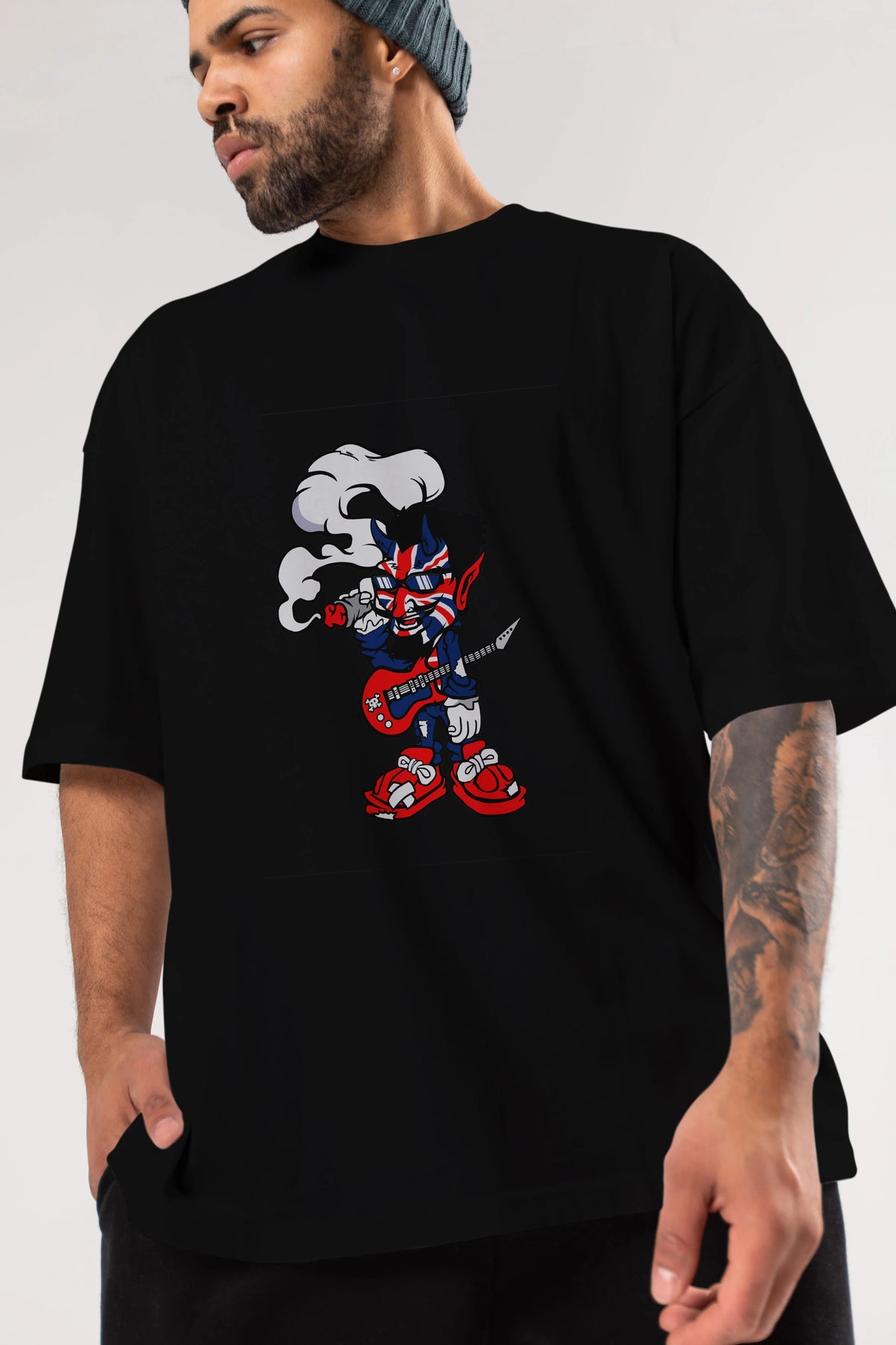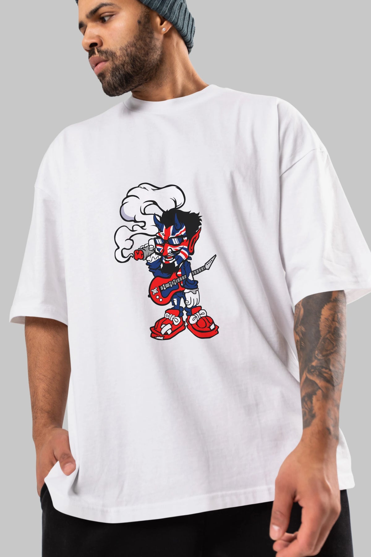 Uk Devil Rockstar Ön Baskılı Oversize t-shirt Erkek Kadın Unisex %100 Pamuk tişort