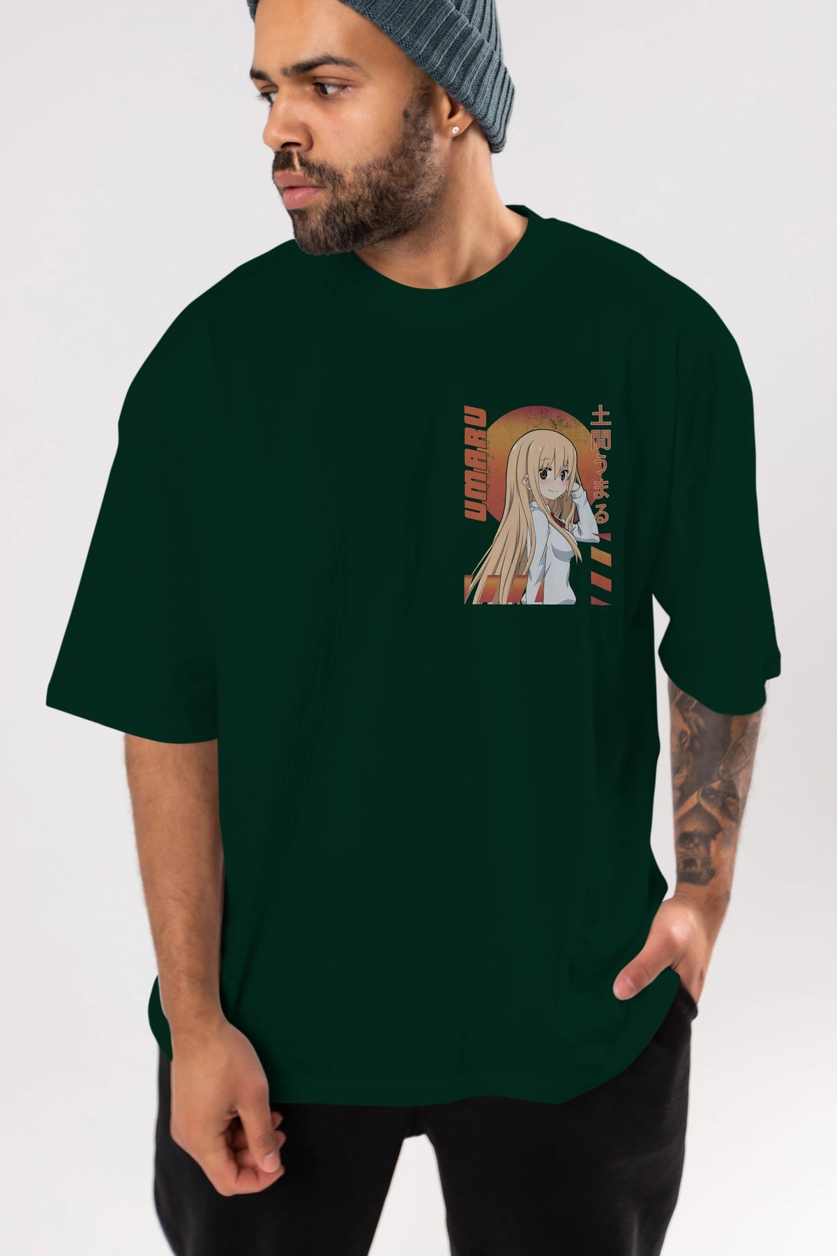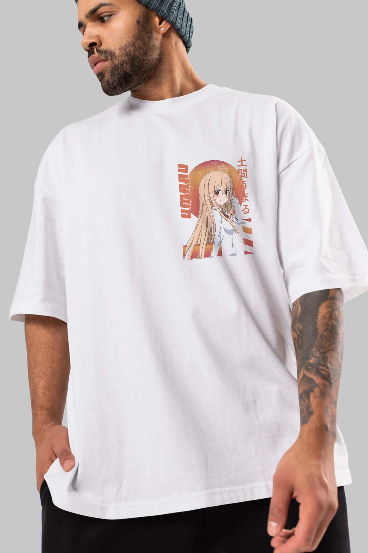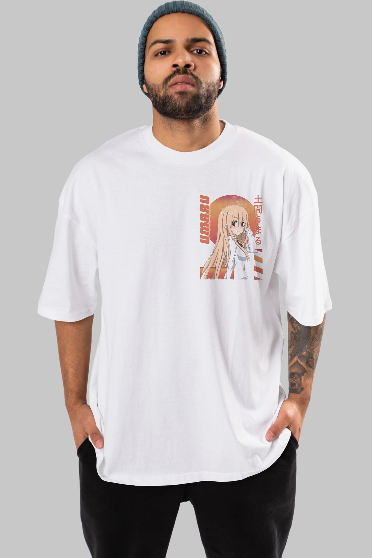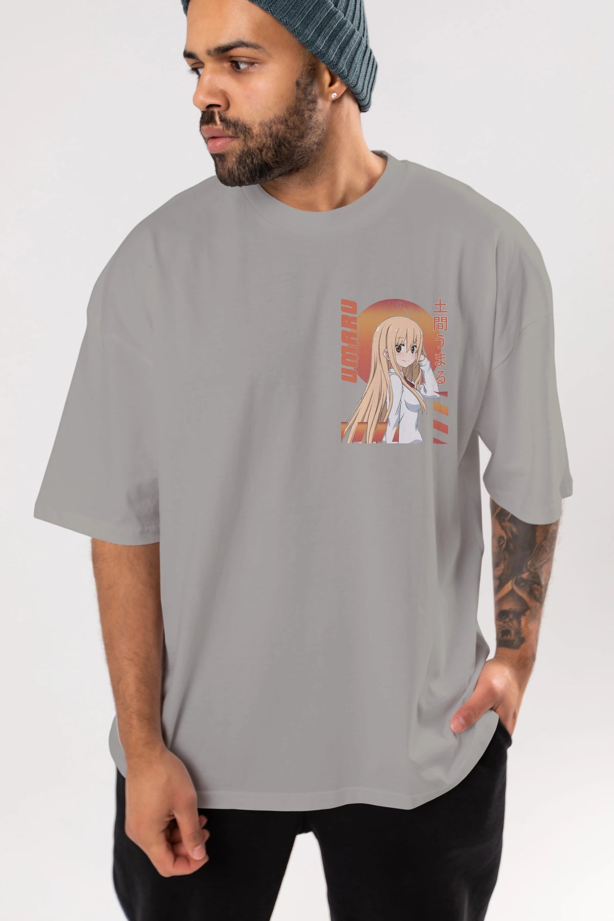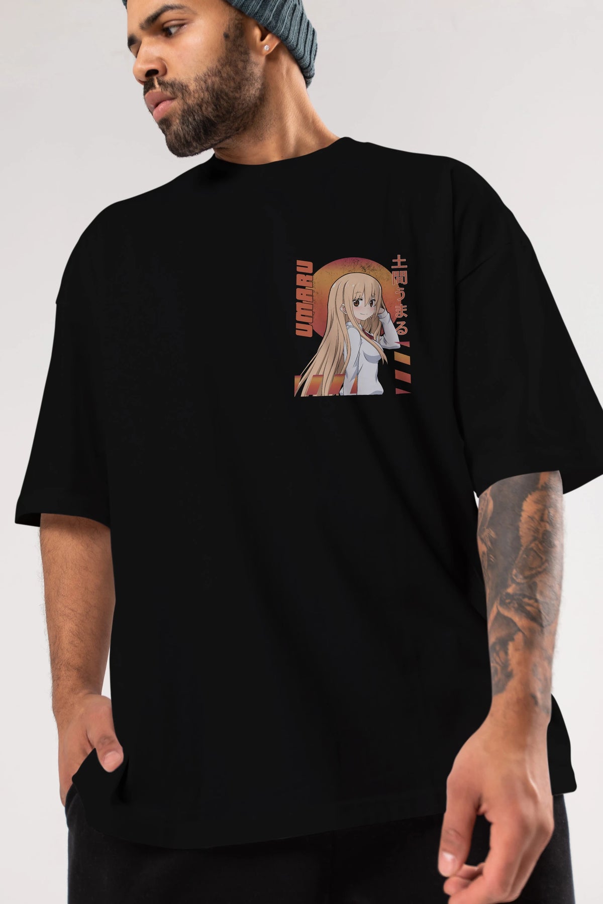 Umaru Doma 5 Ön Sol Baskılı Oversize t-shirt Erkek Kadın Unisex %100 Pamuk Bisiklet Yaka tişort
