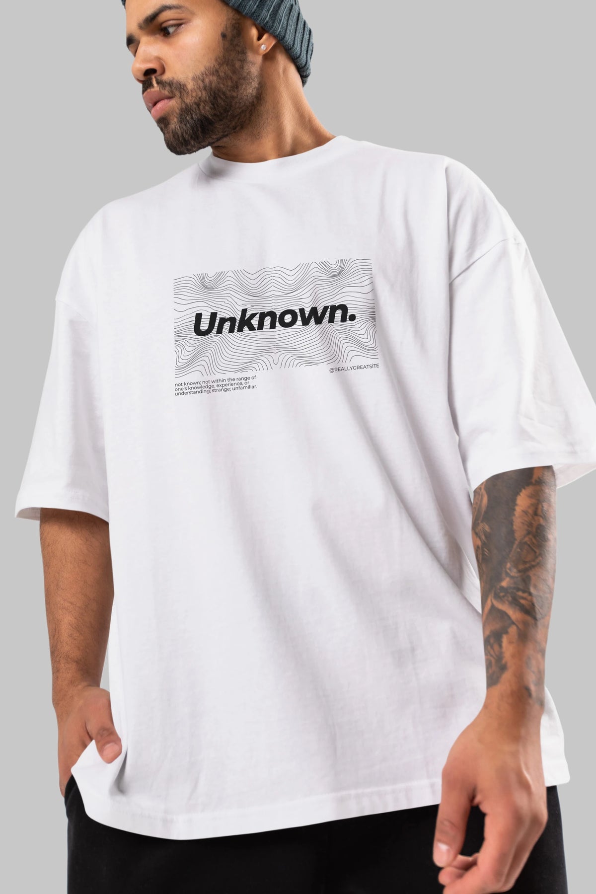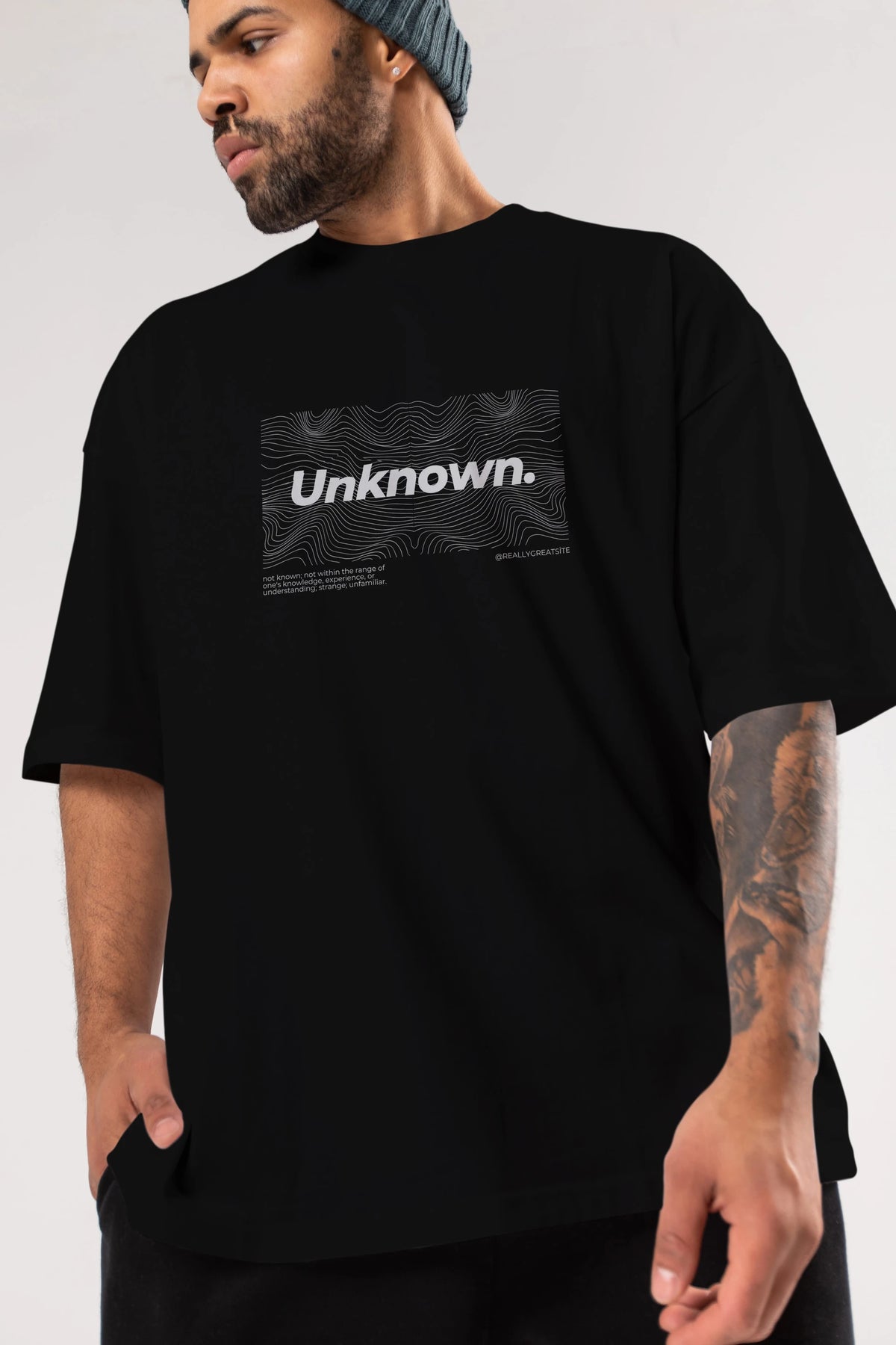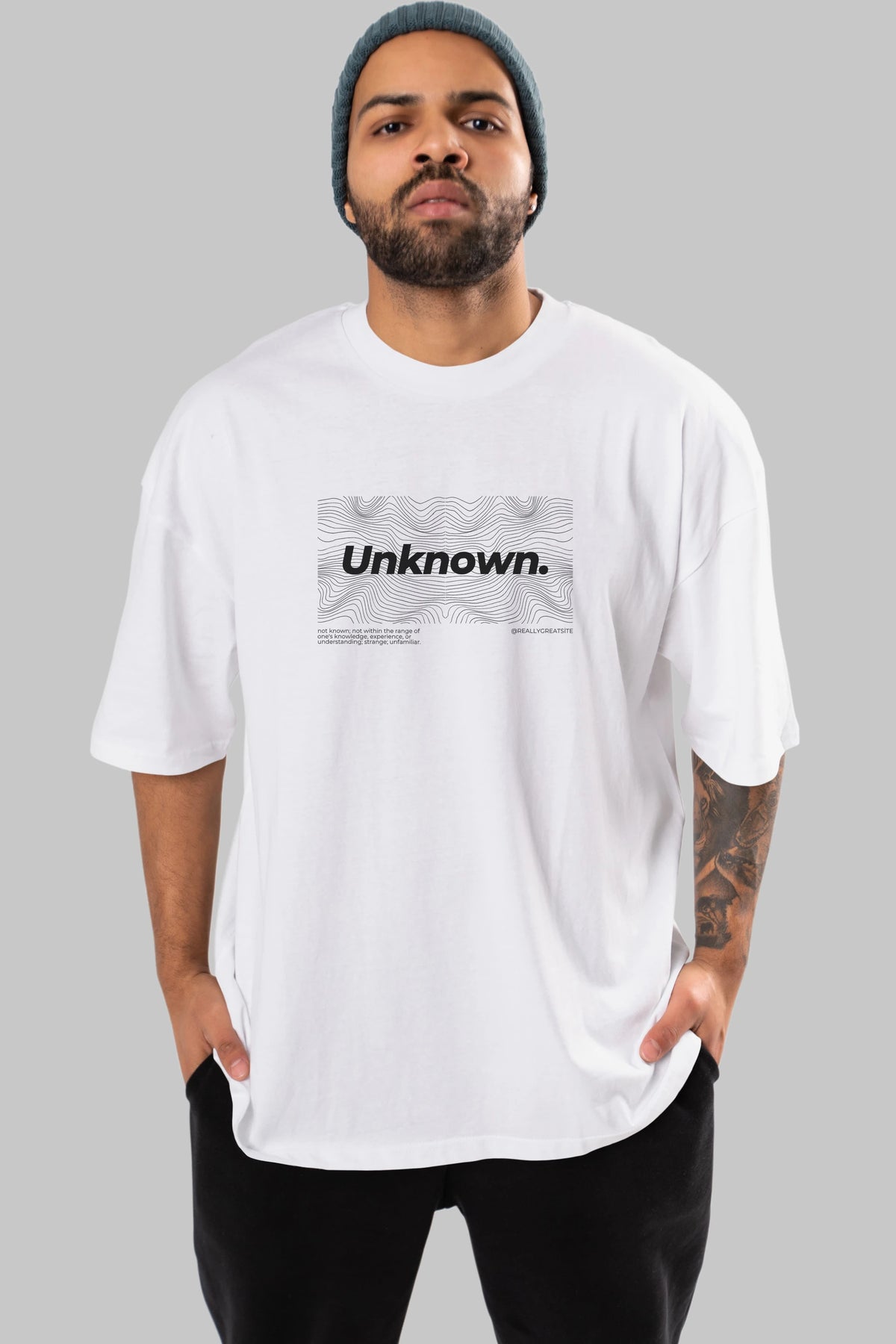 Unknown Yazılı Ön Baskılı Oversize t-shirt Erkek Kadın Unisex